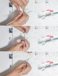 Rinkinyje yra akriliniai dažai su gera dengiamąja geba, kurie sklandžiai užpildo atskiras sritis ir paryškina motyvo detales.