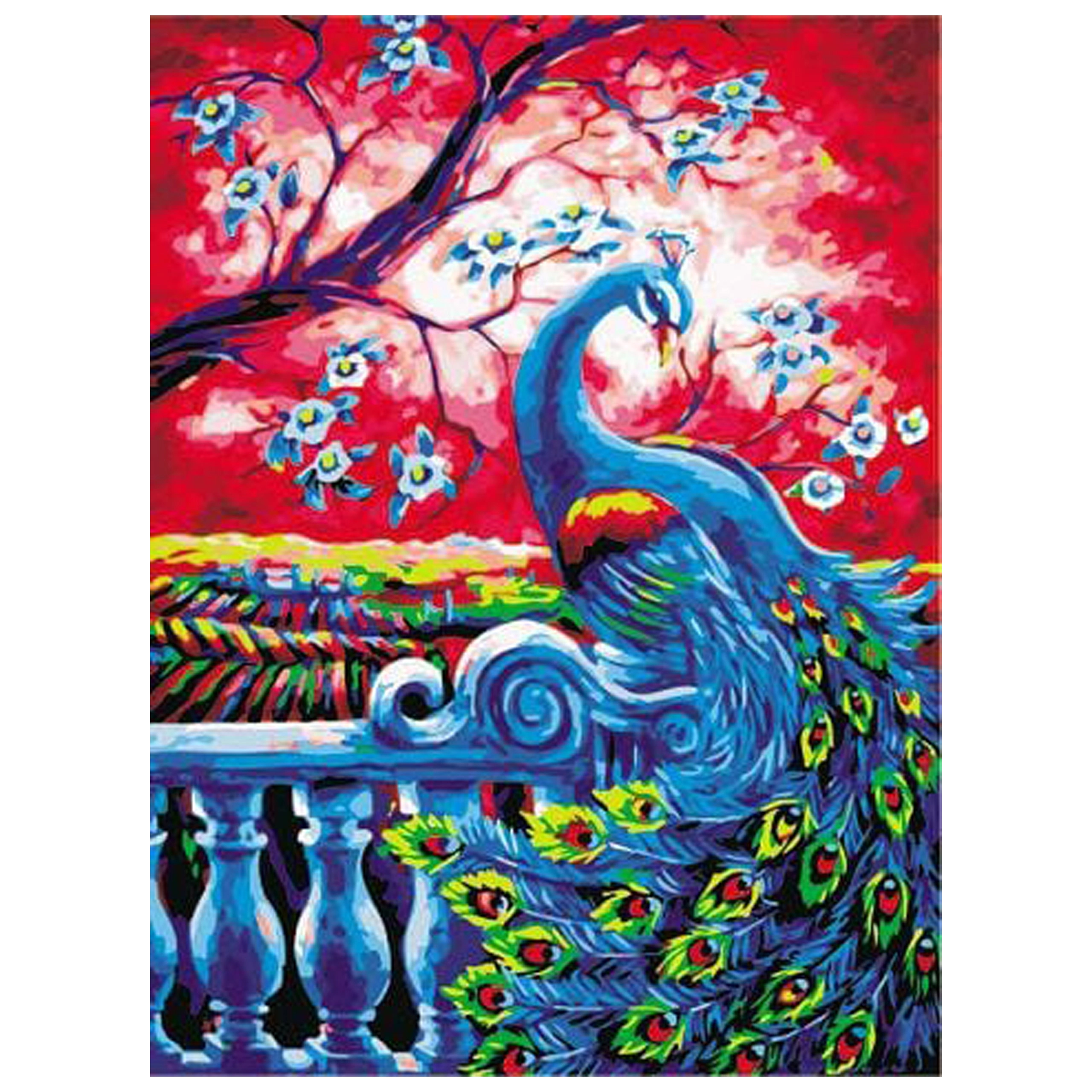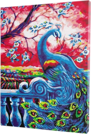 Sukurkite savo paveikslą be streso – tiesiog užpildykite sunumeruotas sritis atitinkančiomis spalvomis ir palaipsniui prieš jus išryškės ryškus povo motyvas. Dėka drobės, jau įtemptos ant medinio karkasinio rėmo, galite pradėti tapyti iškart po išpakavimo, o baigtą kūrinį – iš karto pakabinti.