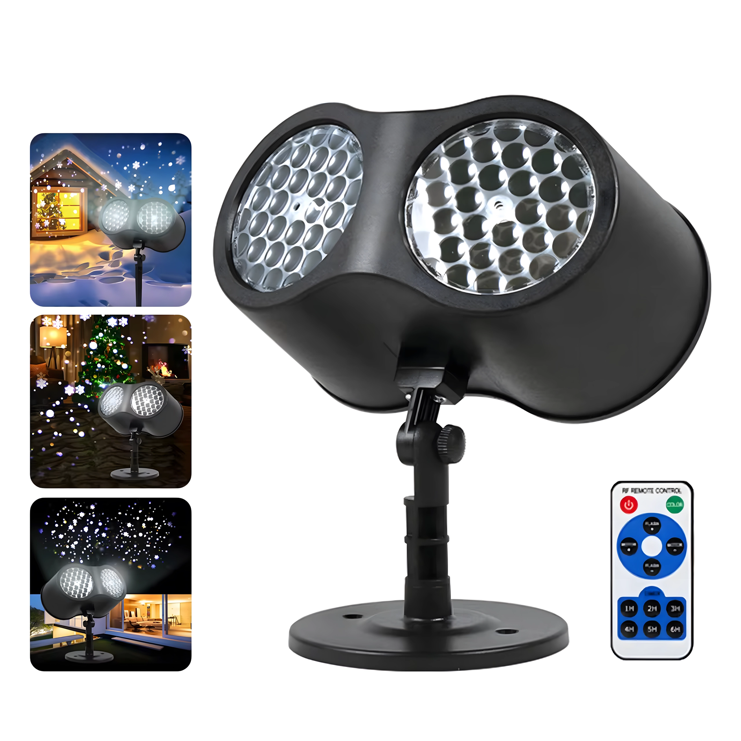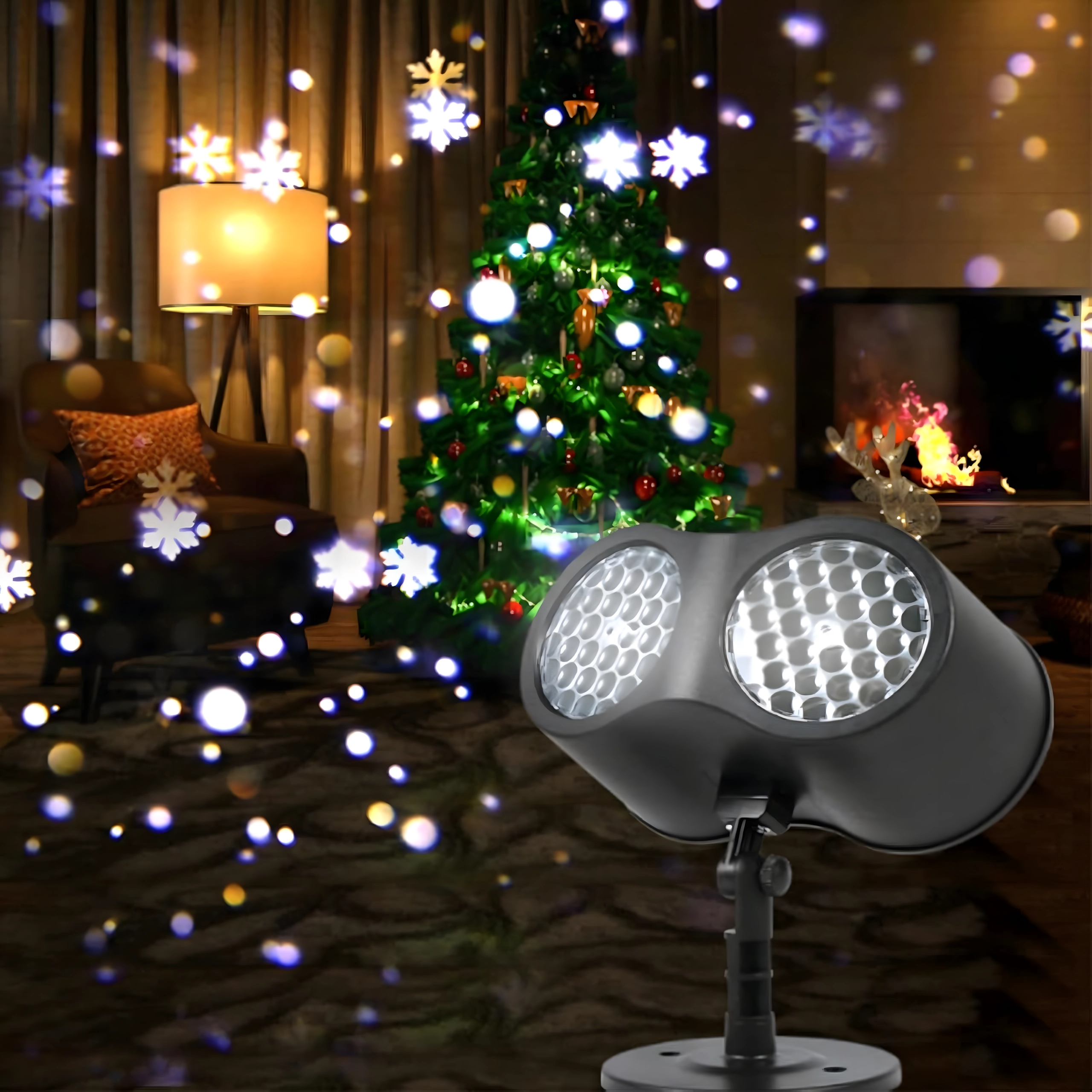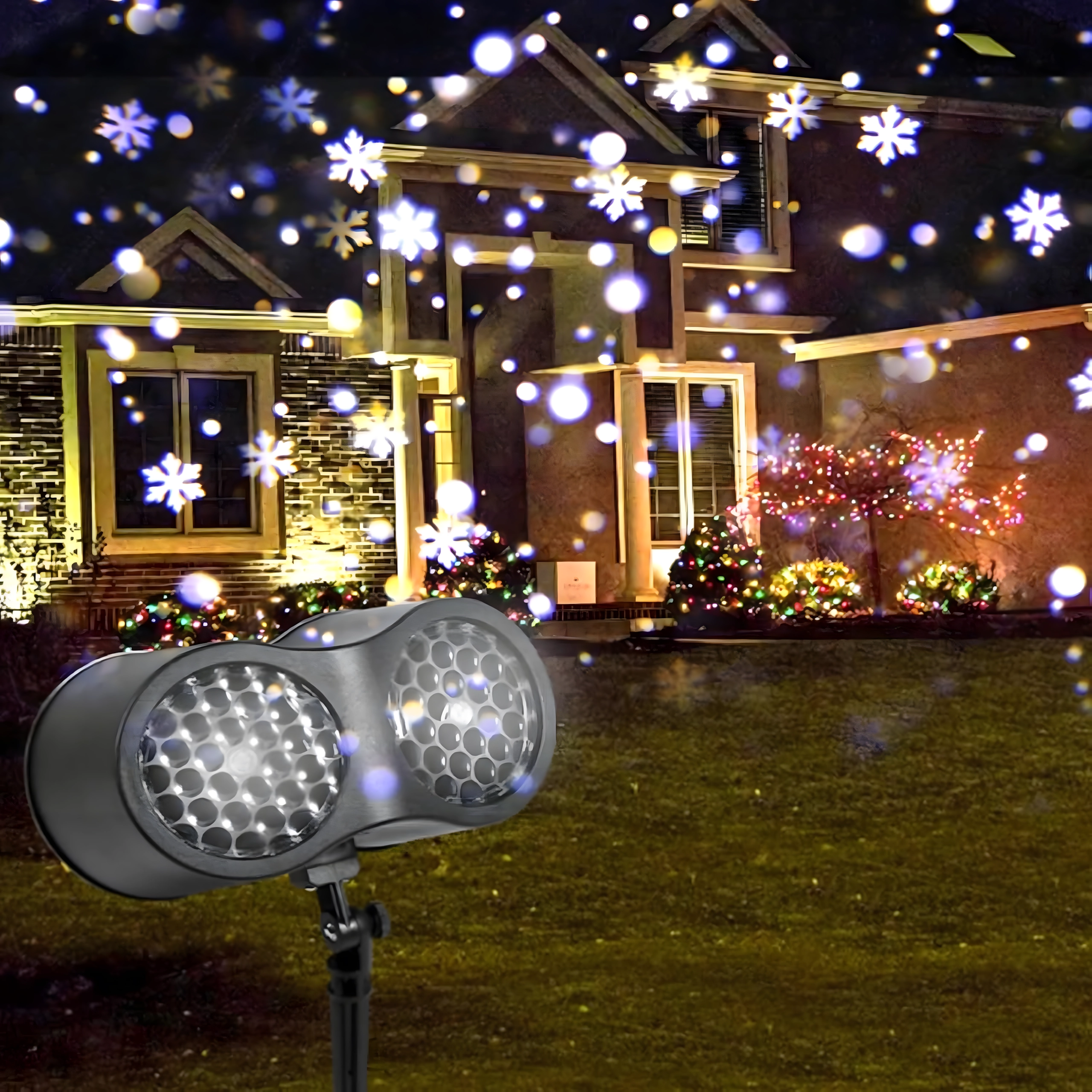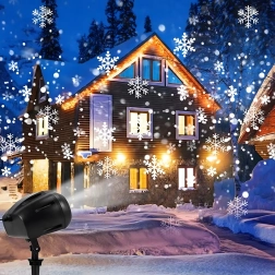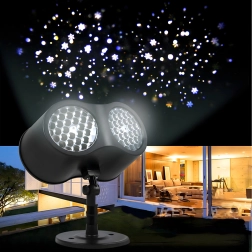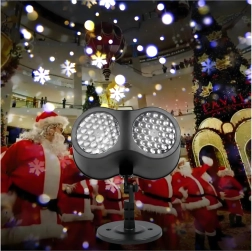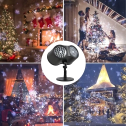 Dviguba LED optika projektuoja ryškias, dinamiškas snaiges ir taškus per didelius sienų ir fasadų plotus – idealiai tinka greitam šventiniam dekorui be kopėčių ir girliandų.