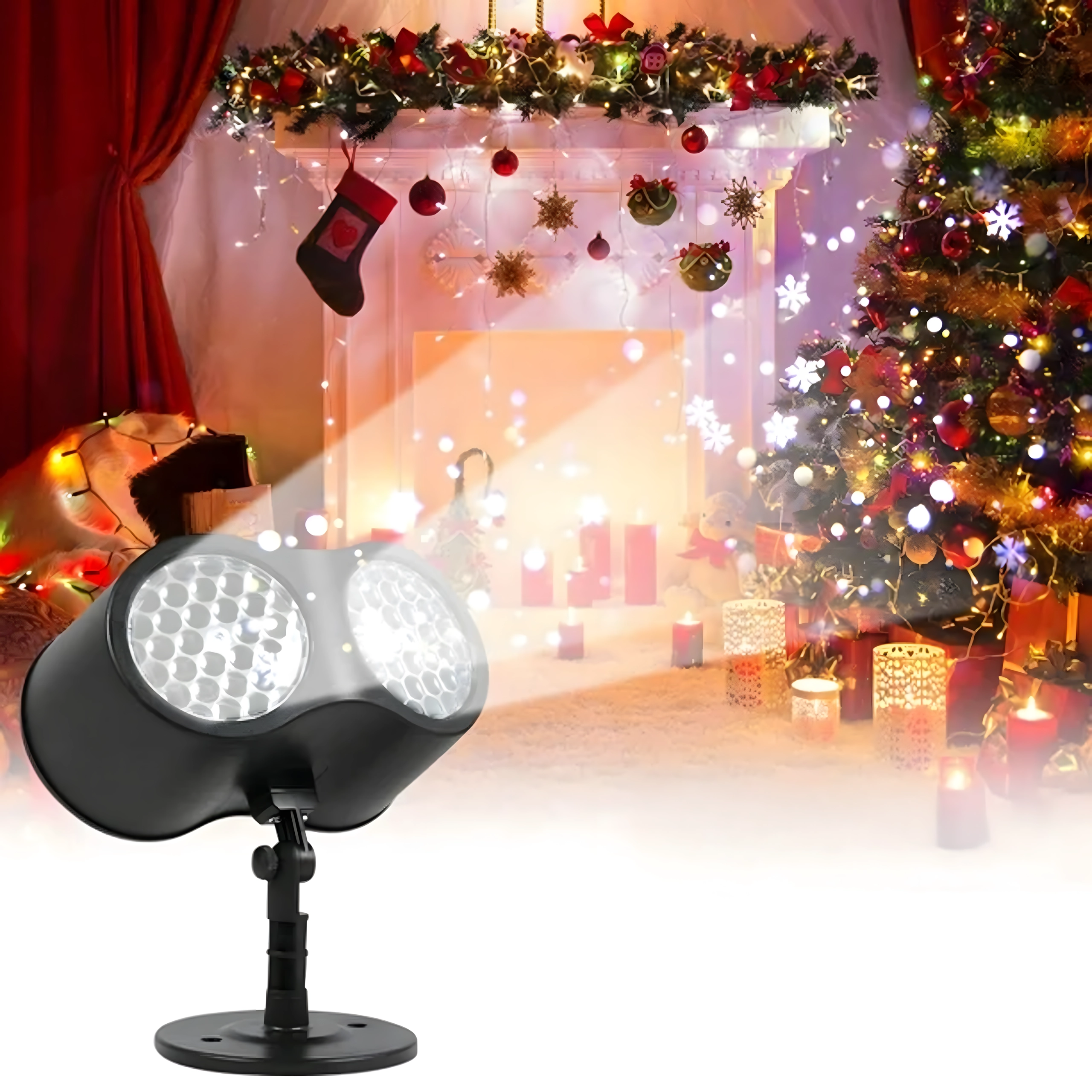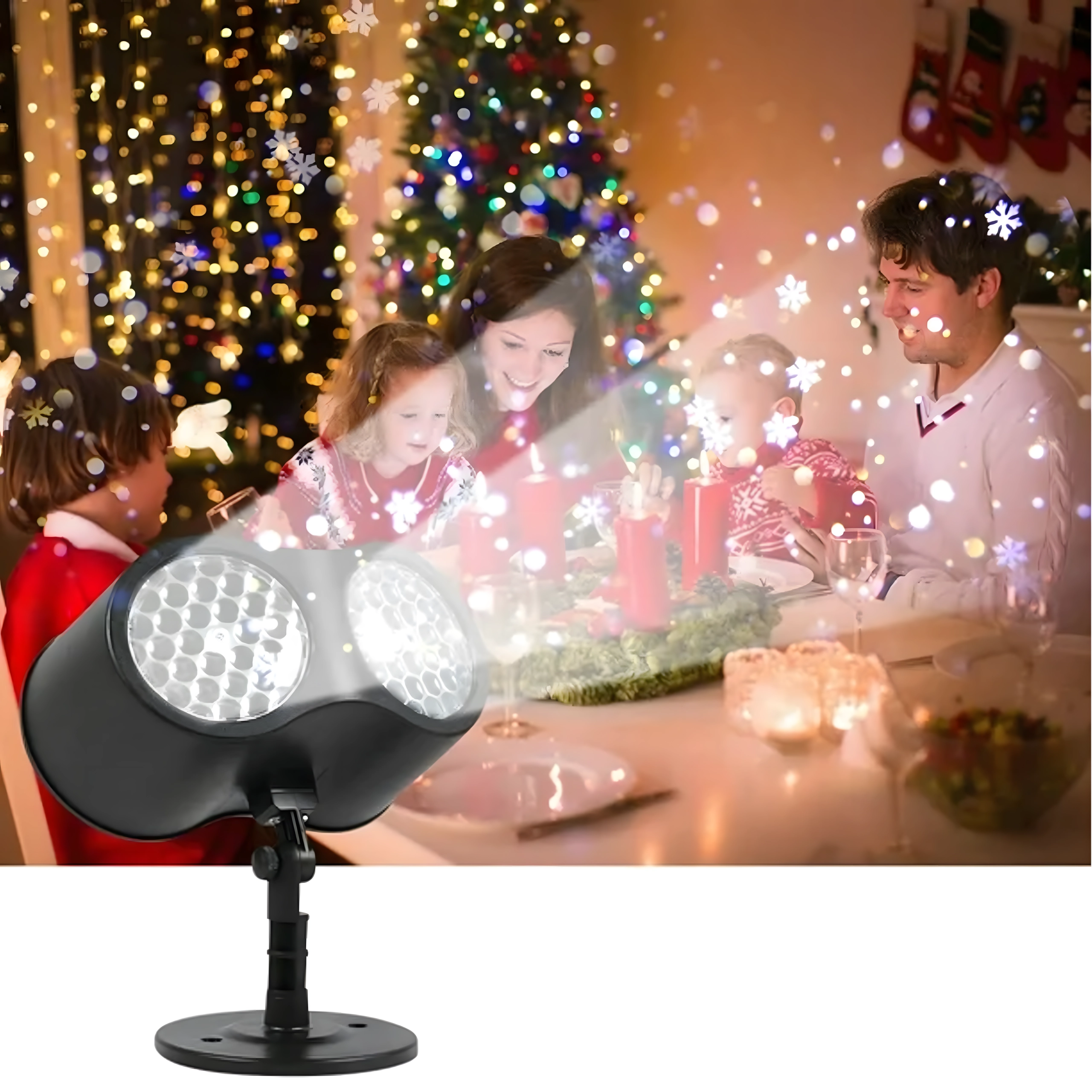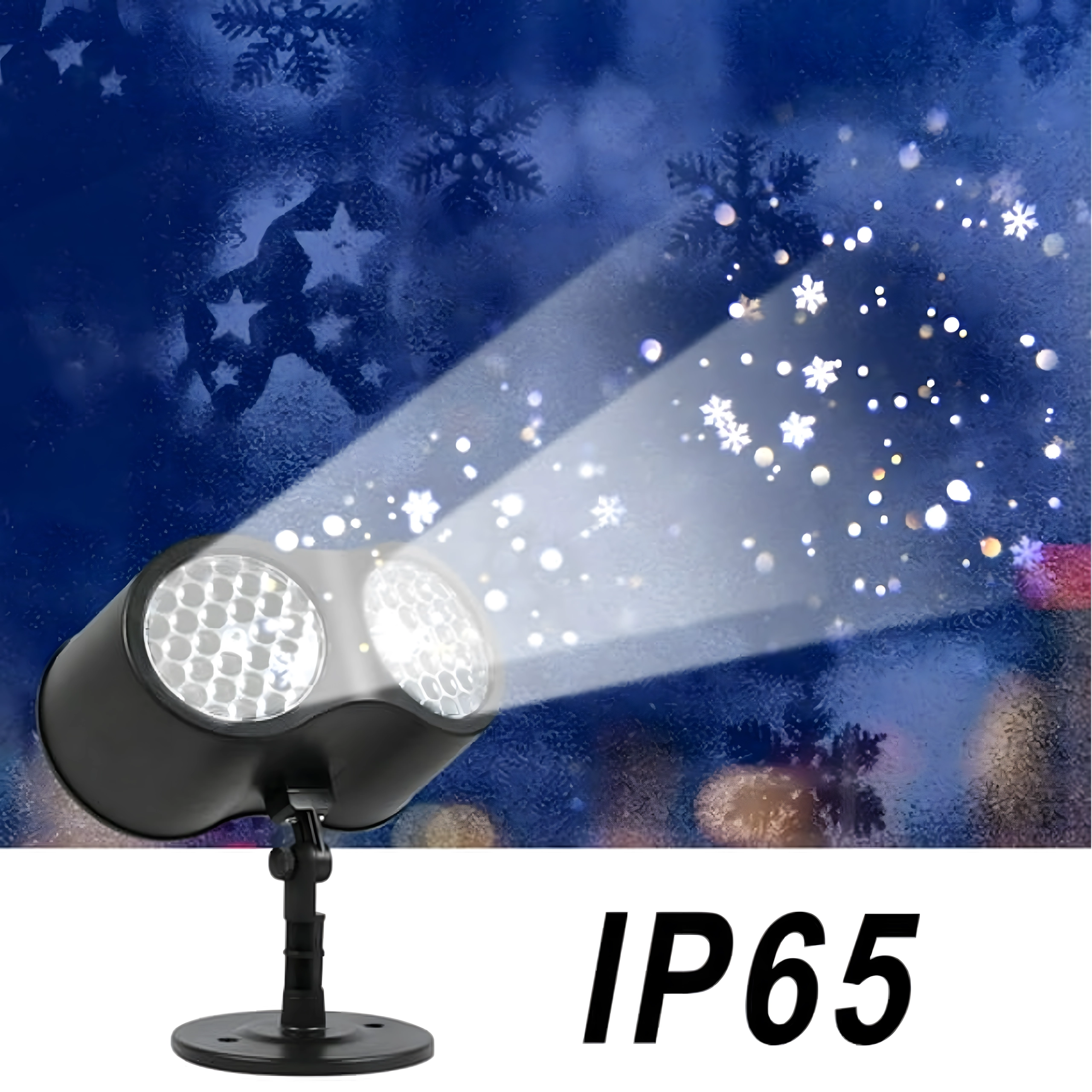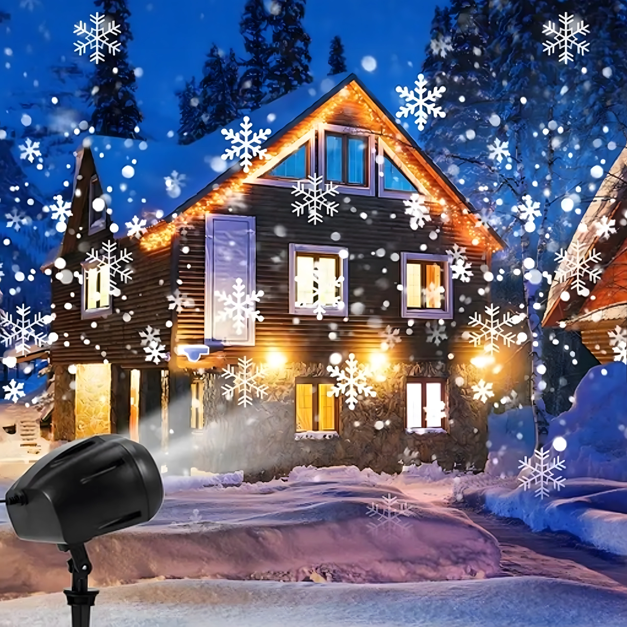 Dviguba LED optika projektuoja ryškias, dinamiškas snaiges ir taškus per didelius sienų ir fasadų plotus – idealiai tinka greitam šventiniam dekorui be kopėčių ir girliandų.