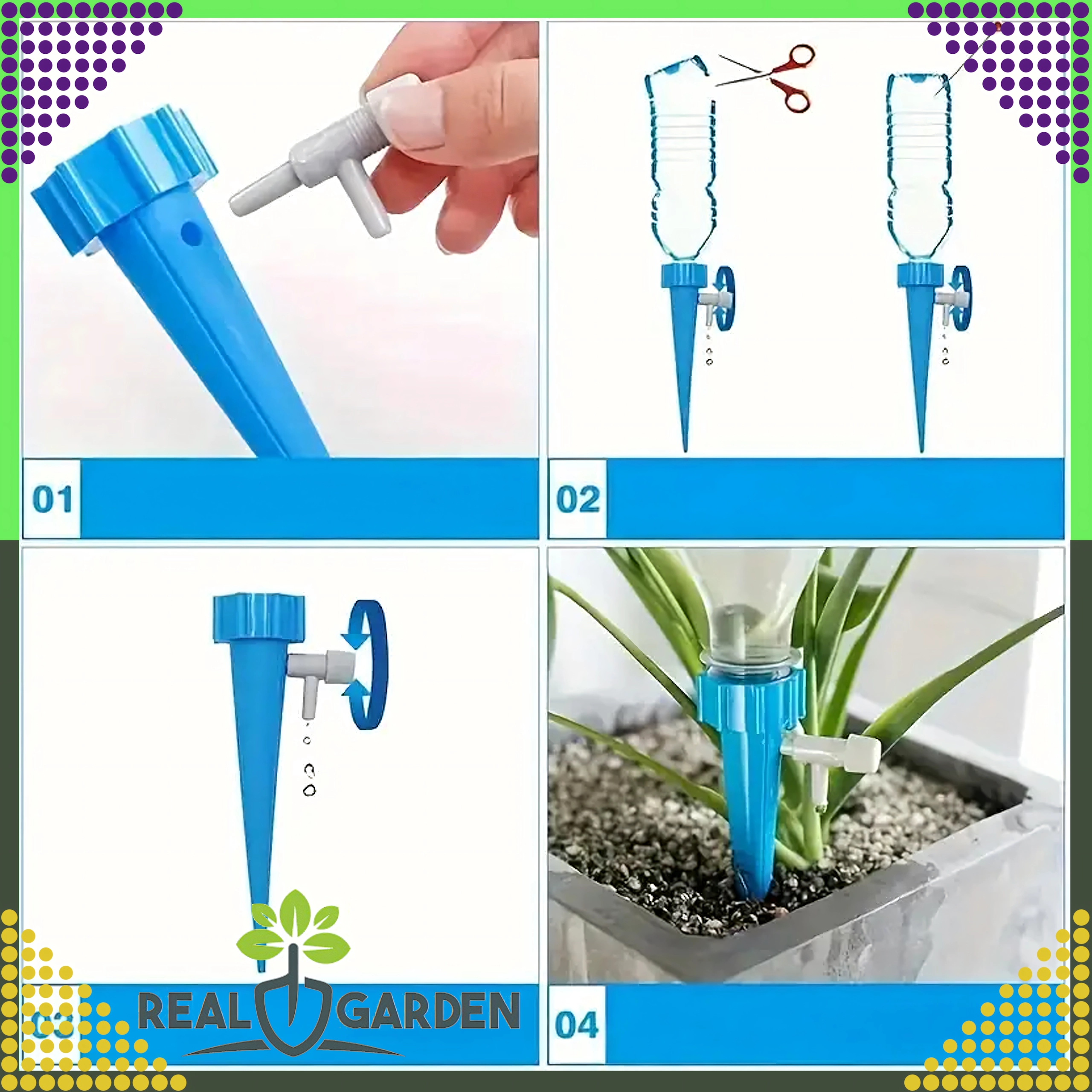 Paprastas sprendimas visiems, kurie nori būti tikri, kad jų augalai gaus būtent tiek vandens, kiek reikia. Laistytuvai su patogiu čiaupu leidžia sklandžiai reguliuoti srautą, todėl tinka įvairiems substratams ir vazonams. Montavimas greitas, be įrankių – tiesiog užsukate ant PET butelio, apverčiate ir įsmeigiate į vazoną.
