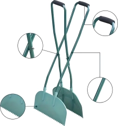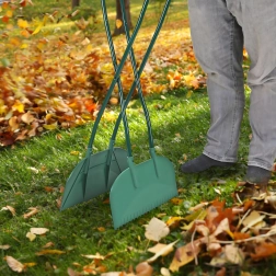 Nebereikės nei skaudančios nugaros, nei purvinų rankų. Ergonomiškas lapų grėbtuvas su ilgais laikikliais leidžia dirbti stovint ir efektyviai semti didesnius lapų bei smulkių sodo atliekų kiekius. Dantytos briaunos geriau sulaiko medžiagą, o patvari konstrukcija užtikrina ilgą tarnavimo laiką reguliariai naudojant.