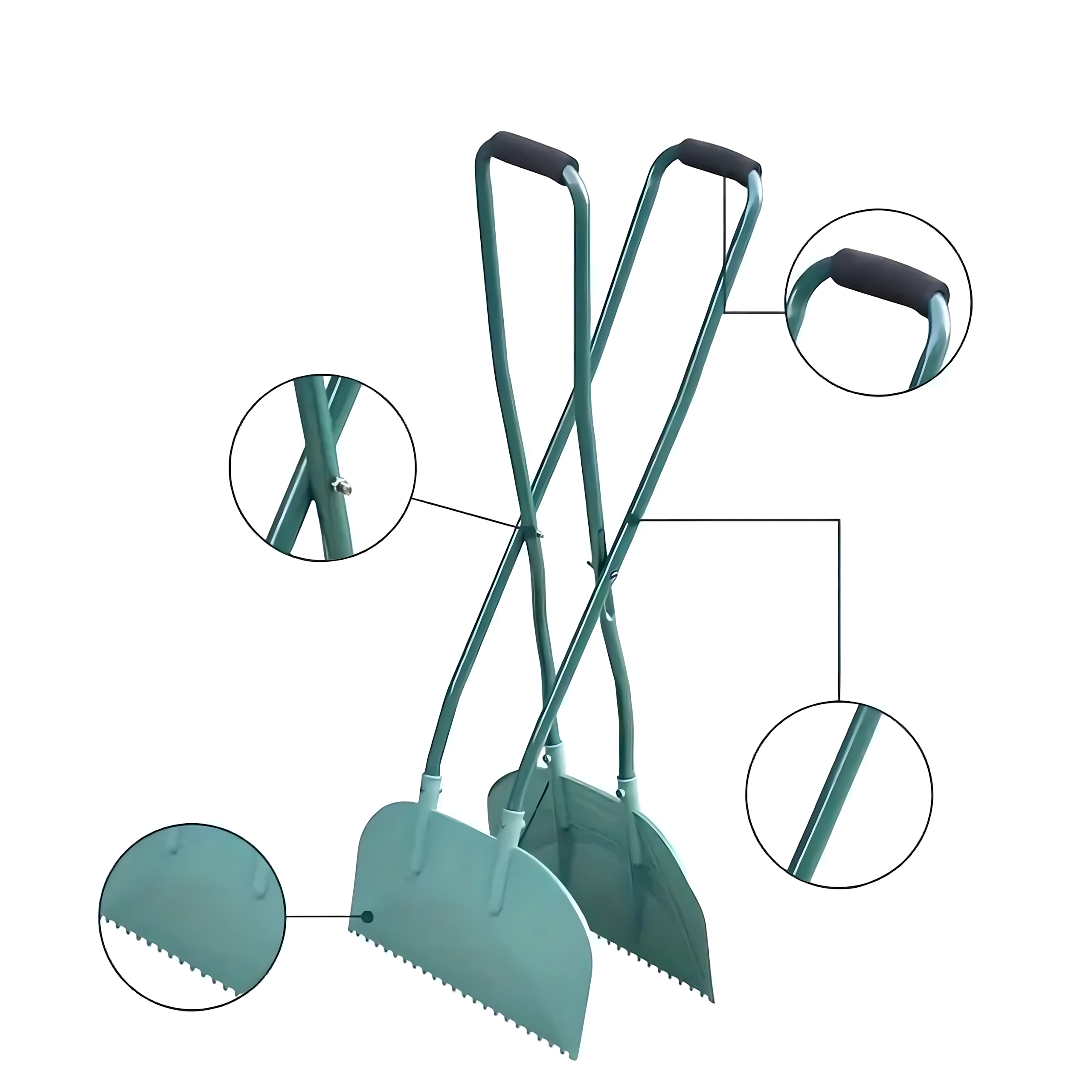 Dėl plačių žnyplių ir tvirtų metalinių kotų kiemą bei veją sutvarkysite greičiau. Minkštos putų rankenos suteikia saugų ir patogų suėmimą net ilgesnio darbo metu. Idealus pagalbininkas sezoniniam tvarkymui, kompostavimui ir nuolatiniam šiukšlių surinkimui po pjovimo.