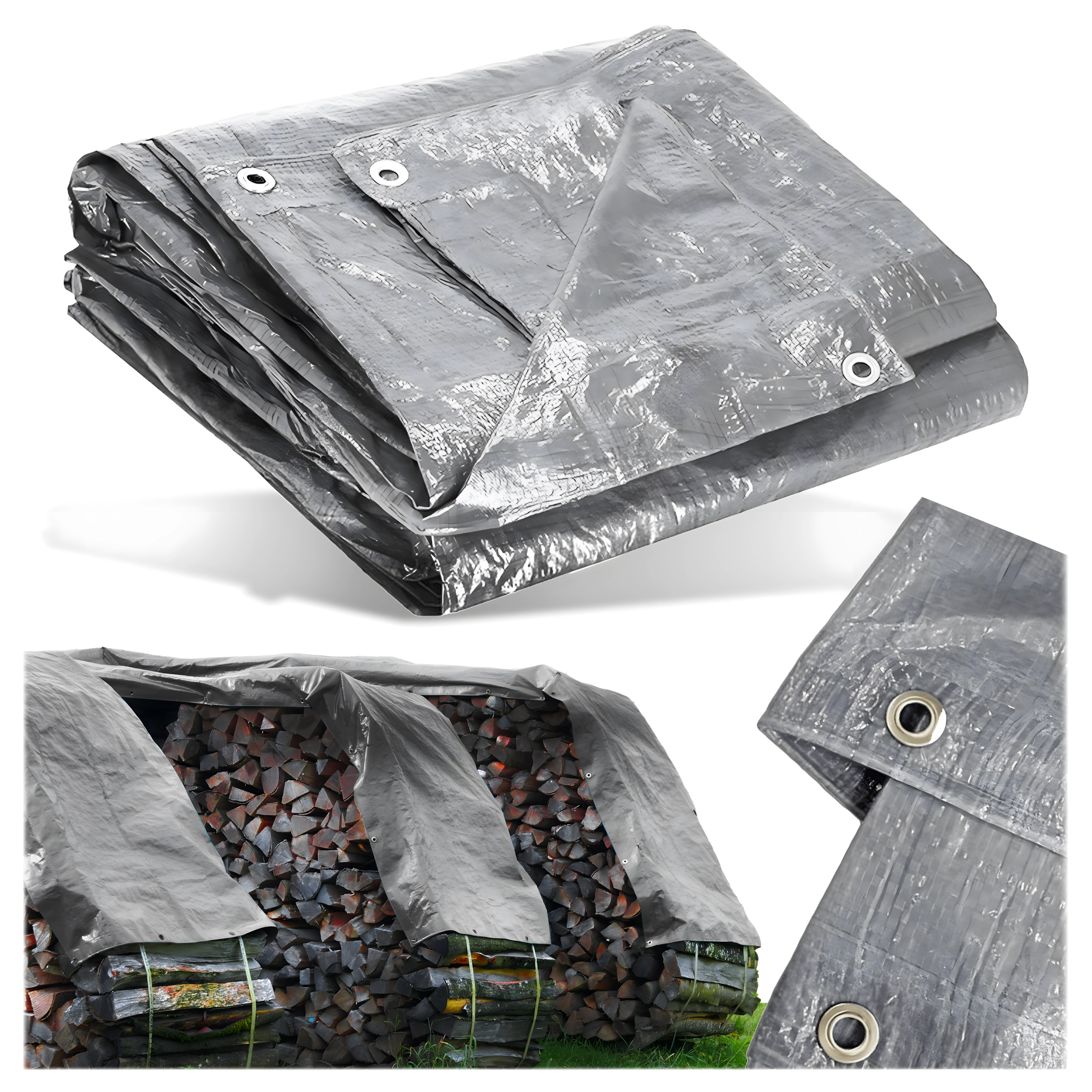 Sidabrinis apsauginis tentas 4 × 5 m su 80 g/m² tankiu – puikus pasirinkimas medžiagų ir įrangos apsaugai visus metus. Saugoma nuo lietaus, sniego, UV spinduliuotės ir nešvarumų, o dėl kilpų per visą perimetrą jį patikimai pritvirtinsite prie rėmų, kuoliukų ar virvės.