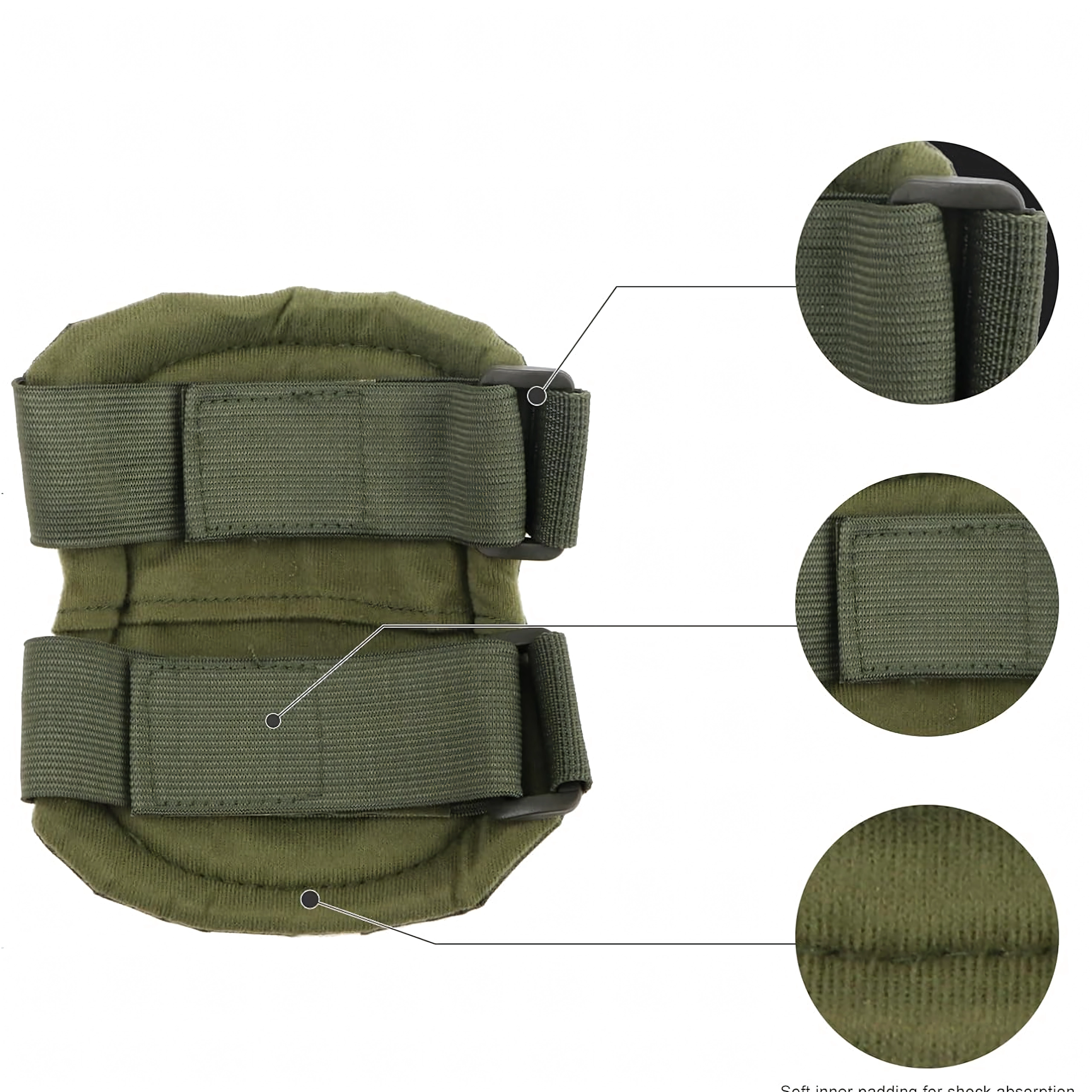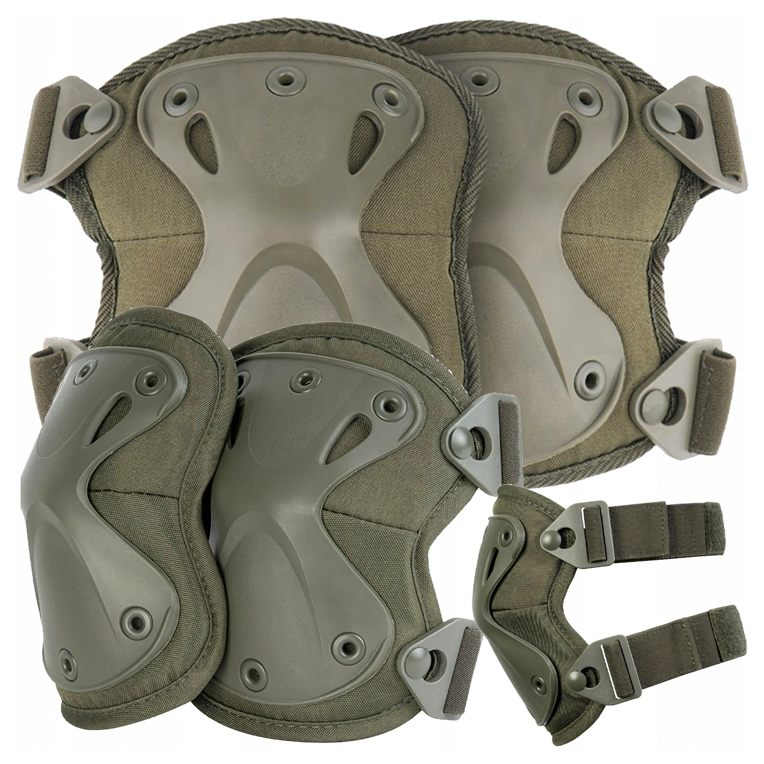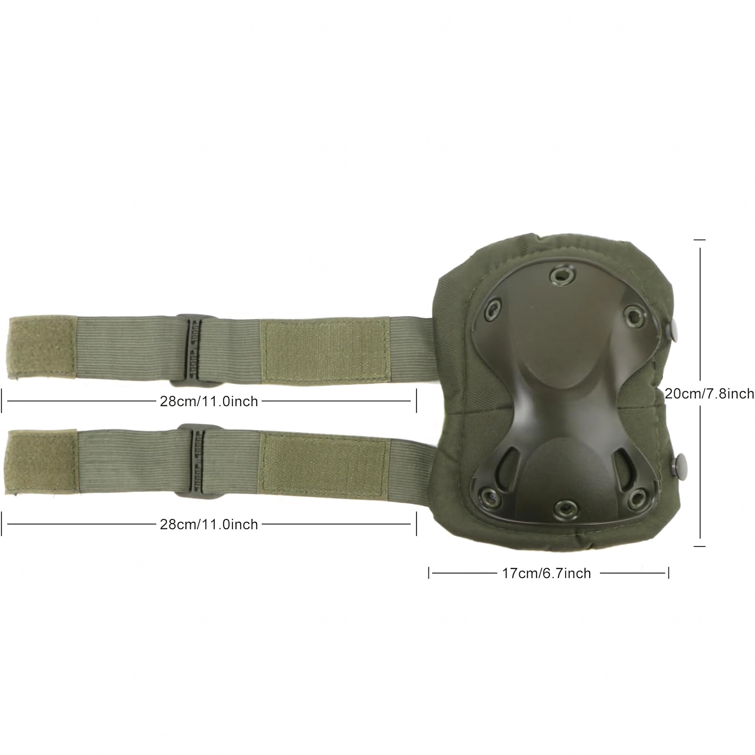 Apsaugos tvirtinamos elastiniais dirželiais su galimybe tiksliai priveržti. Knuiedyta jungtis padidina atsparumą išplėšimui, o greito užsegimo sagtelės leidžia žaibiškai užsidėti ir nuimti neperreguliuojant dirželių ilgio. Tinka airsoftui, dažasvydžiui, dviračiams, riedėjimui/paspirtukui/riedučiams, veiklai lauke ir lengviems darbiniams darbams.
