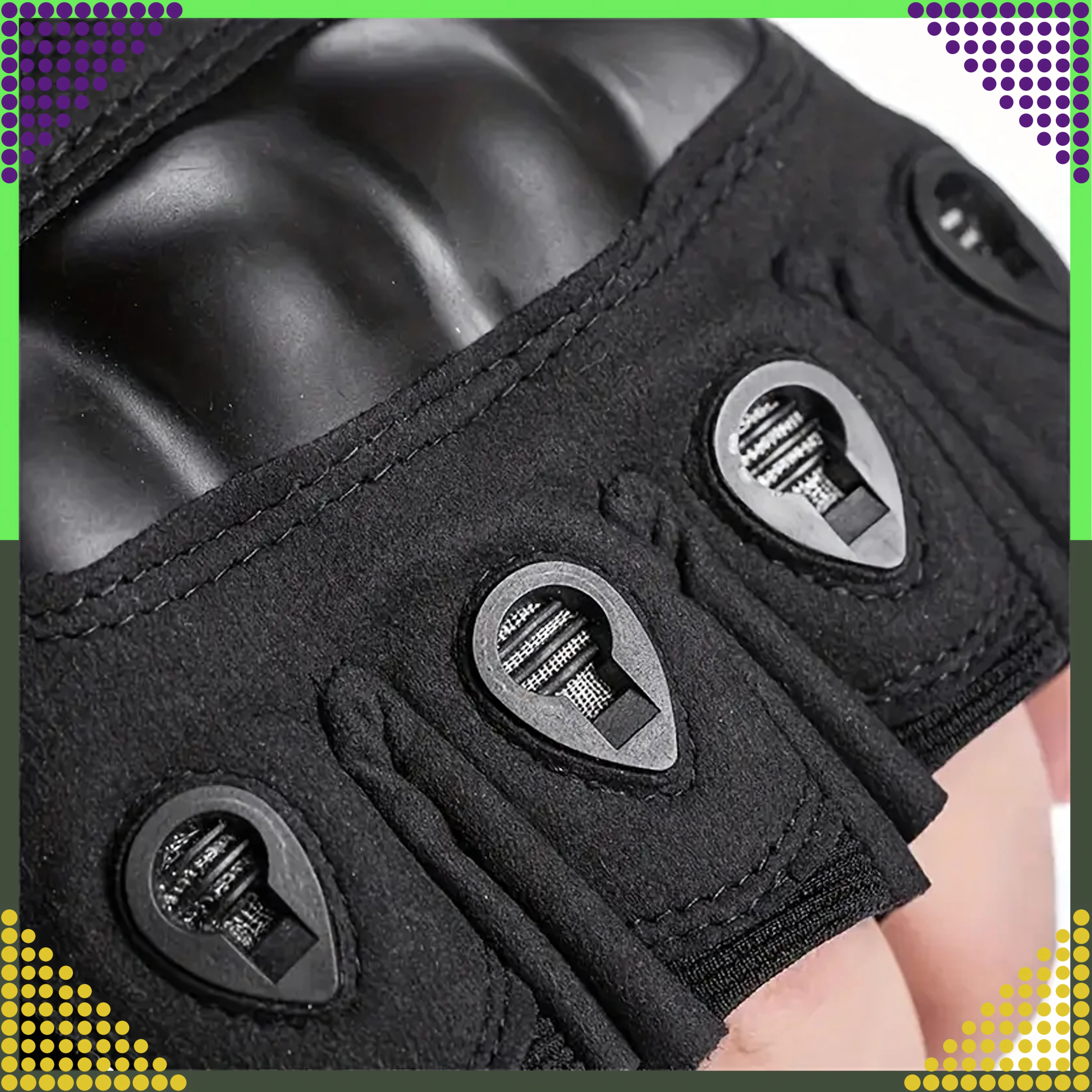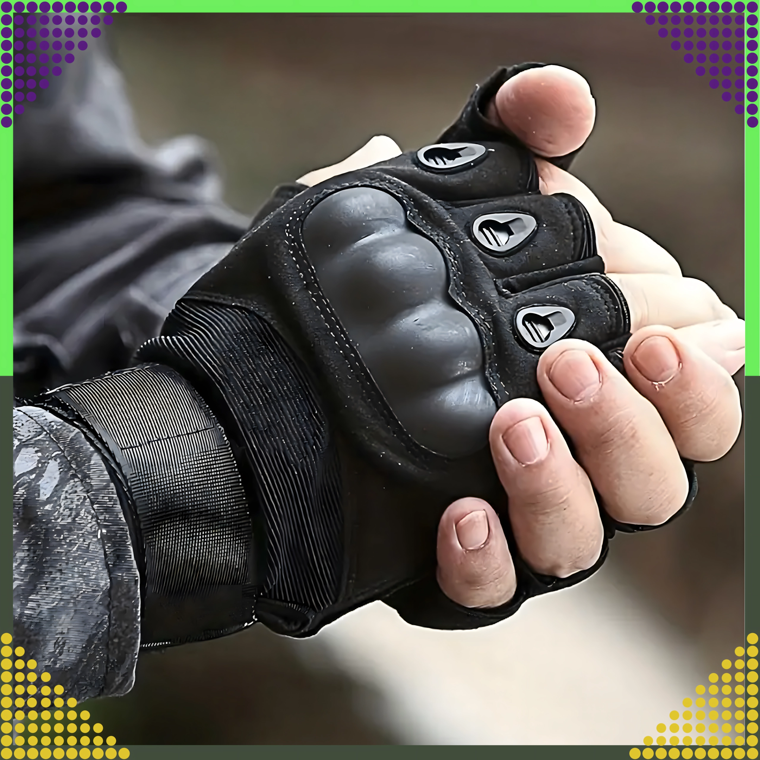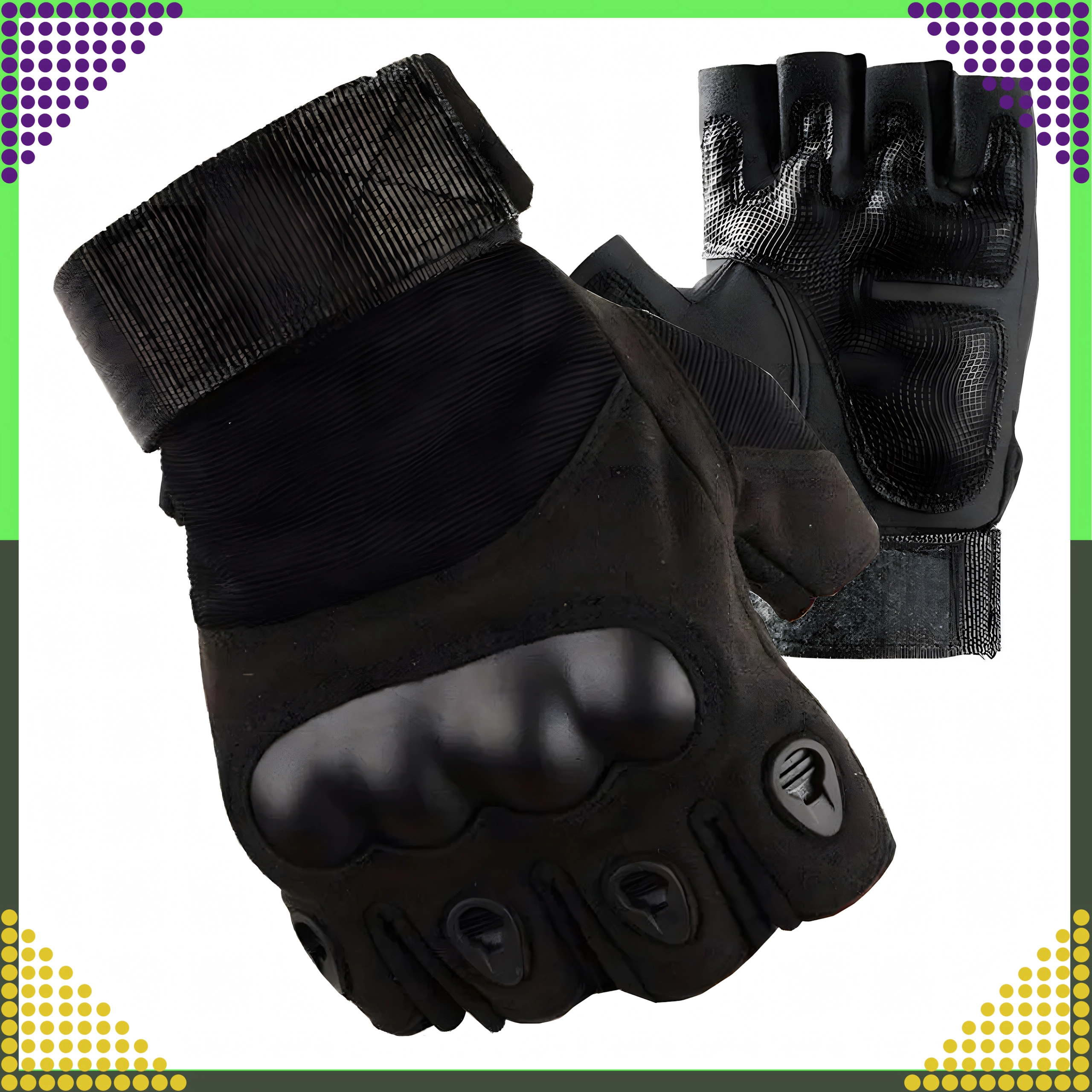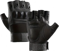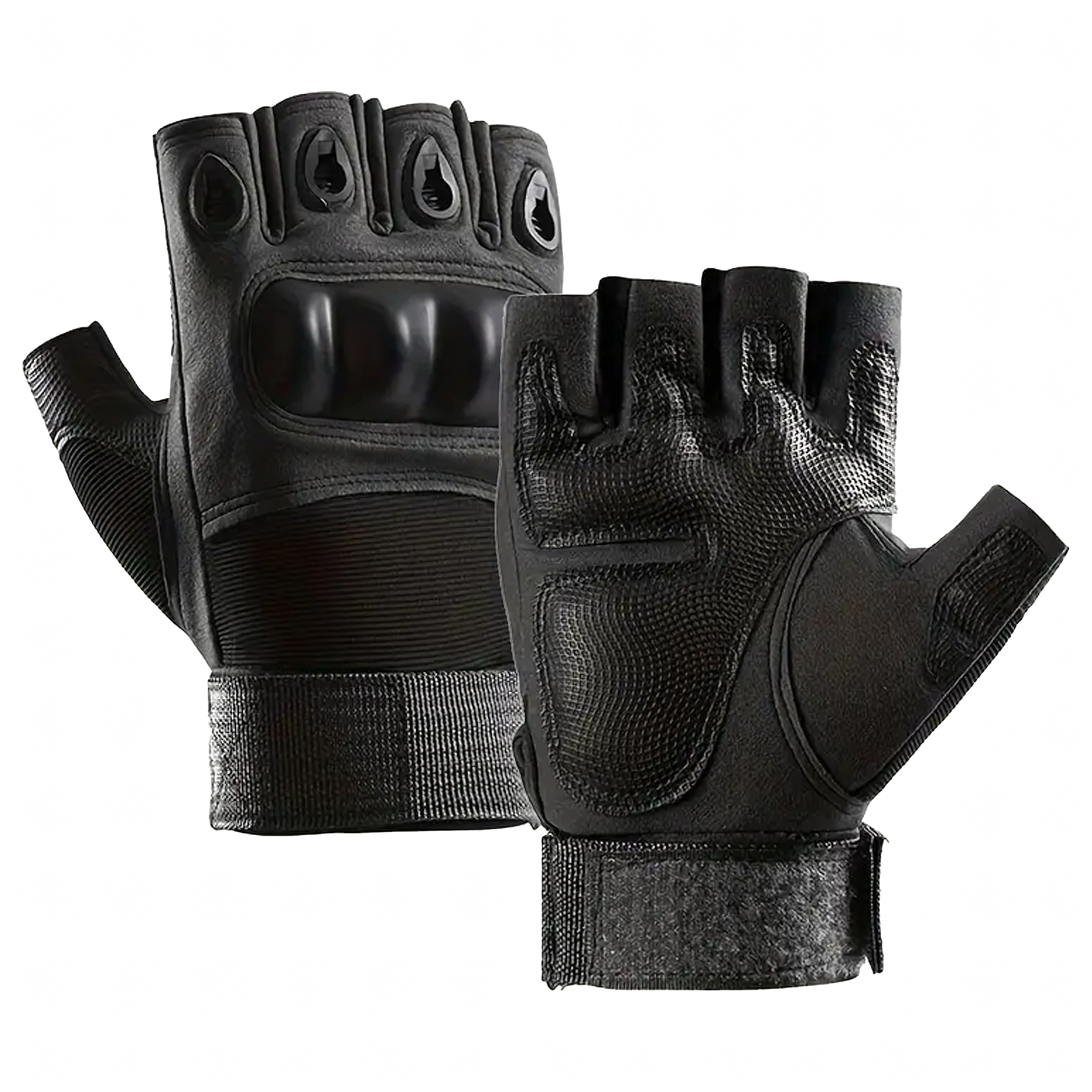 Patvarios taktinės bepirštės pirštinės, dydis L, juodos spalvos, suteikia patikimą sąnarių apsaugą, tvirtą neslystantį suėmimą ir laisvus pirštų galus tiksliai manipuliacijai. Idealu lauko veikloms, šaudymui, važinėjimui dviračiu ir darbui.