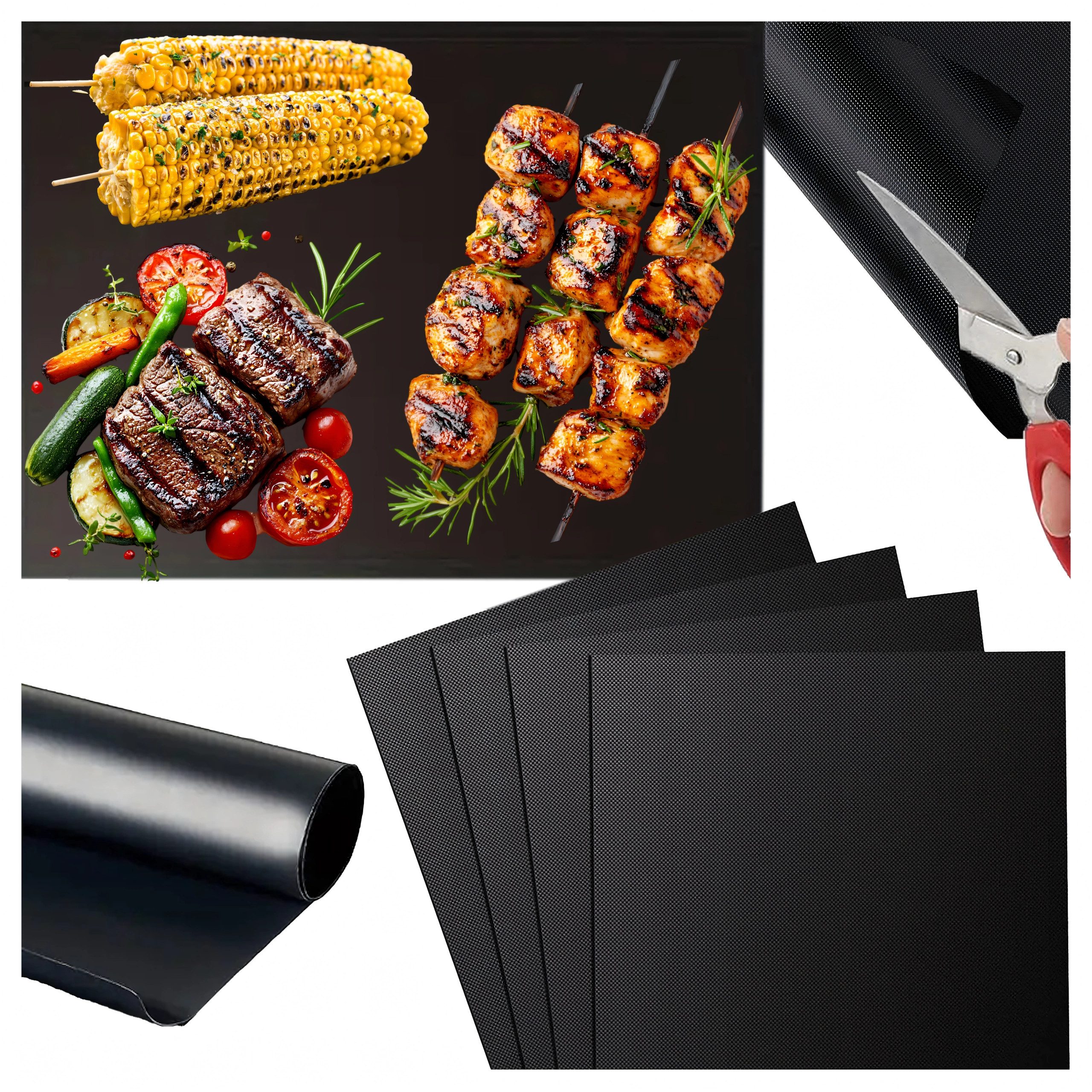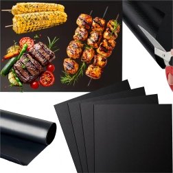 Praktiška tefloninė grilio padėkliukų danga griliui ir orkaitei, rinkinyje 4 vnt., palengvina maisto ruošimą be svilimo ir be riebalų. Ji yra neprideganti, lengvai valoma, be PFOA ir tinkama daugkartiniam naudojimui iki 260 °C. Idealiai tinka mėsai, žuviai, daržovėms ir vaisiams, padeda išlaikyti grilį ir orkaitę švarius.