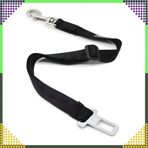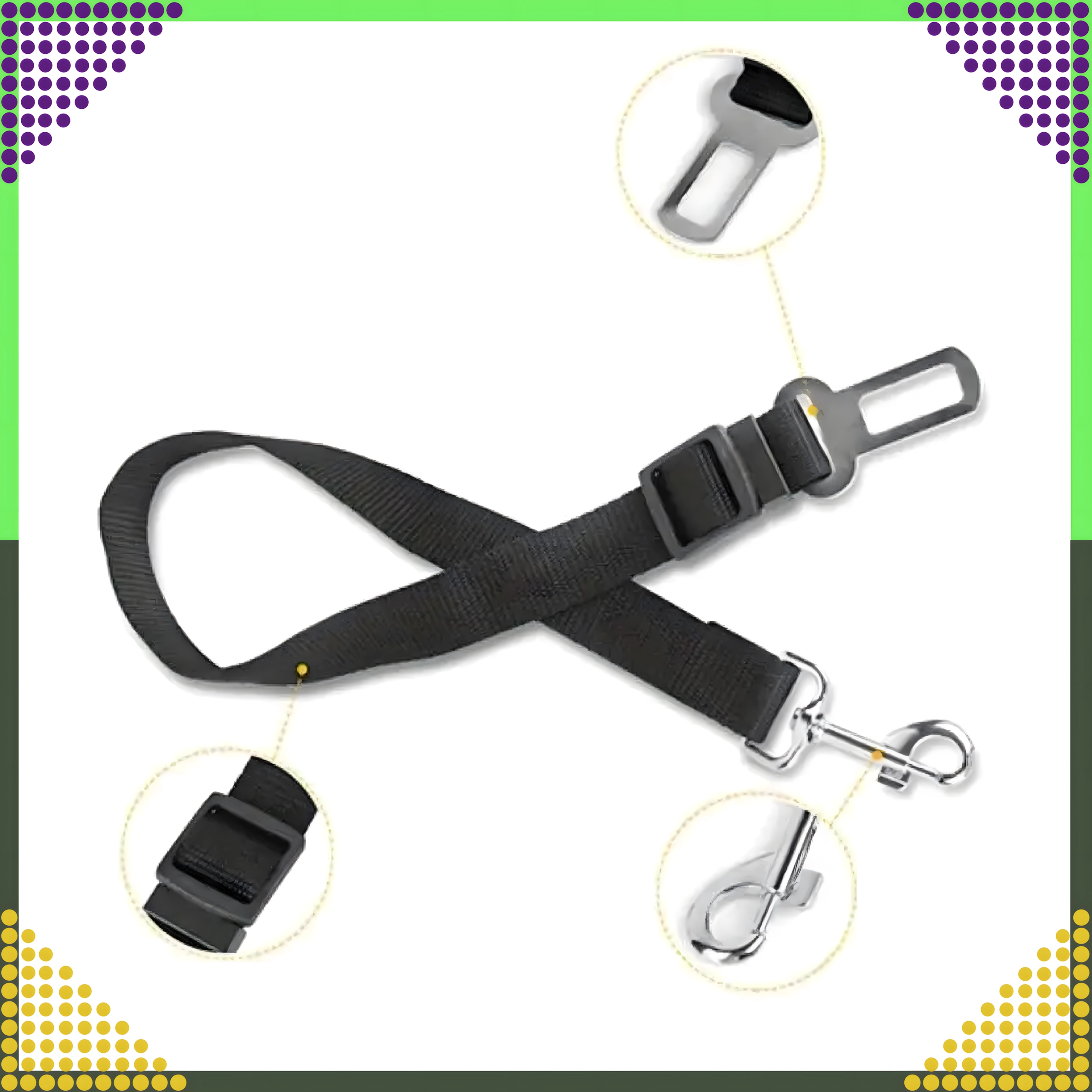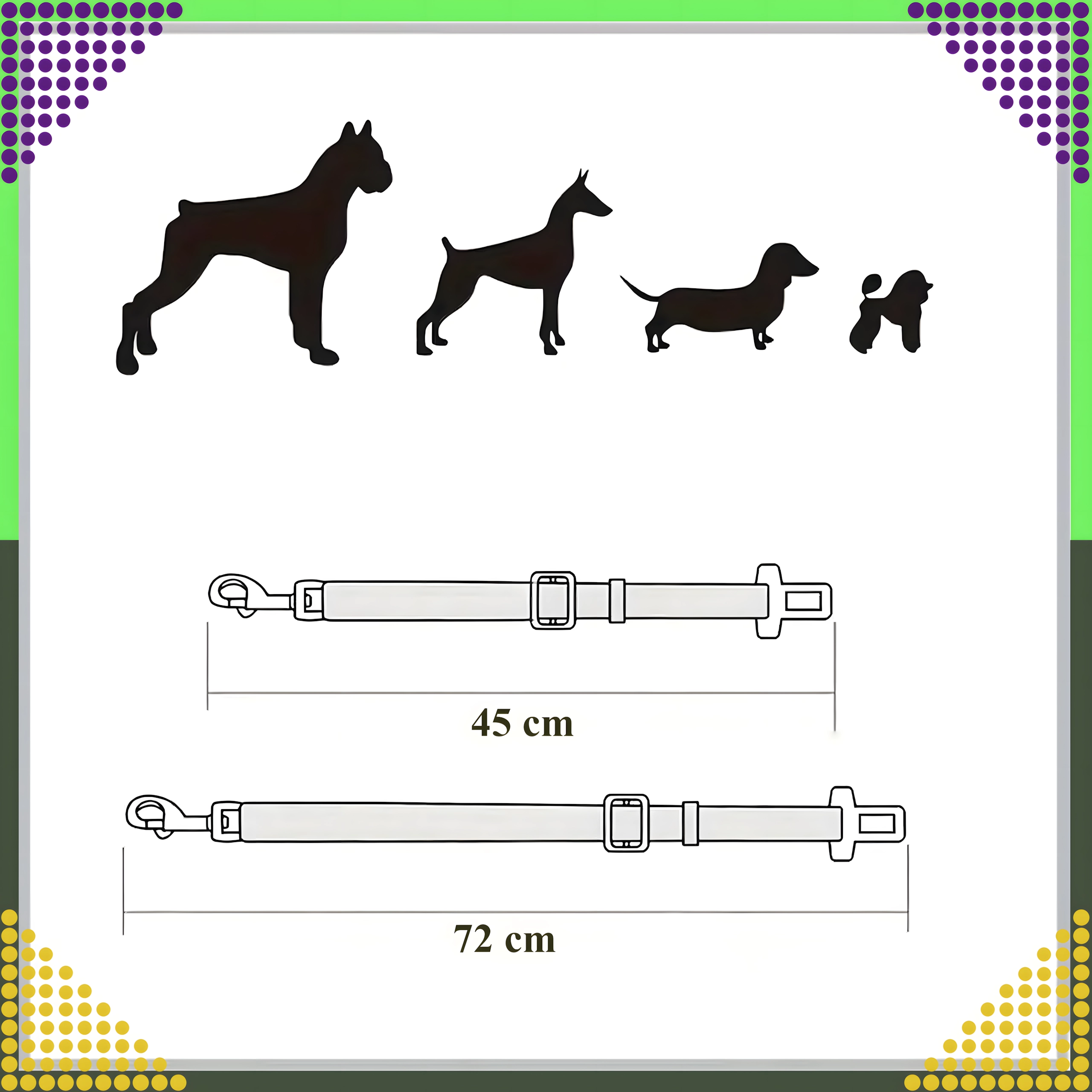 Praktiškas diržas šuns ar katės saugiam pritvirtinimui kelionės automobiliu metu. Tiesiog įstatykite jį į standartinį saugos diržo lizdą, o kitą galą pasukamu karabinu pritvirtinkite prie petnešų (rekomenduojama vietoje antkaklio). Reguliuojamas 45–72 cm ilgis leidžia gyvūnui sėdėti ar gulėti, bet kartu riboja pavojingą judėjimą po saloną.