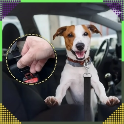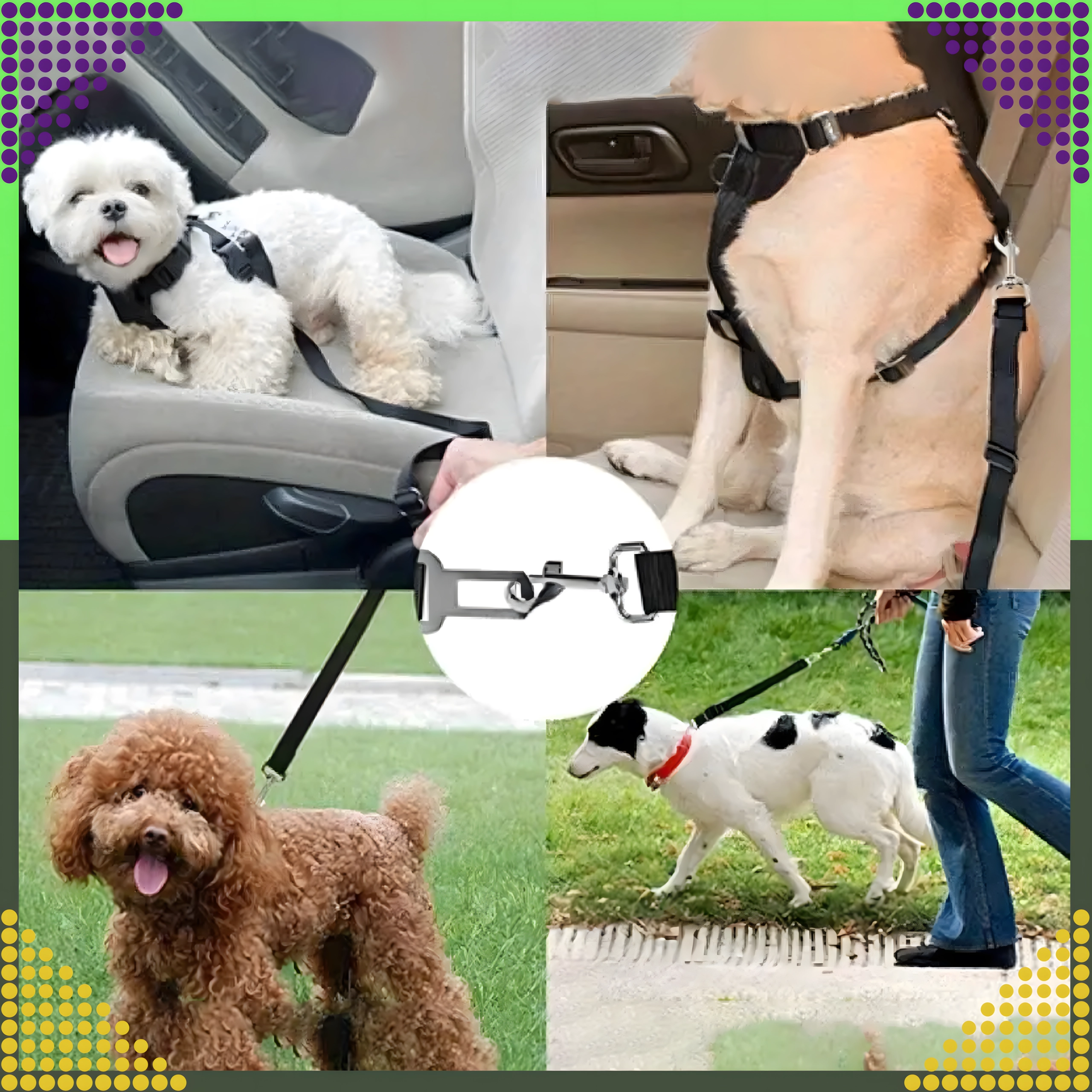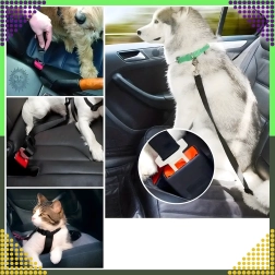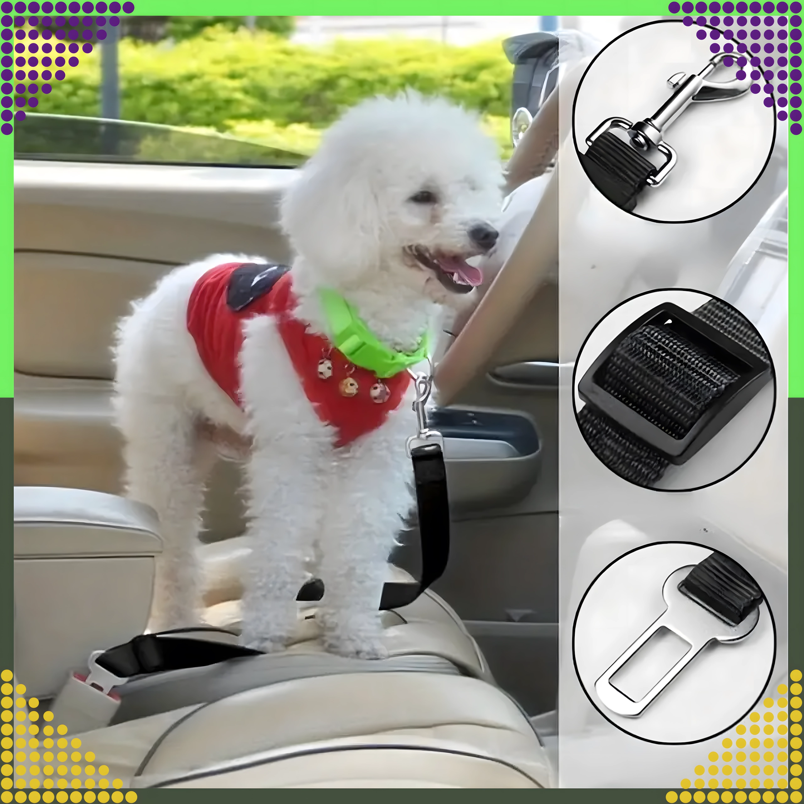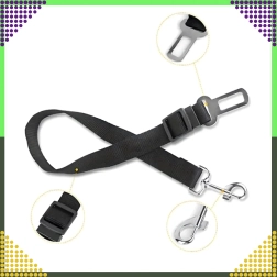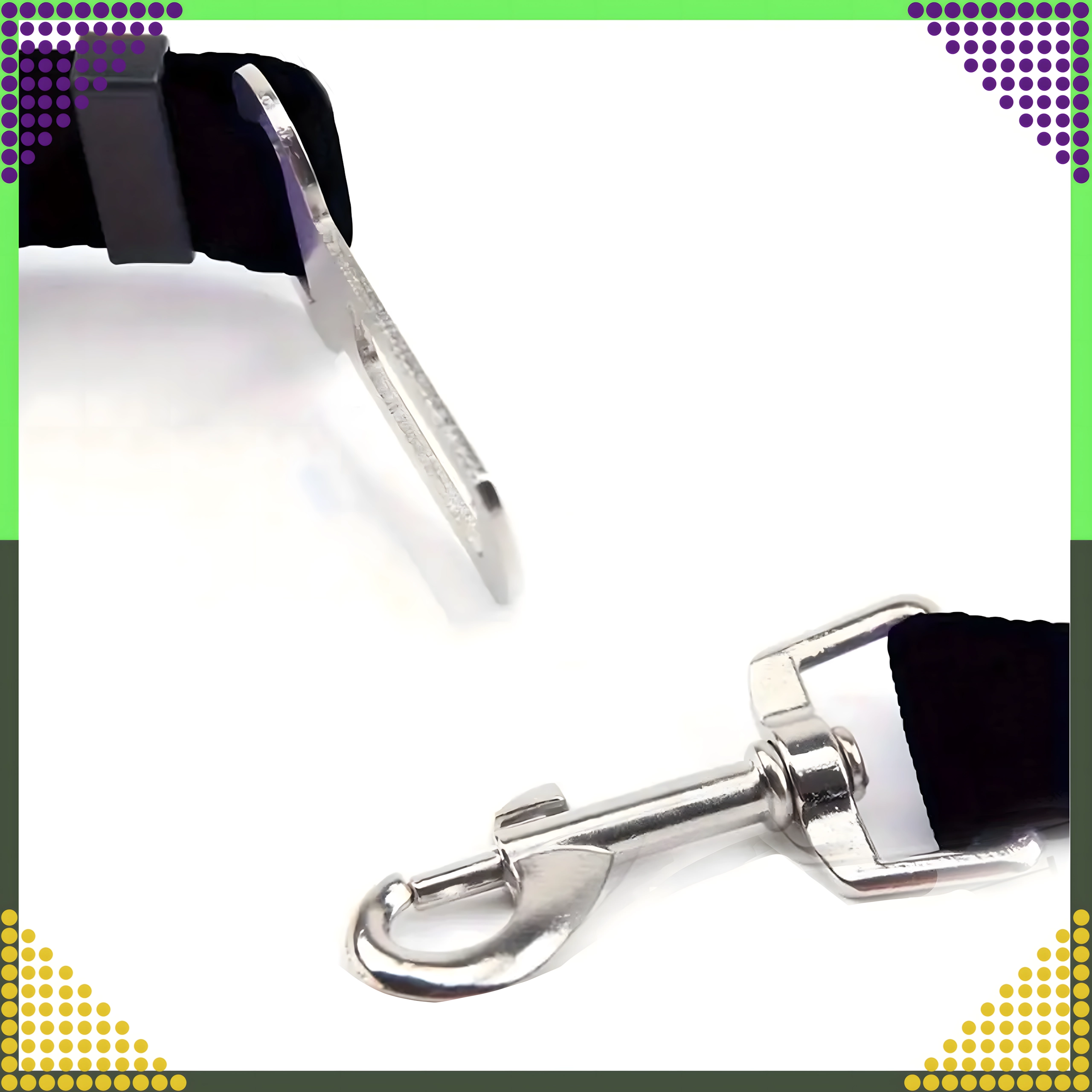 Praktiškas diržas šuns ar katės saugiam pritvirtinimui kelionės automobiliu metu. Tiesiog įstatykite jį į standartinį saugos diržo lizdą, o kitą galą pasukamu karabinu pritvirtinkite prie petnešų (rekomenduojama vietoje antkaklio). Reguliuojamas 45–72 cm ilgis leidžia gyvūnui sėdėti ar gulėti, bet kartu riboja pavojingą judėjimą po saloną.