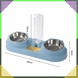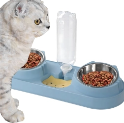 Ši dviguba lėkštė su automatine girdykla idealiai tinka šunims ir katėms. Du išimami nerūdijančio plieno dubenėliai (kiekvienas po 220 ml) leidžia atskirai patiekti šlapią ir sausą pašarą, o gravitacinis dozatorius nuolat papildo vandens rezervuarą. Patvari plastikinė bazė elegantiškos mėlynos spalvos yra stabili ir nereikli priežiūrai.