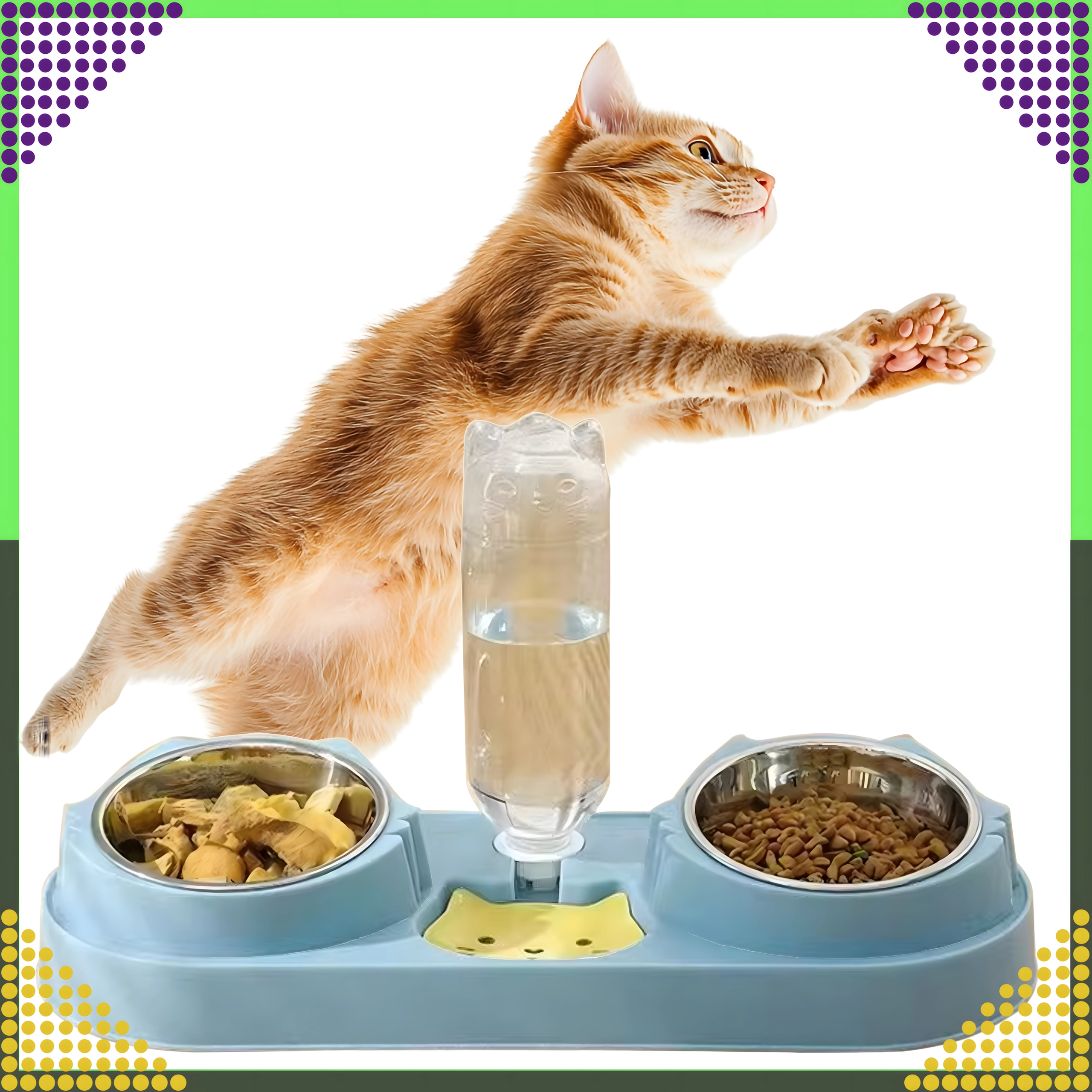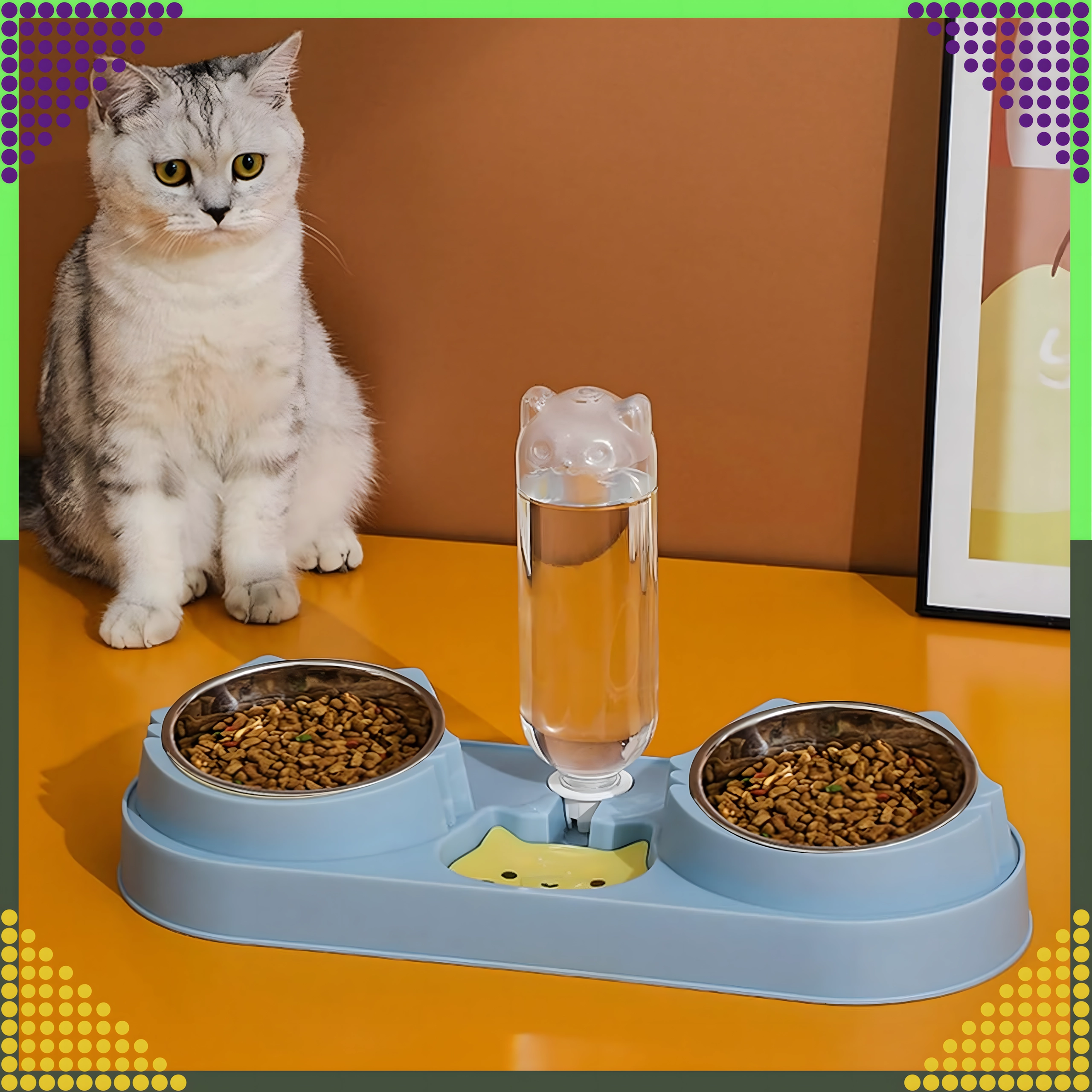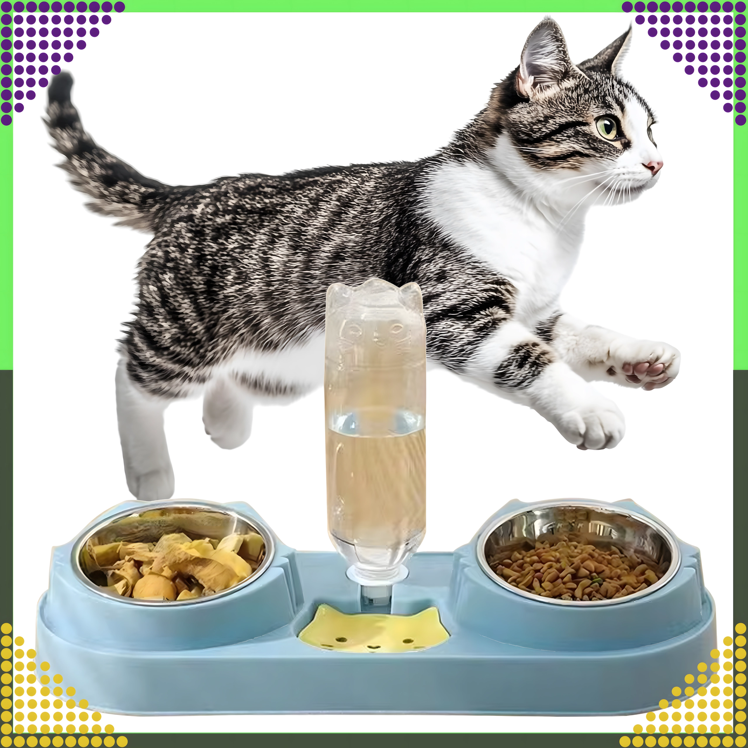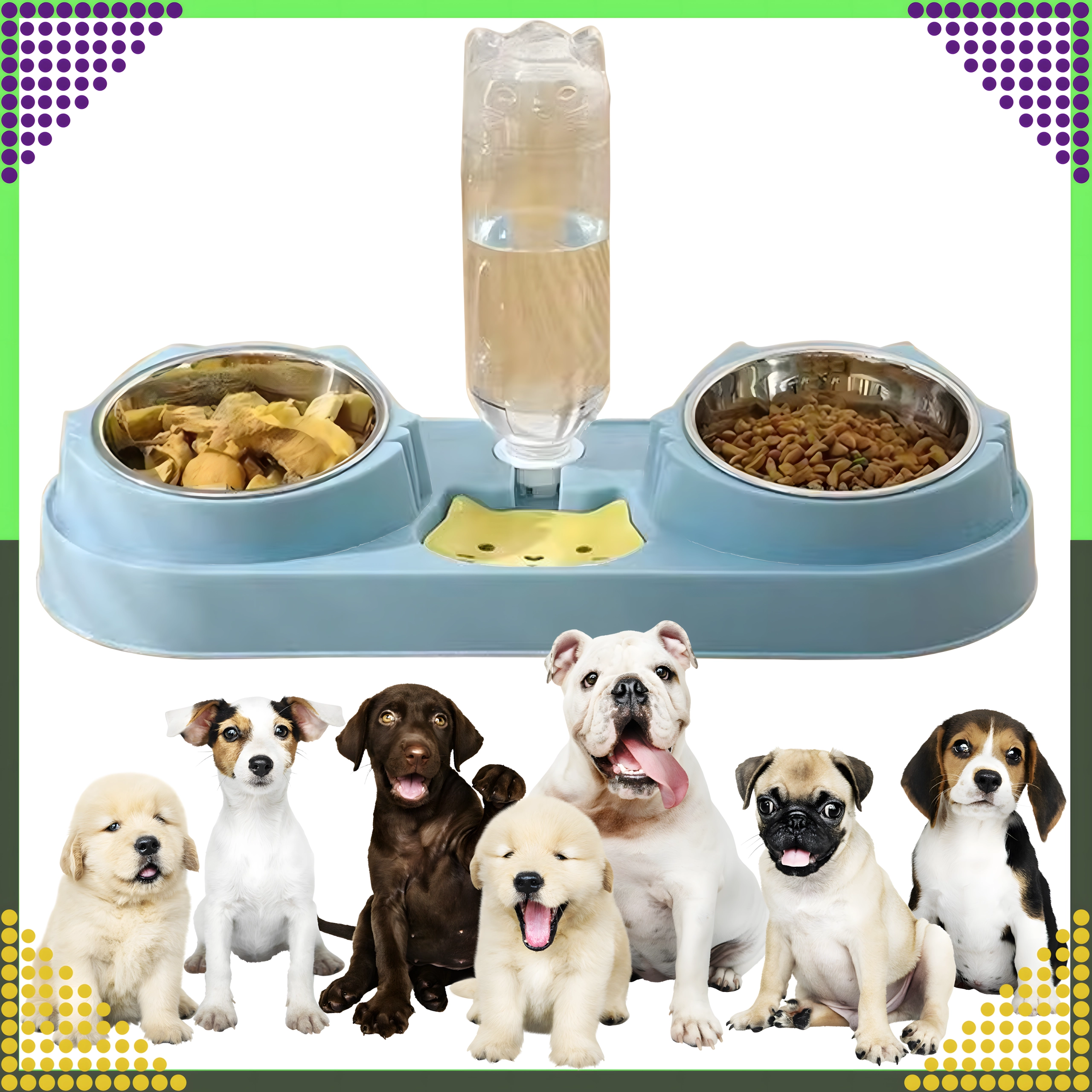 Praktiška dviguba augintinių lėkštė su integruotu vandens dozatoriumi užtikrina vienu metu paduodamą pašarą ir šviežią vandenį. Išimami nerūdijančio plieno dubenėliai leidžia greitai valyti, stabili bazė saugo nuo apvertimo, o gravitacinė girdykla palaiko vandenį švarų ir prieinamą net ir jums nesant namuose.