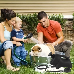 Nešiojama 8 l talpos šunų ir kačių plovimo sistema sujungia patogų lauko plovimą ir švelnią kailio priežiūrą. Integruotas dušo antgalis su guminiais šereliais derina plovimą ir švelnų šukavimą, veiksmingai pašalina nešvarumus bei išslinkusį kailį ir kartu suteikia malonų masažą.