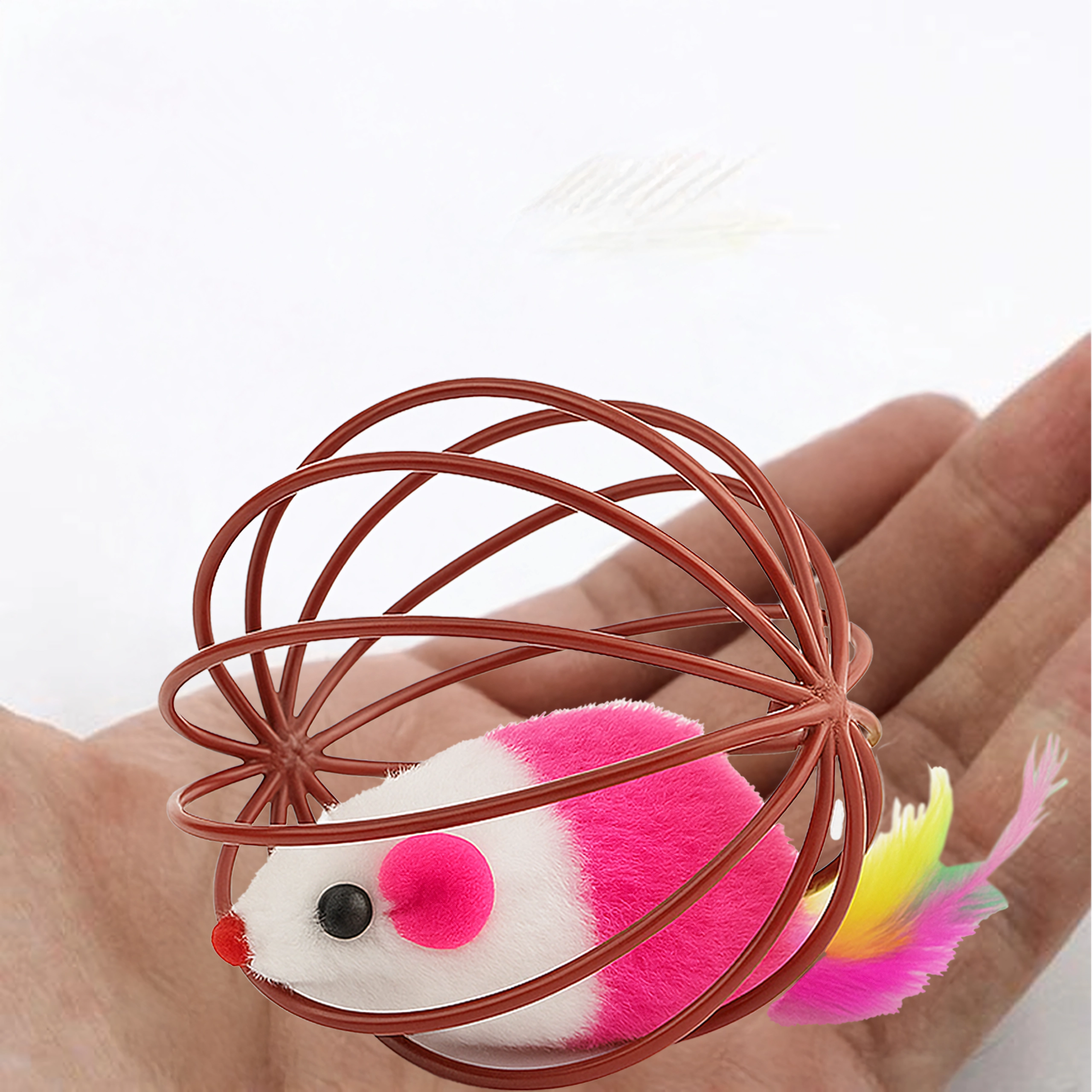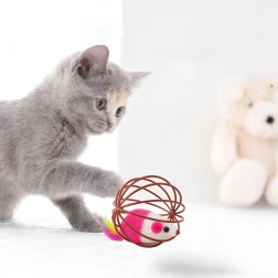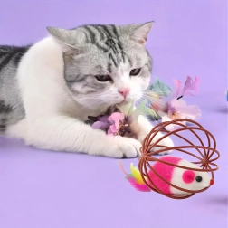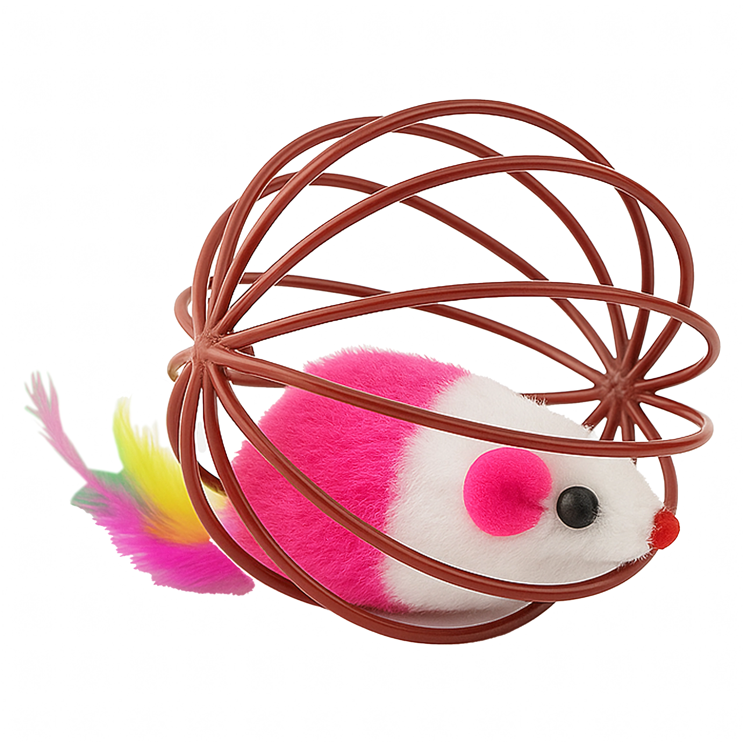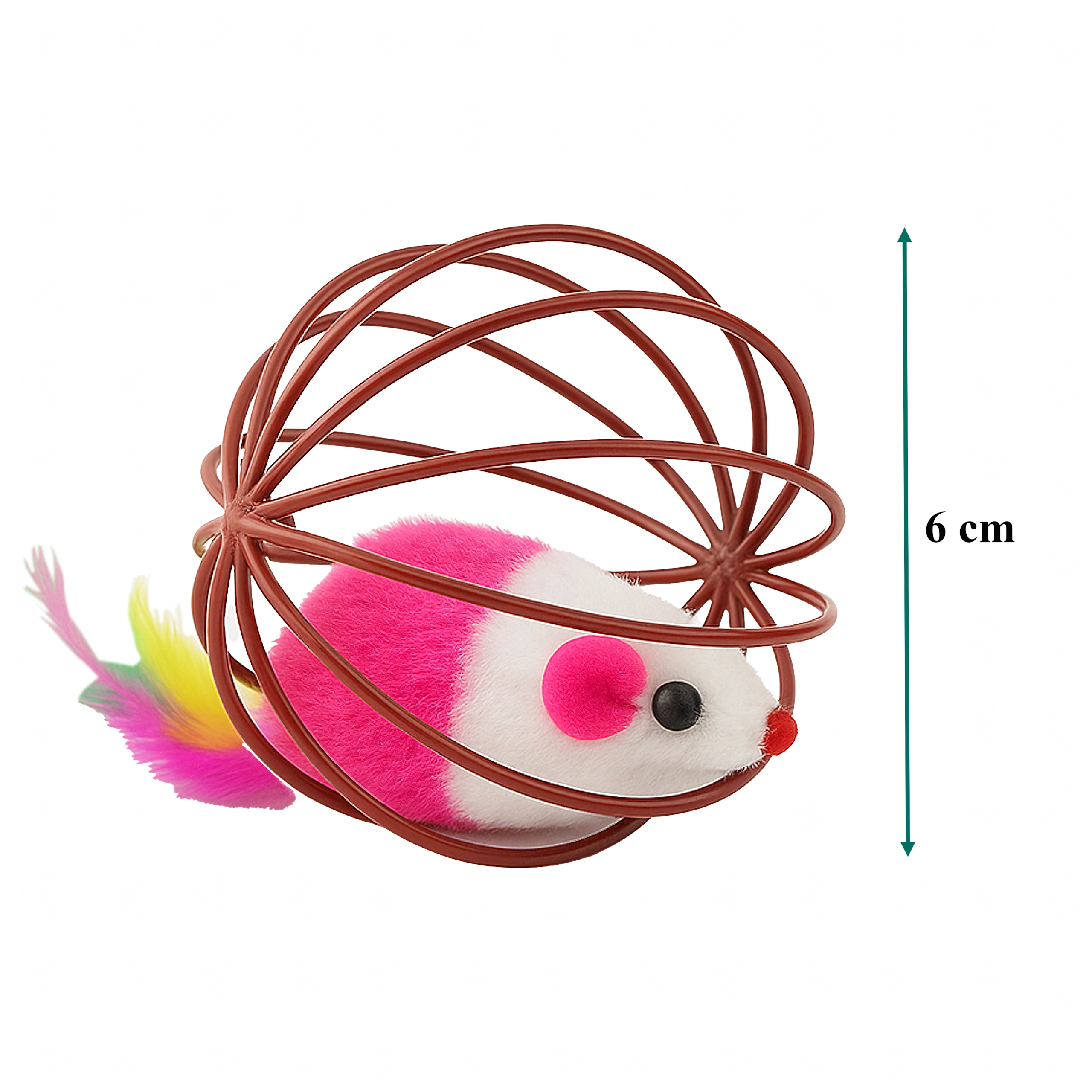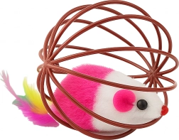 Dėl patvarios vielinės konstrukcijos žaislas lengvai rieda, bet pelytė išlieka saugiai viduje. Atvira struktūra leidžia katei patogiai sugriebti ir stumdyti žaislą, o minkštas pliušas ir plunksnelės suteikia patrauklių tekstūrų. Puikus pasirinkimas savarankiškam ir interaktyviam žaidimui su šeimininku.