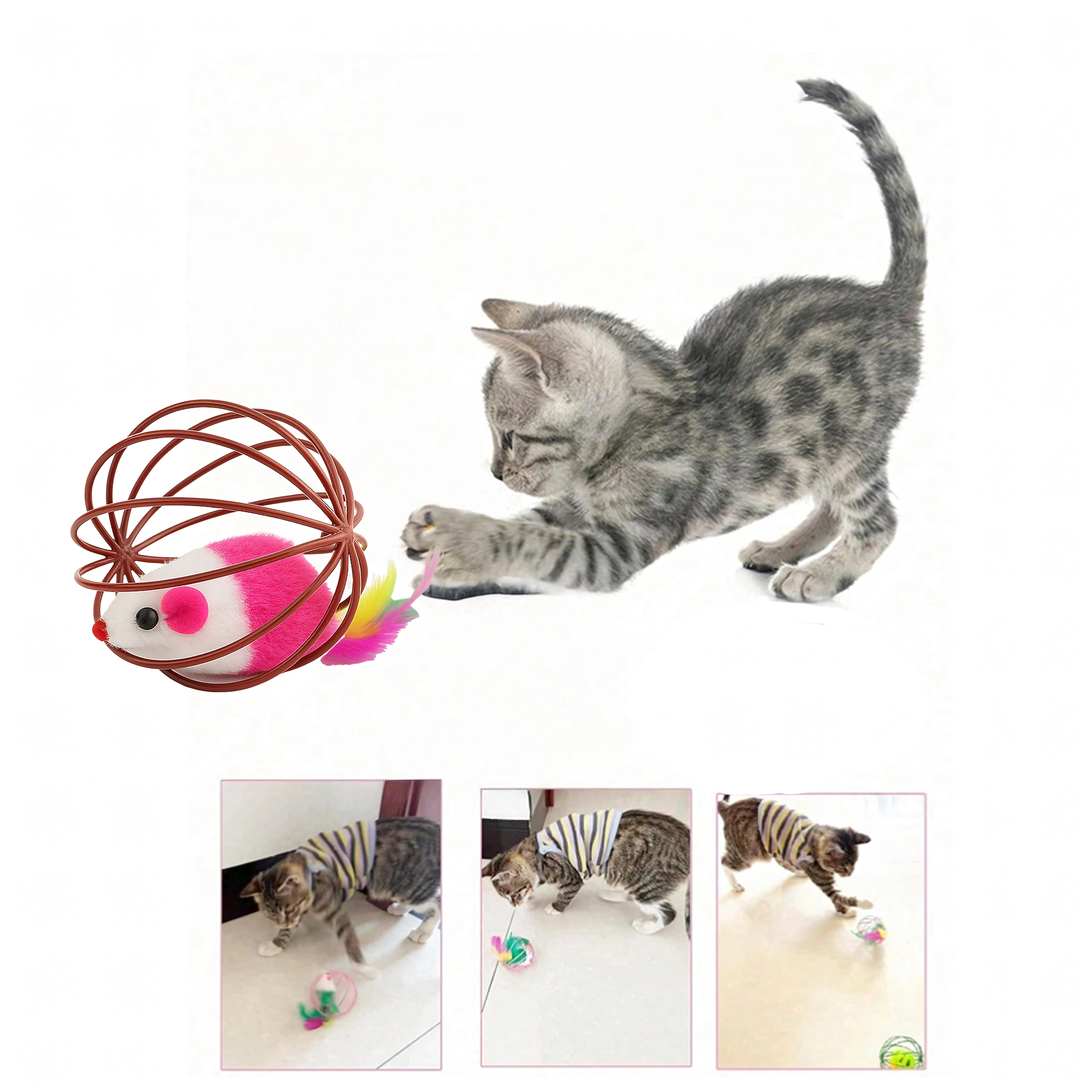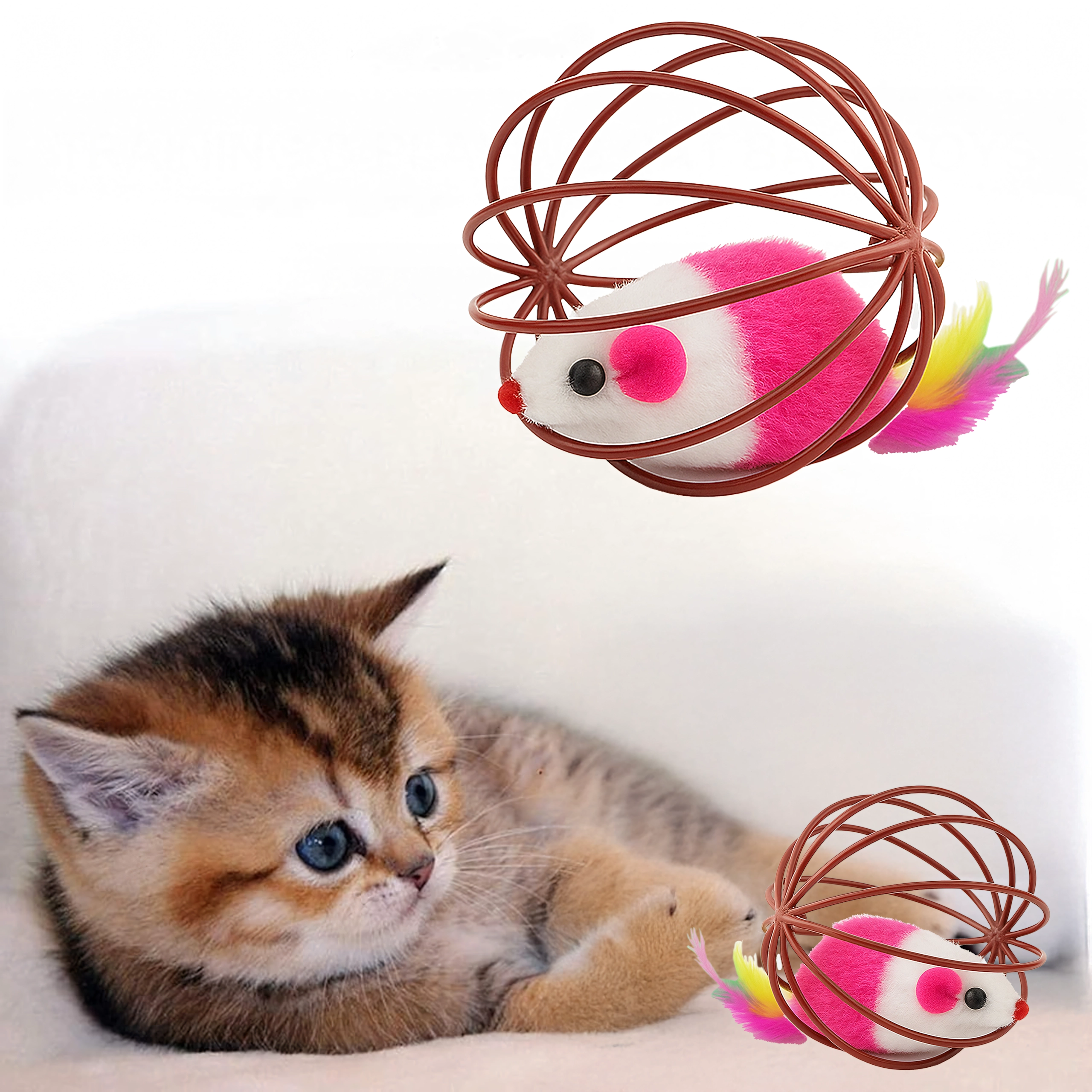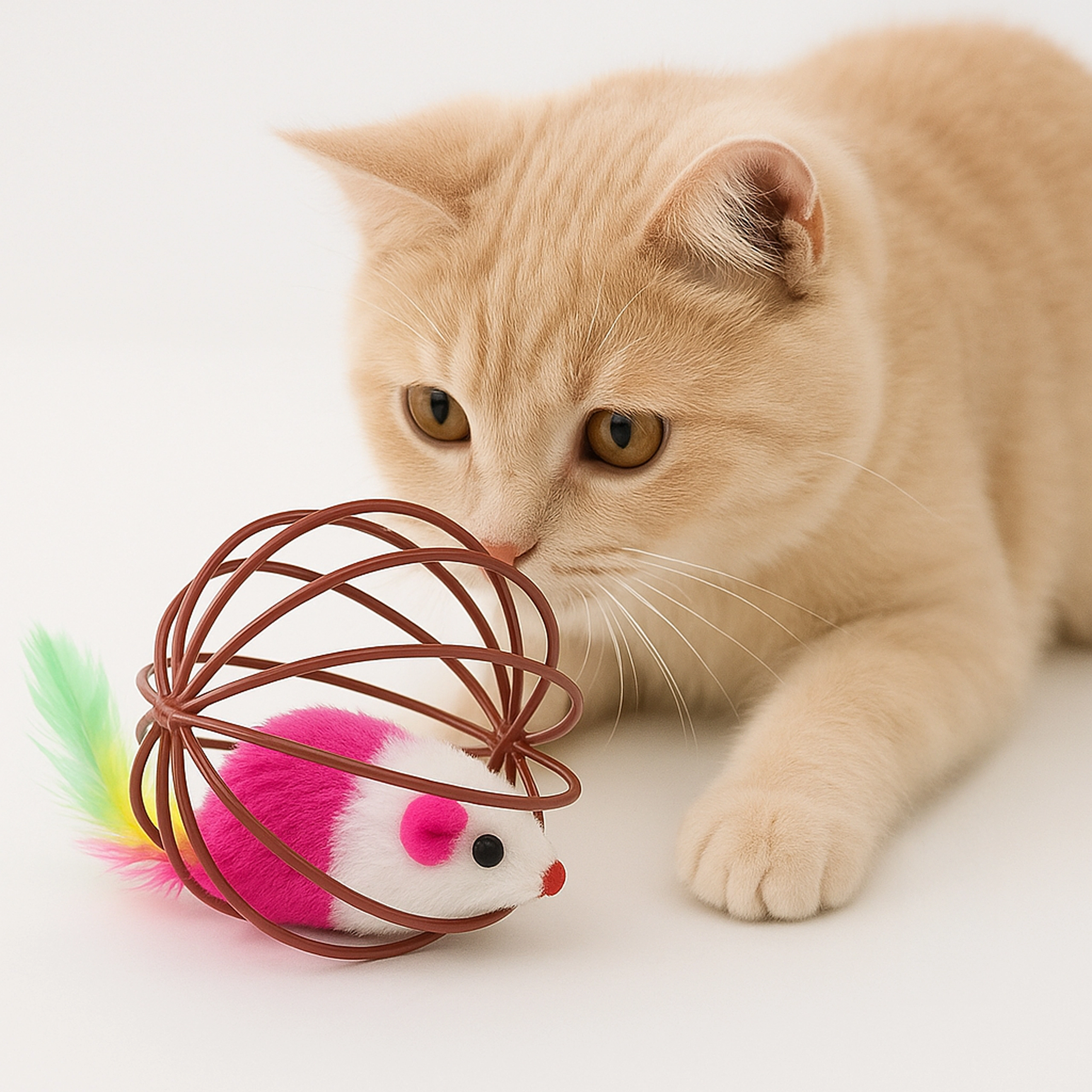 Šis išmanus žaislas sujungia lengvą vielinį kamuolį, kuris sklandžiai rieda grindimis, su viduje esančia pliušine pelyte. Judant pelytė švelniai barška, o spalvingos plunksnelės dar labiau vilioja katę vytis, baksnoti ir „medžioti“. Idealu kačiukams ir suaugusioms katėms, kurios turi išlieti energiją ir palaikyti natūralų elgesį.