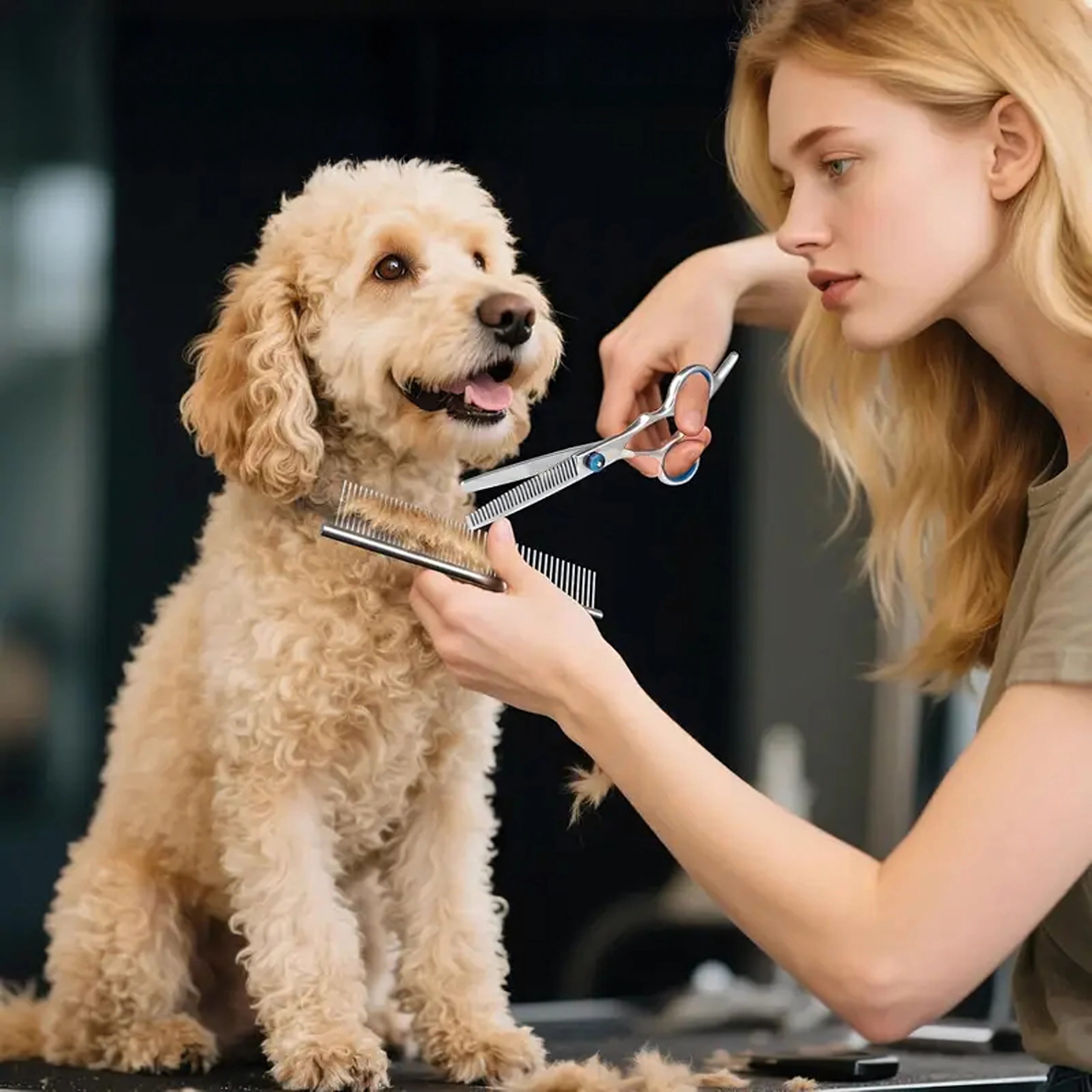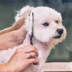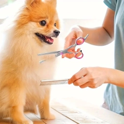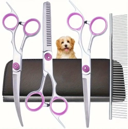 Rinkinyje rasite viską, ko reikia pilnai kailio priežiūrai: tiesias žirkles tikslioms linijoms, lenktas žirkles saugiam formavimui aplink letenas, ausis ir snukutį, filiravimo žirkles sklandiems perėjimams ir švelnias metalines šukas šukavimui bei finišui.