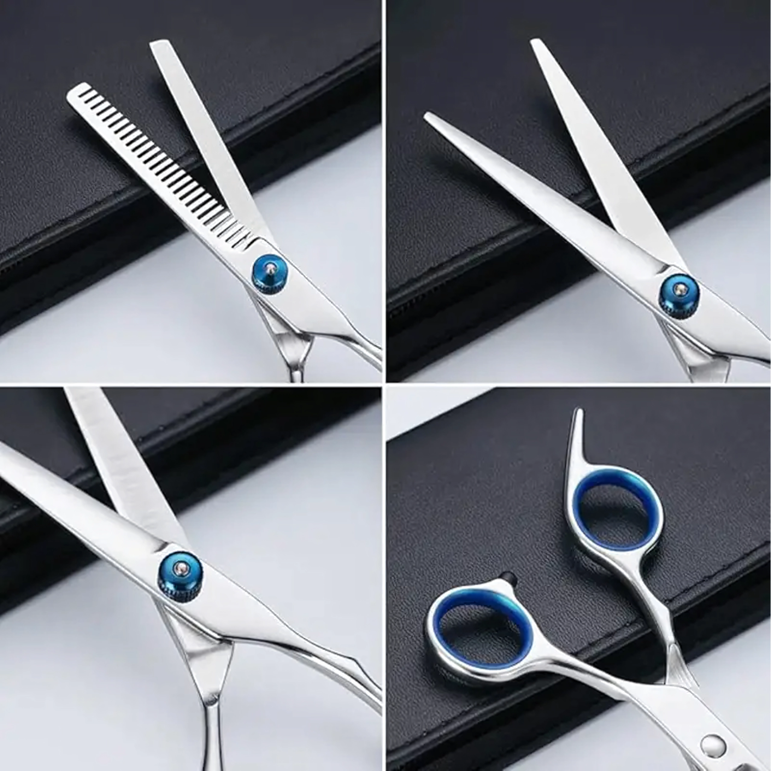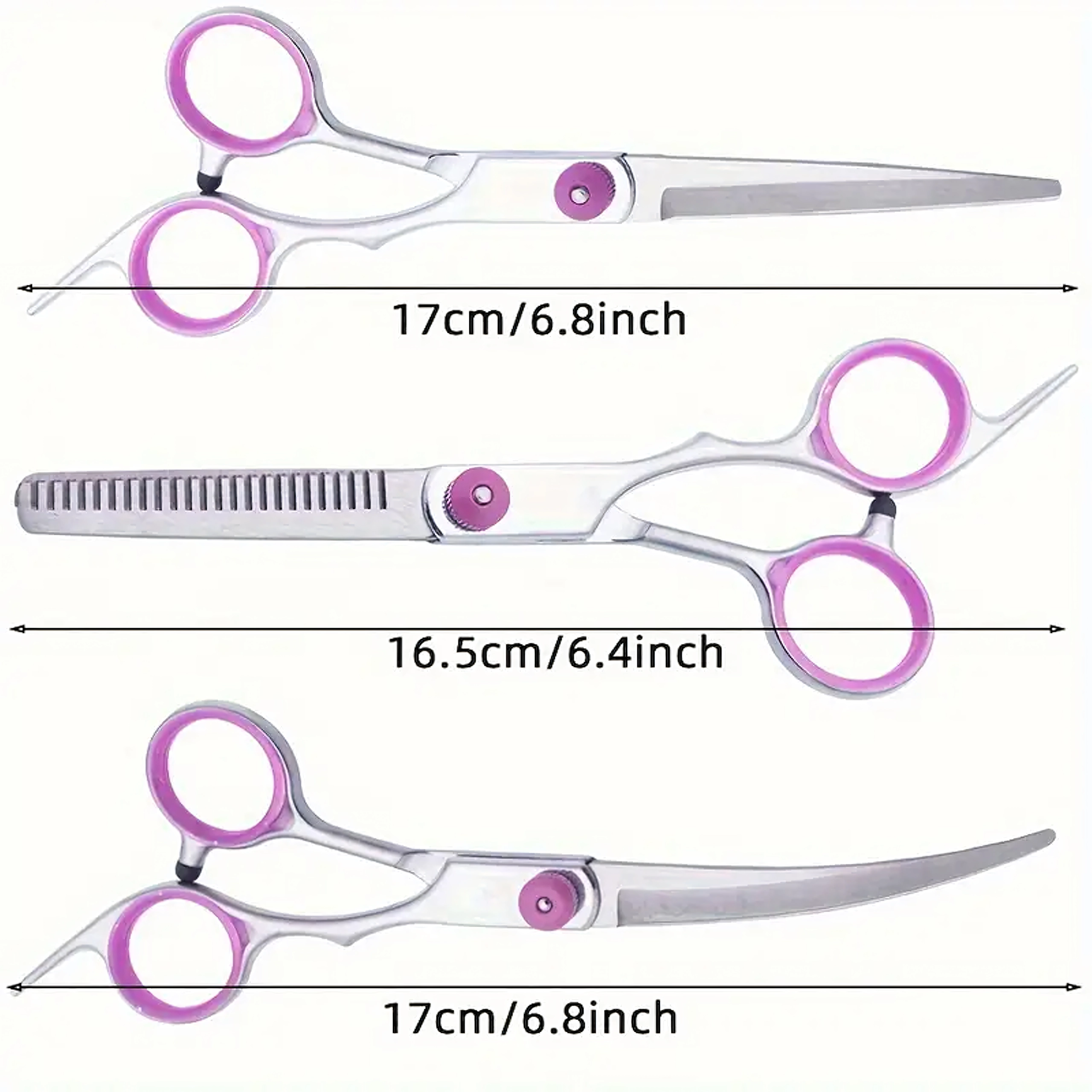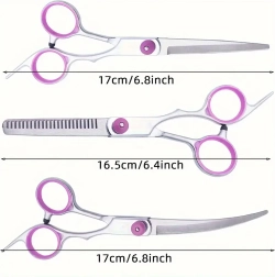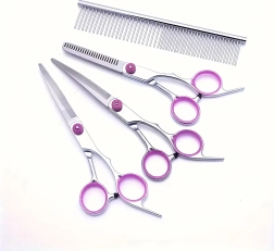 Universalus groominio rinkinys sukurtas tiksliam formavimui, retinimui ir užbaigimo darbams šunų bei kačių kailiui. Nerūdijantis plienas užtikrina ilgaamžiškumą, švarų kirpimą ir lengvą priežiūrą. Dėl ergonominių pirštų žiedų ir atramėlių patogu dirbti net ir ilgiau.