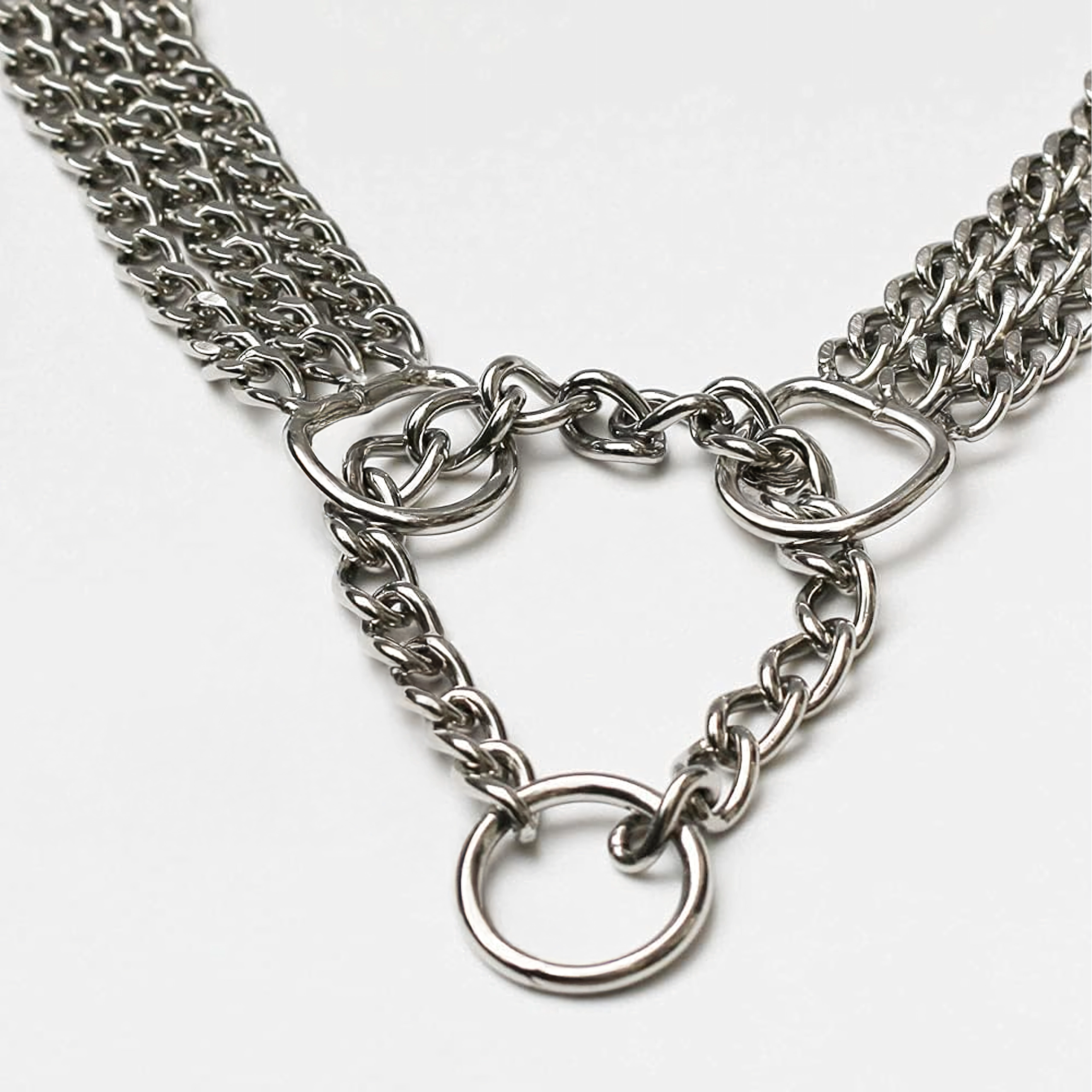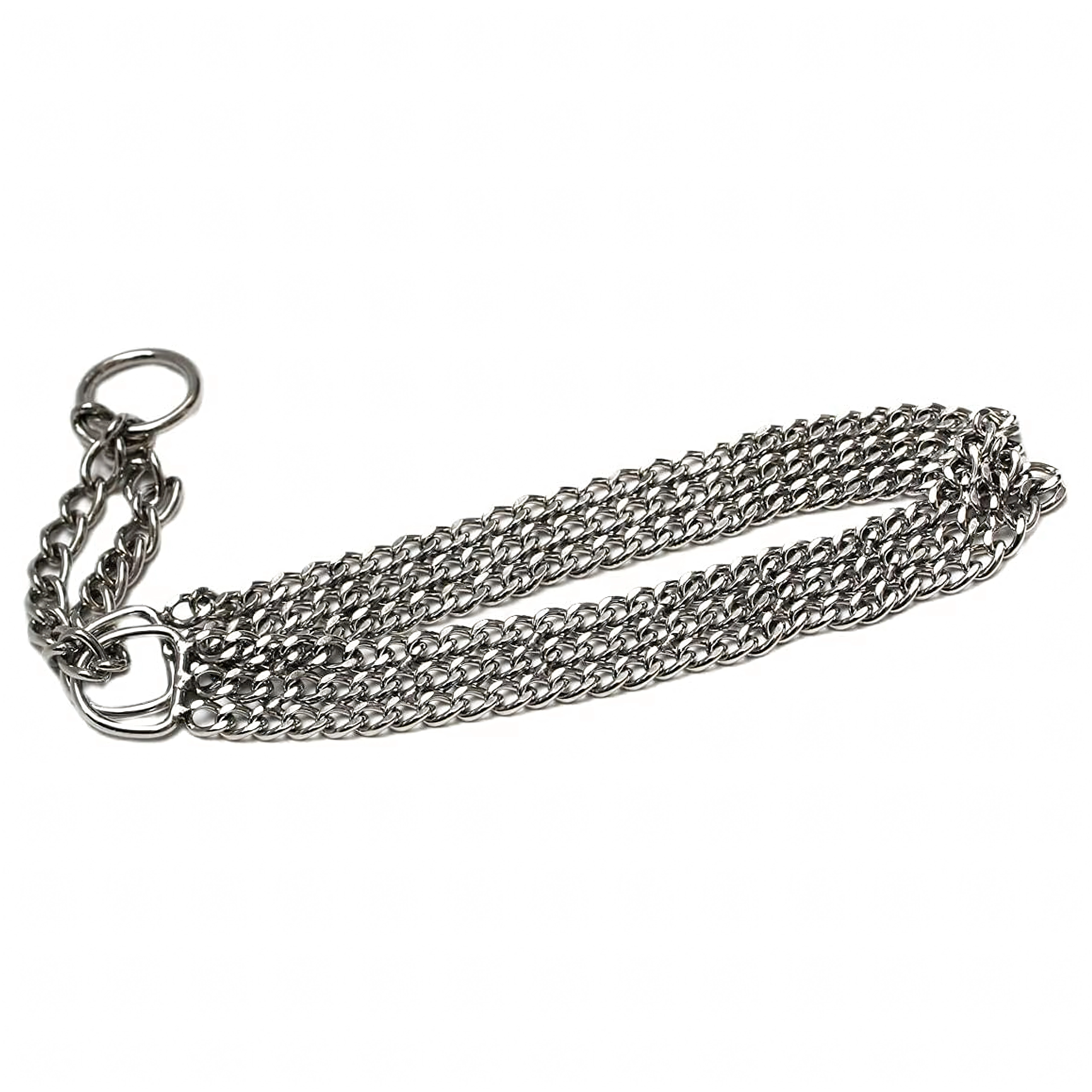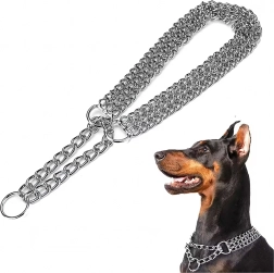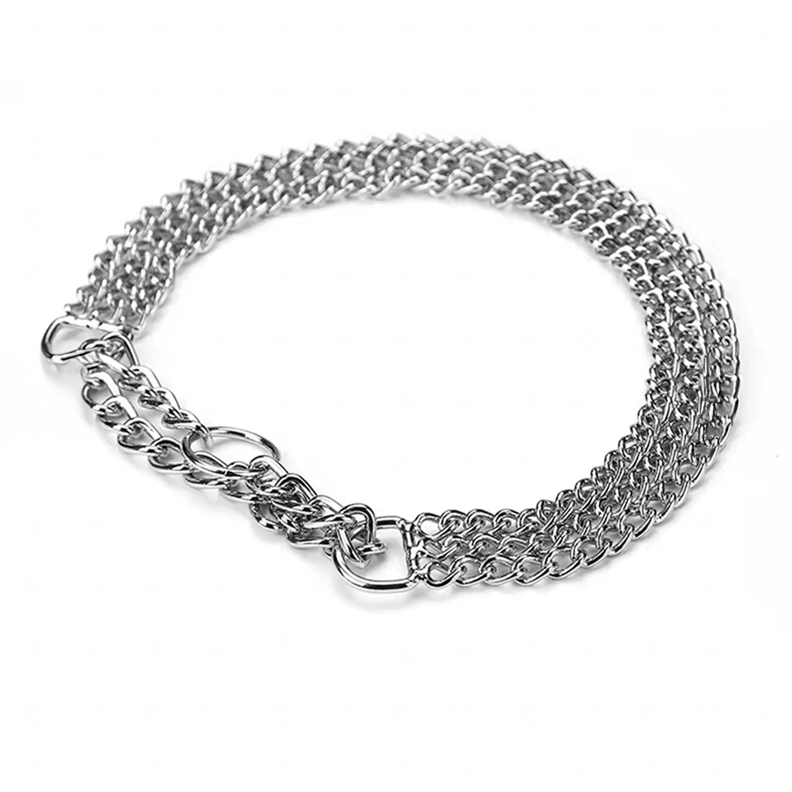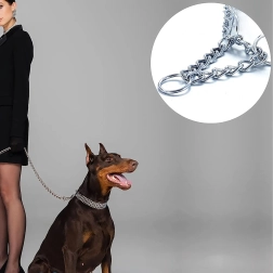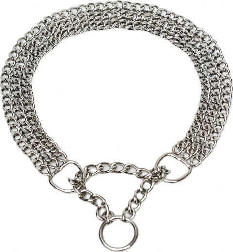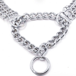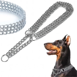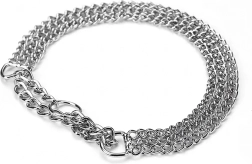 Šis veržiamasis grandininis antkaklis pagamintas iš kokybiško chromuoto plieno, kuris pasižymi didele tvirtybe, atsparumu korozijai ir lygiu paviršiumi šuns patogumui. Triguba grandinė tolygiai paskirsto spaudimą ir užtikrina tikslią, jautrią kontrolę treniruočių metu.