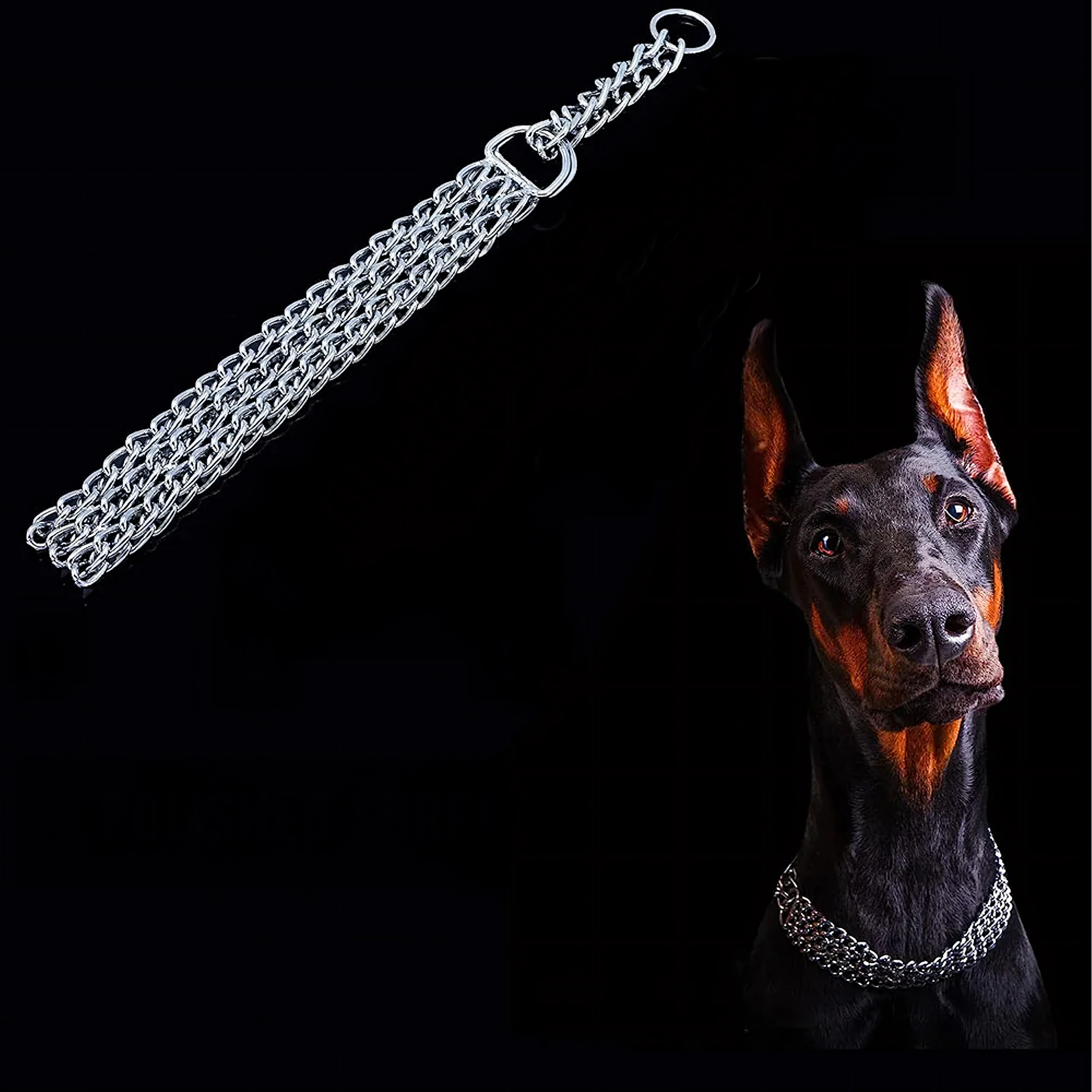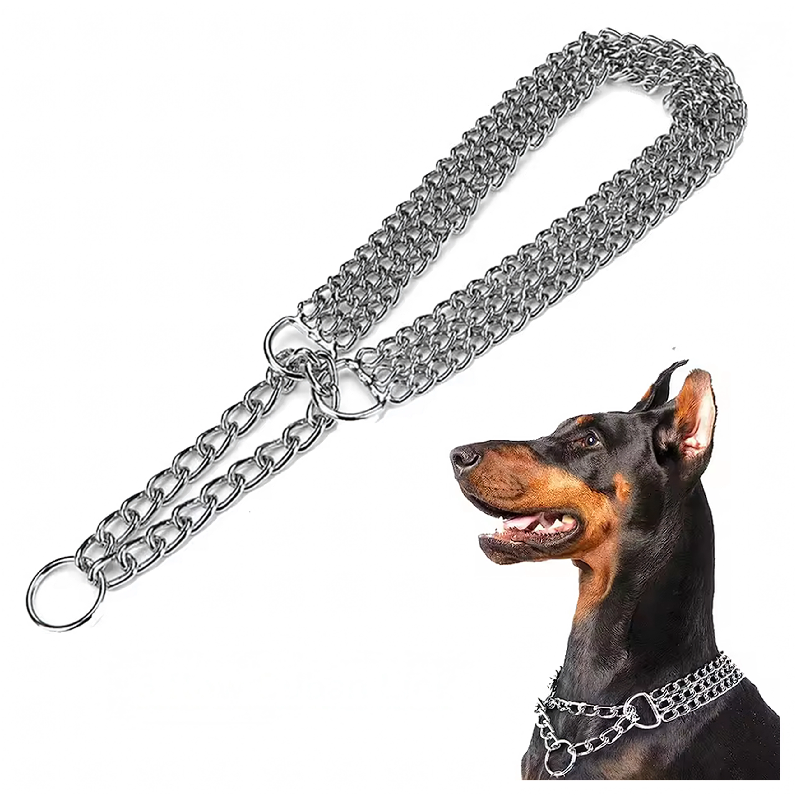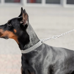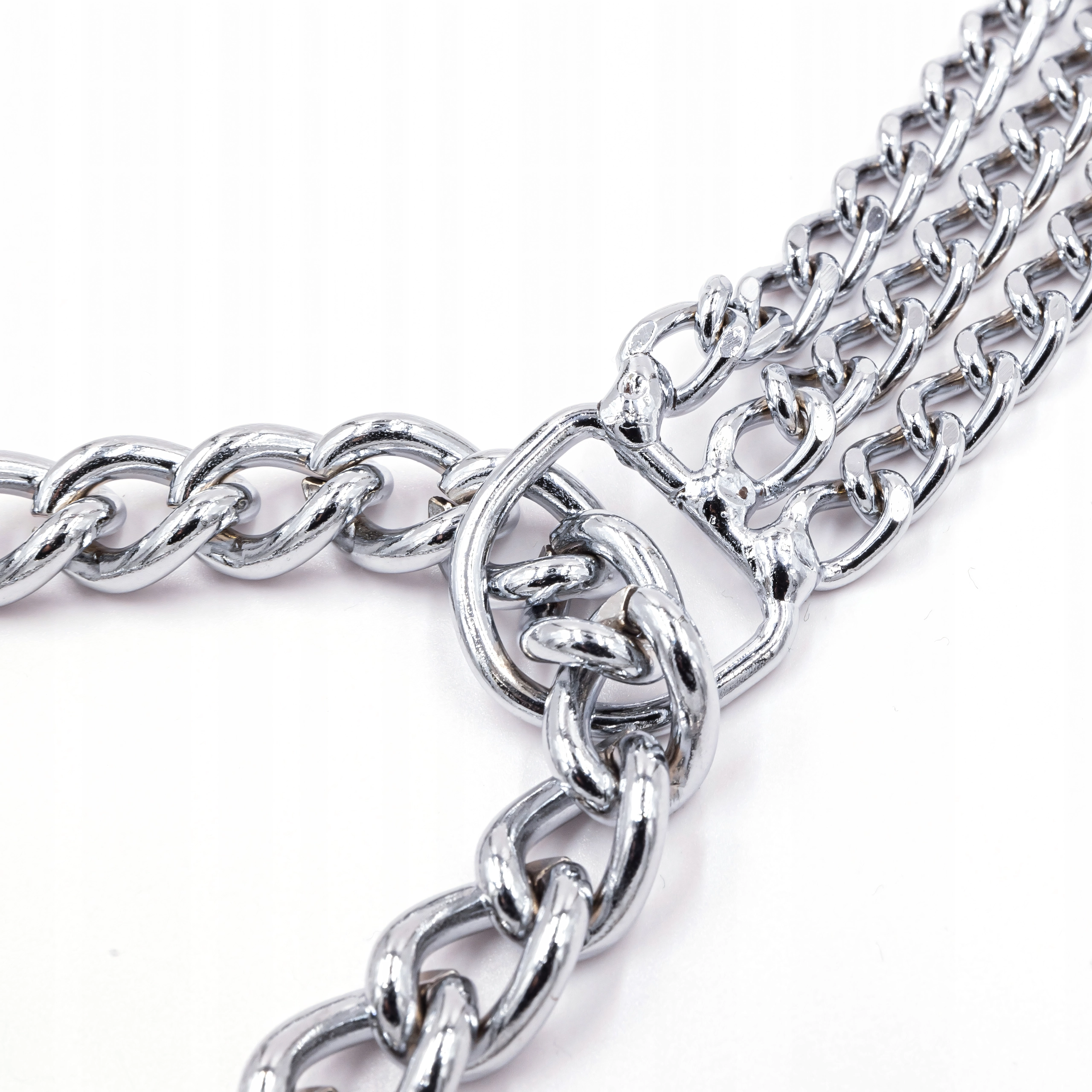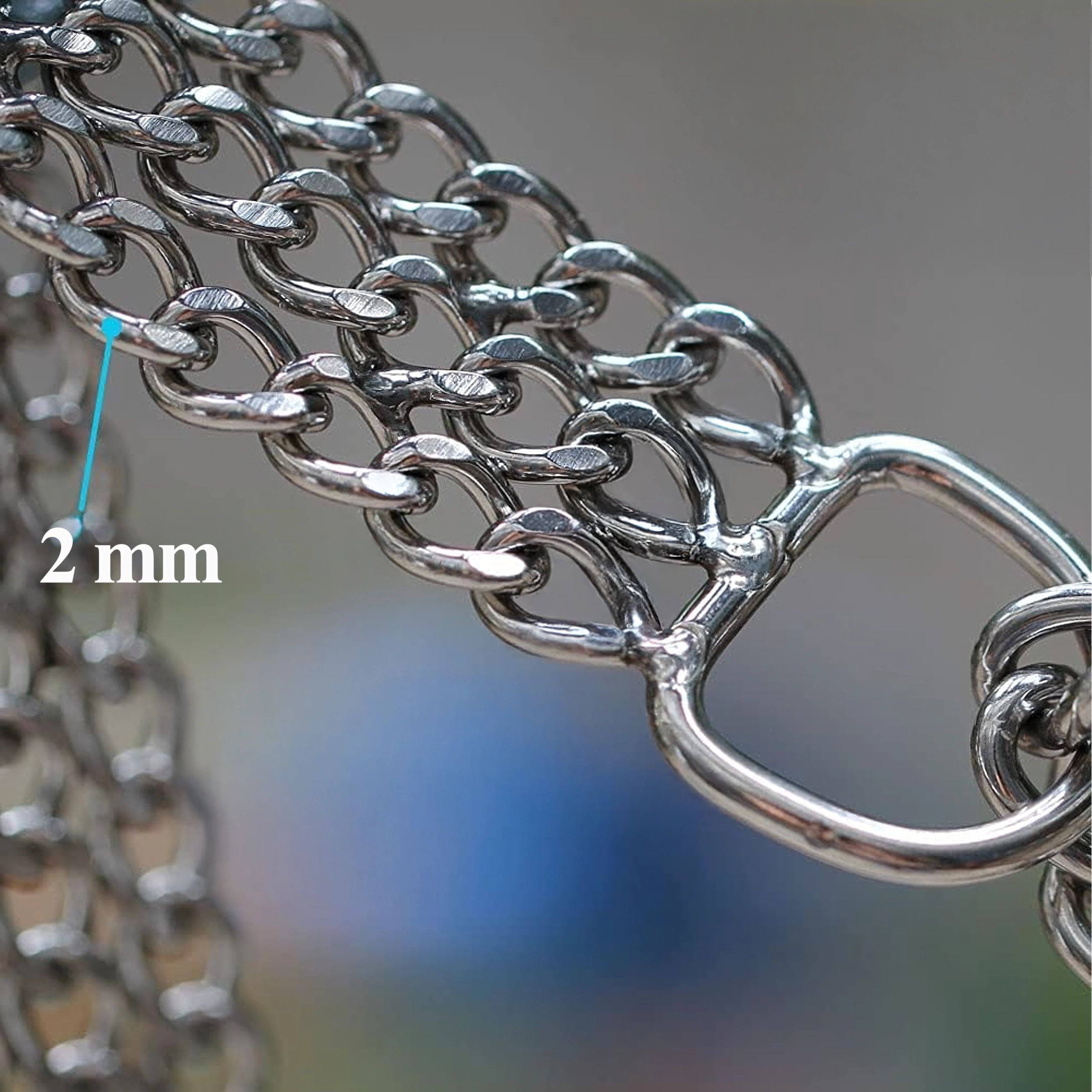 Šis veržiamasis grandininis antkaklis pagamintas iš kokybiško chromuoto plieno, kuris pasižymi didele tvirtybe, atsparumu korozijai ir lygiu paviršiumi šuns patogumui. Triguba grandinė tolygiai paskirsto spaudimą ir užtikrina tikslią, jautrią kontrolę treniruočių metu.