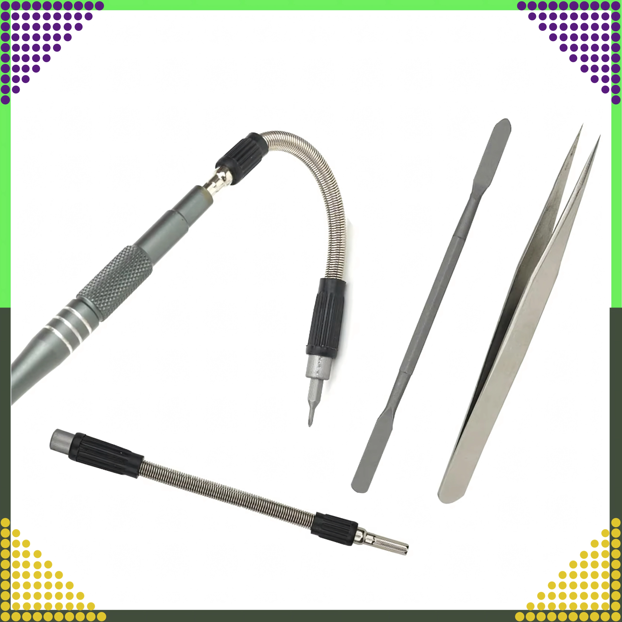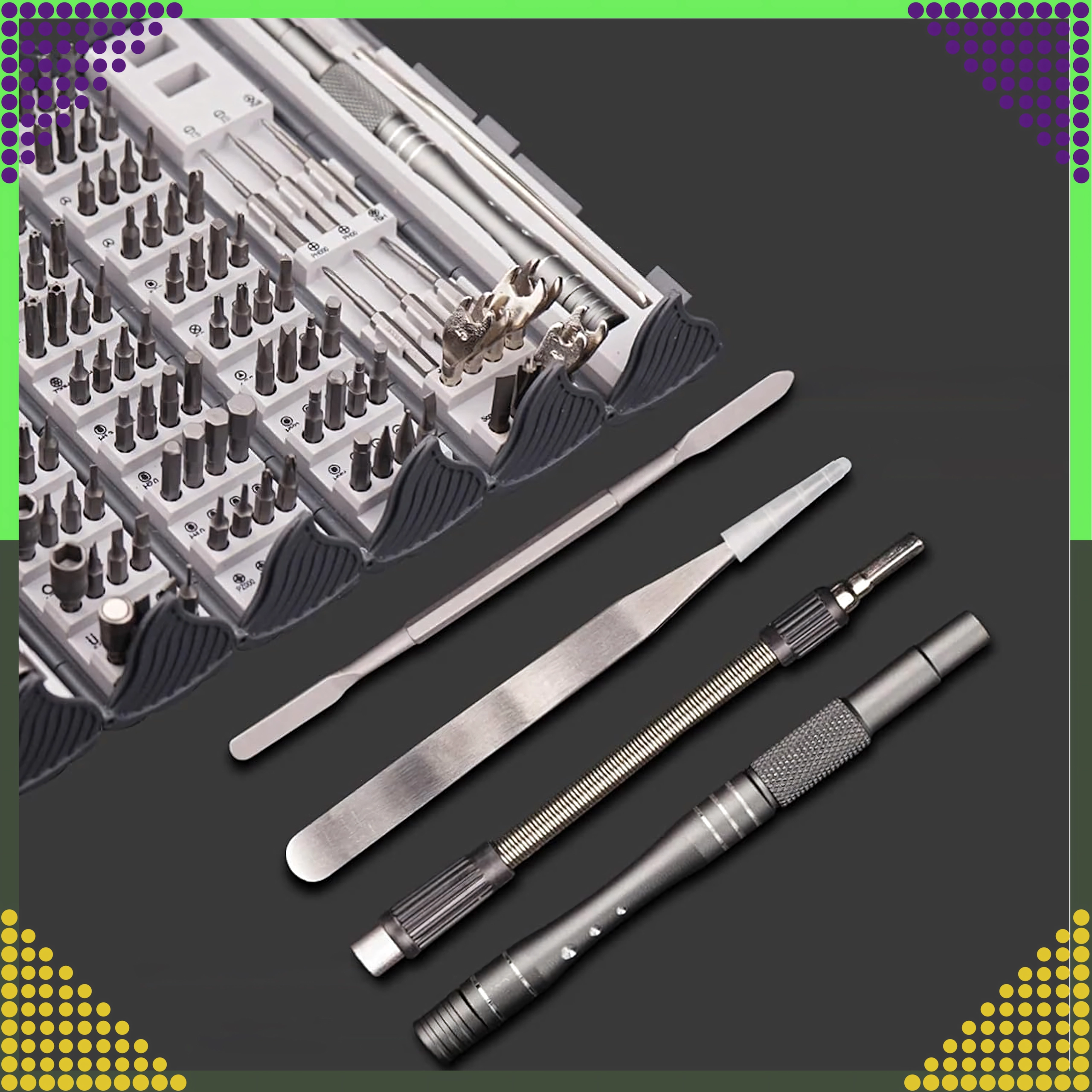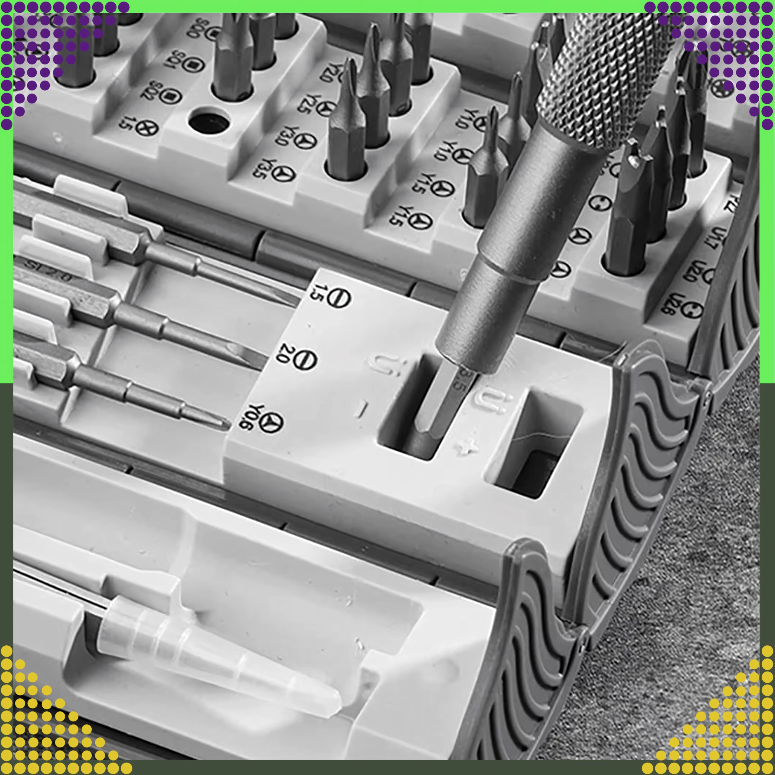 Platus antgalių ir priedų pasirinkimas apima daugumą užduočių, atliekamų elektronikos servise (telefonai, nešiojamieji kompiuteriai, žaidimų konsolės), smulkiosiose surinkimo darbose (laikrodžiai, akiniai, fotoaparatai) ir buitiniame meistravime. Komplekte yra praktiškas dėklas tvarkingam laikymui ir patogiam transportavimui.