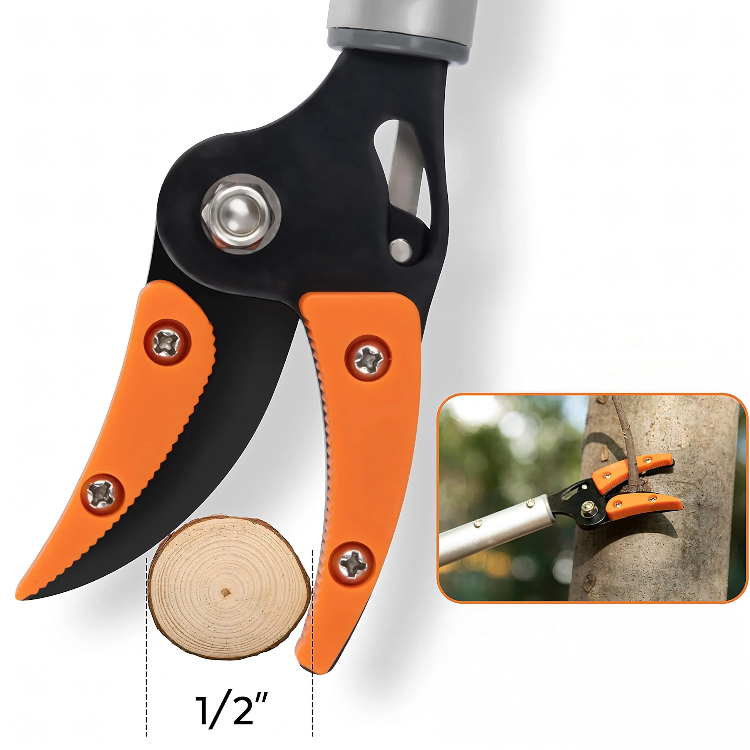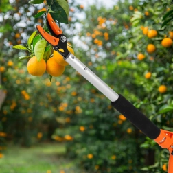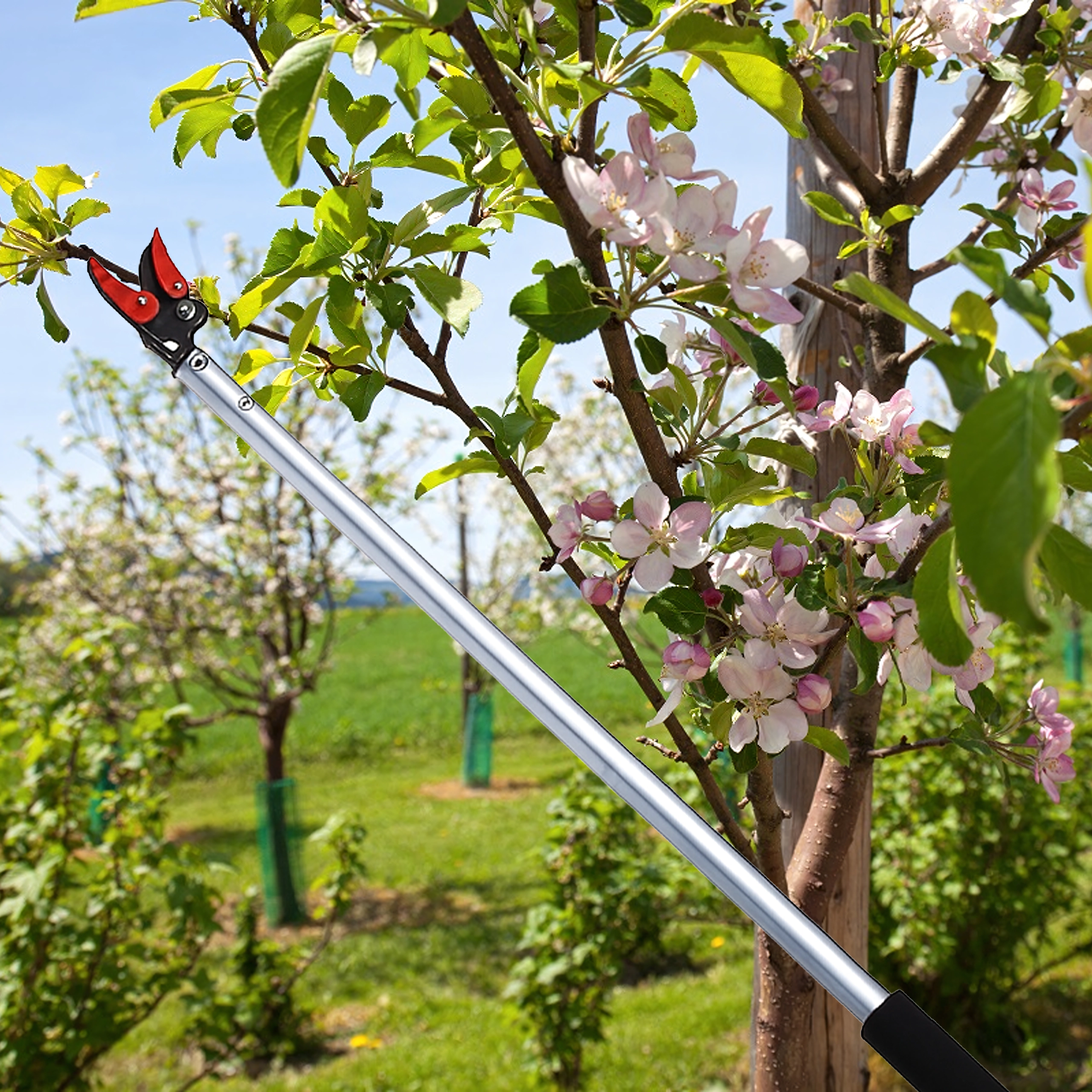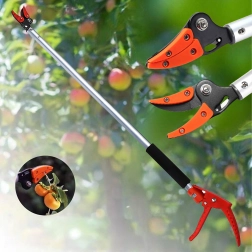 Šis ilgas žirklinis genėtuvas sukurtas patogiam šakų kirpimui, krūmų formavimui ir saugiam vaisių rinkimui iš aukštesnių vietų. Dėl lengvo aliuminio korpuso įrankį lengva valdyti, o aštrus, patvarus ašmuo užtikrina švarų ir tikslų pjūvį.