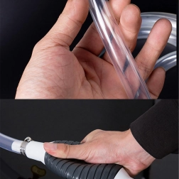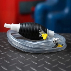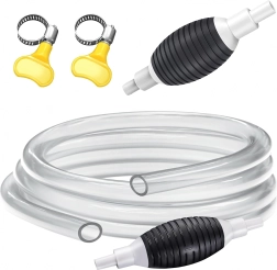 Rankinė pompa su spaudžiamu balionėliu ir permatoma žarna – patikras sprendimas skysčiams perpilti tarp talpų, iš bakų ar akvariumų. Permatoma žarna leidžia vizualiai stebėti srautą, o integruotas atbulinis vožtuvas apsaugo nuo nepageidaujamo skysčio grįžimo.