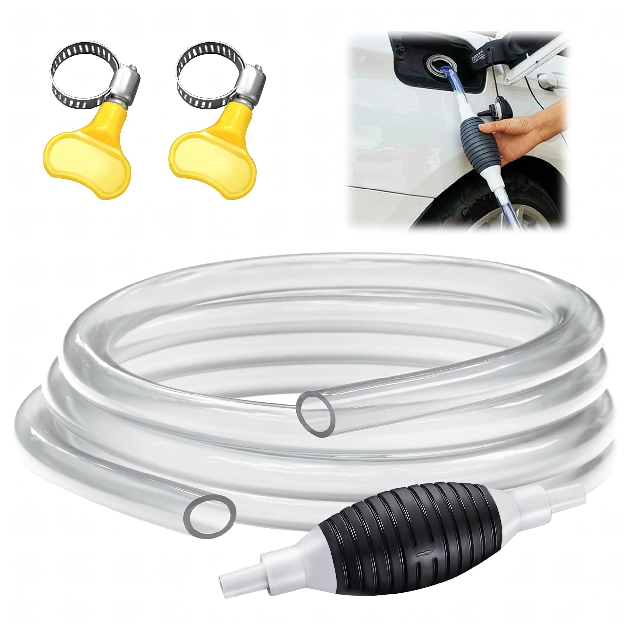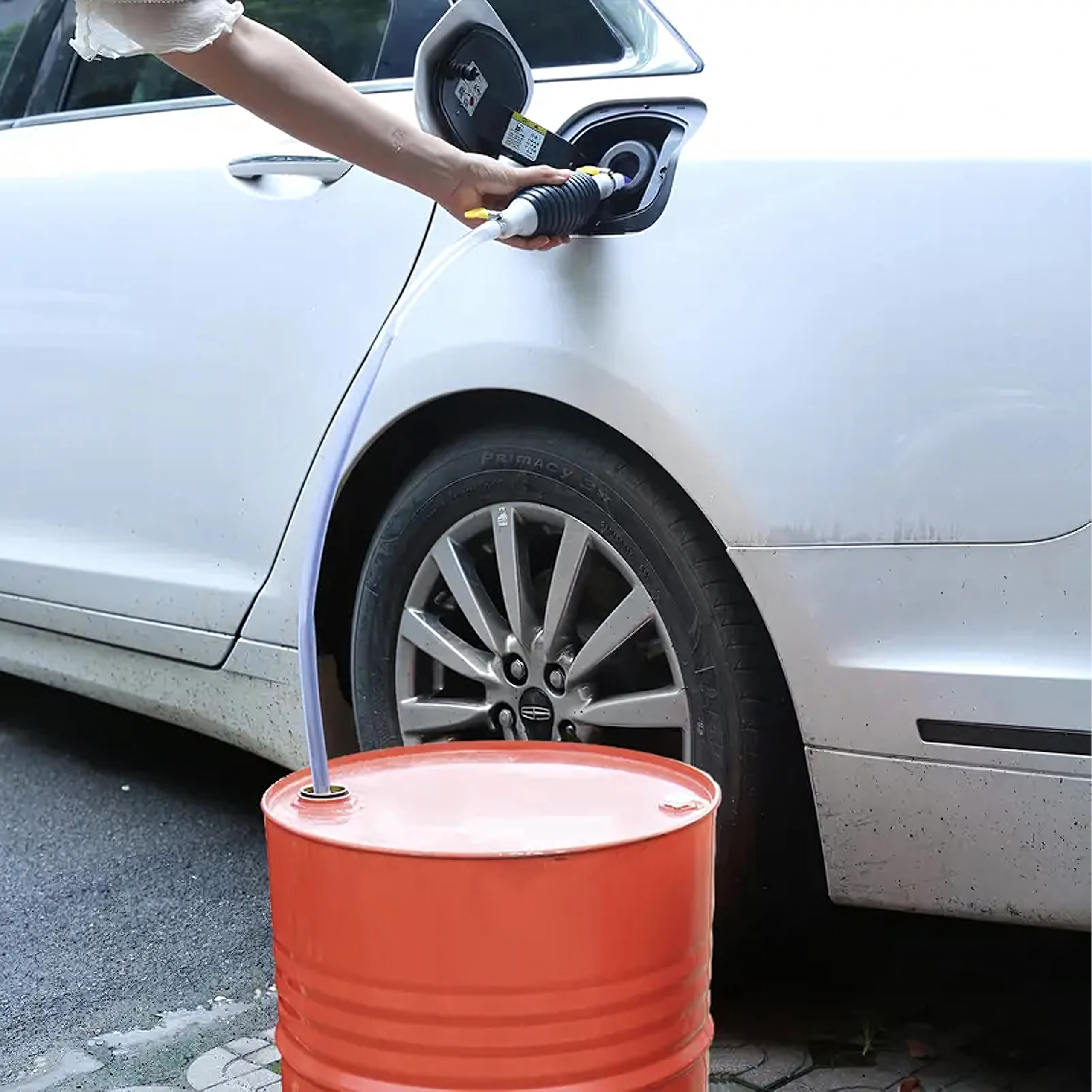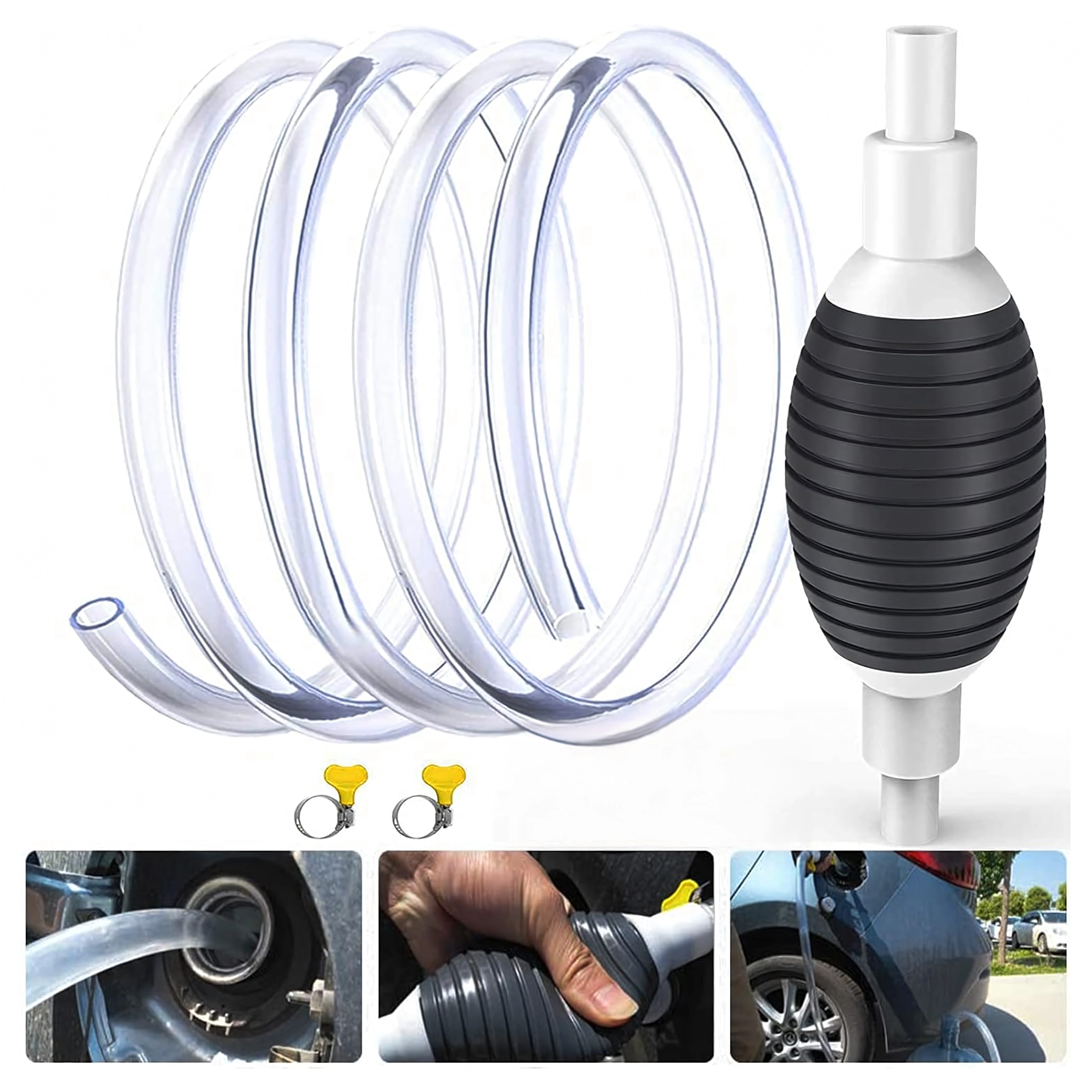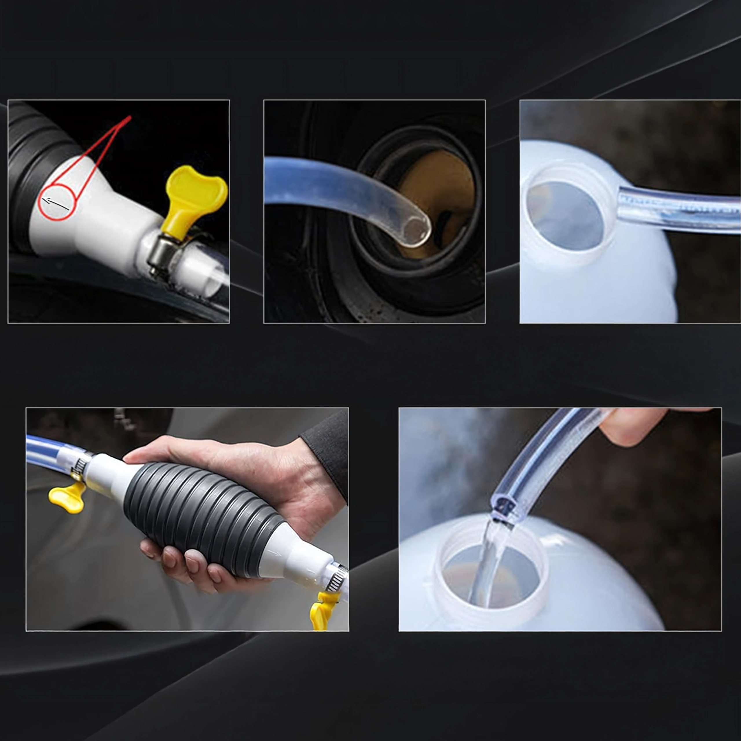 Spaudžiamas balionėlis akimirksniu sukuria vakuumą ir paleidžia srautą be išsiliejimo. Permatoma žarna leidžia kontroliuoti tekėjimą ir išvengti perpildymo.