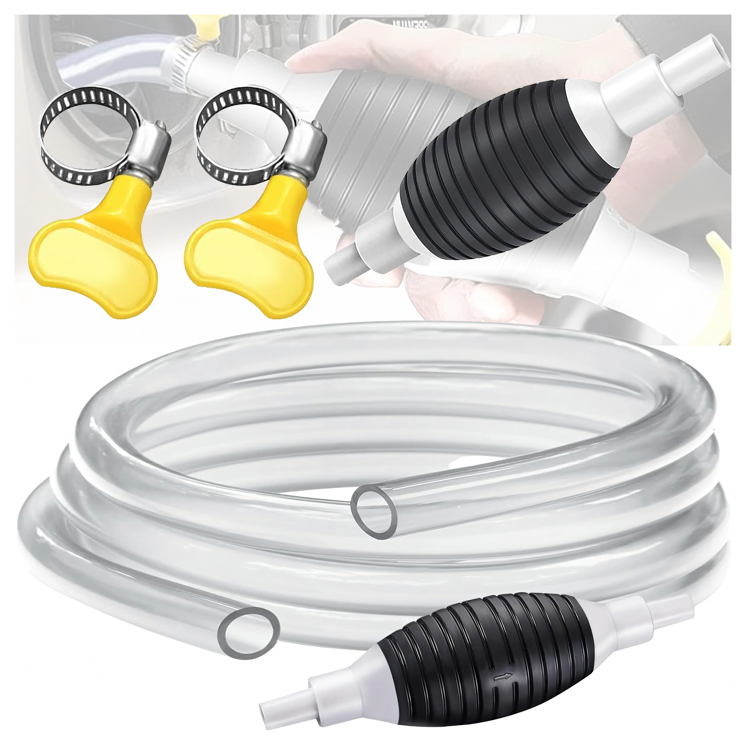 Praktiška rankinė sifoninė pompa su 1 m ilgio žarna leidžia greitai ir saugiai siurbti kurą, alyvą, dyzeliną, vandenį ir kitas skysčių rūšis. Dėl atbulinio vožtuvo neleidžia skysčiui tekėti atgal ir palengvina srauto paleidimą. Ji kompaktiška, patvari ir lengvai valdoma – idealiai tinka namams, garažui ir dirbtuvėms.
