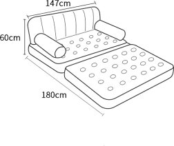 Atraskite lanksčią sėdėjimo ir miego sprendimų kombinaciją viename. Ši pripučiama išskleidžiama sofa 5‑in‑1 akimirksniu virsta iš patogios sofos į erdvią lovą dviem. Minkštas, kamerinis paviršius mažina spaudimo taškus ir suteikia atramą tiek sėdint, tiek miegant.