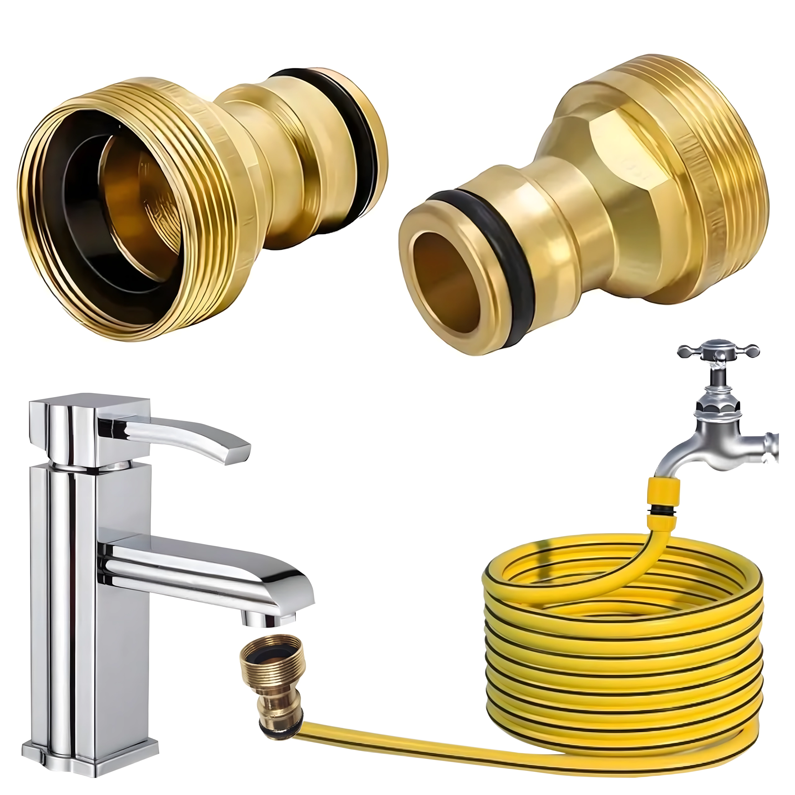 Universalus žalvarinis G3/4 adapteris leidžia greitai prijungti sodo žarną prie čiaupo be įrankių. Dėl patvarios žalvarinės konstrukcijos ir keičiamos sandarinimo O-žiedo užtikrina patikimą, sandarų ir nevarvantį sujungimą laistymui, automobilio plovimui ir namų aplinkos tvarkymui.