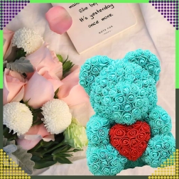 - Dekoratyvinis meškiukas iš putplasčio rožių