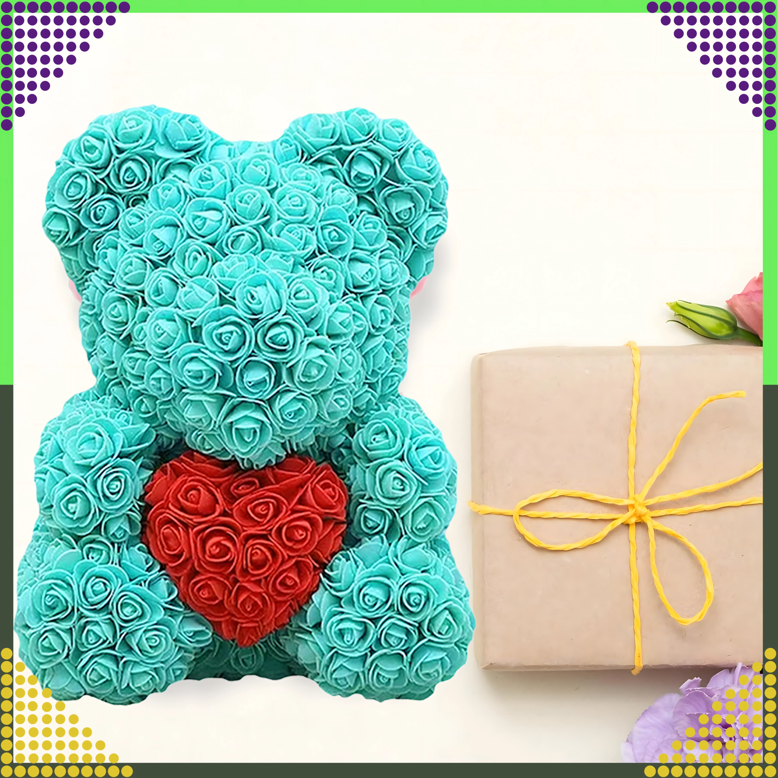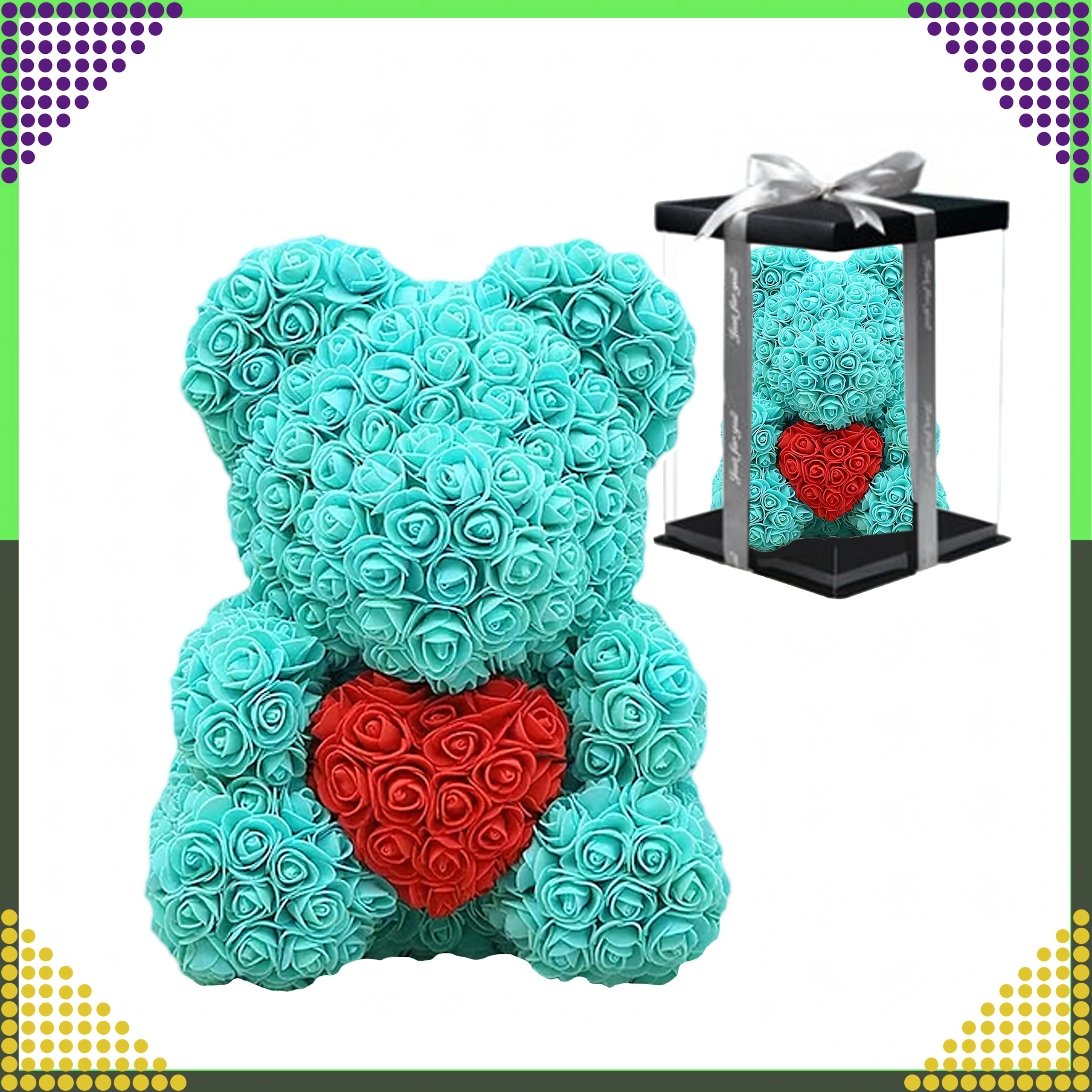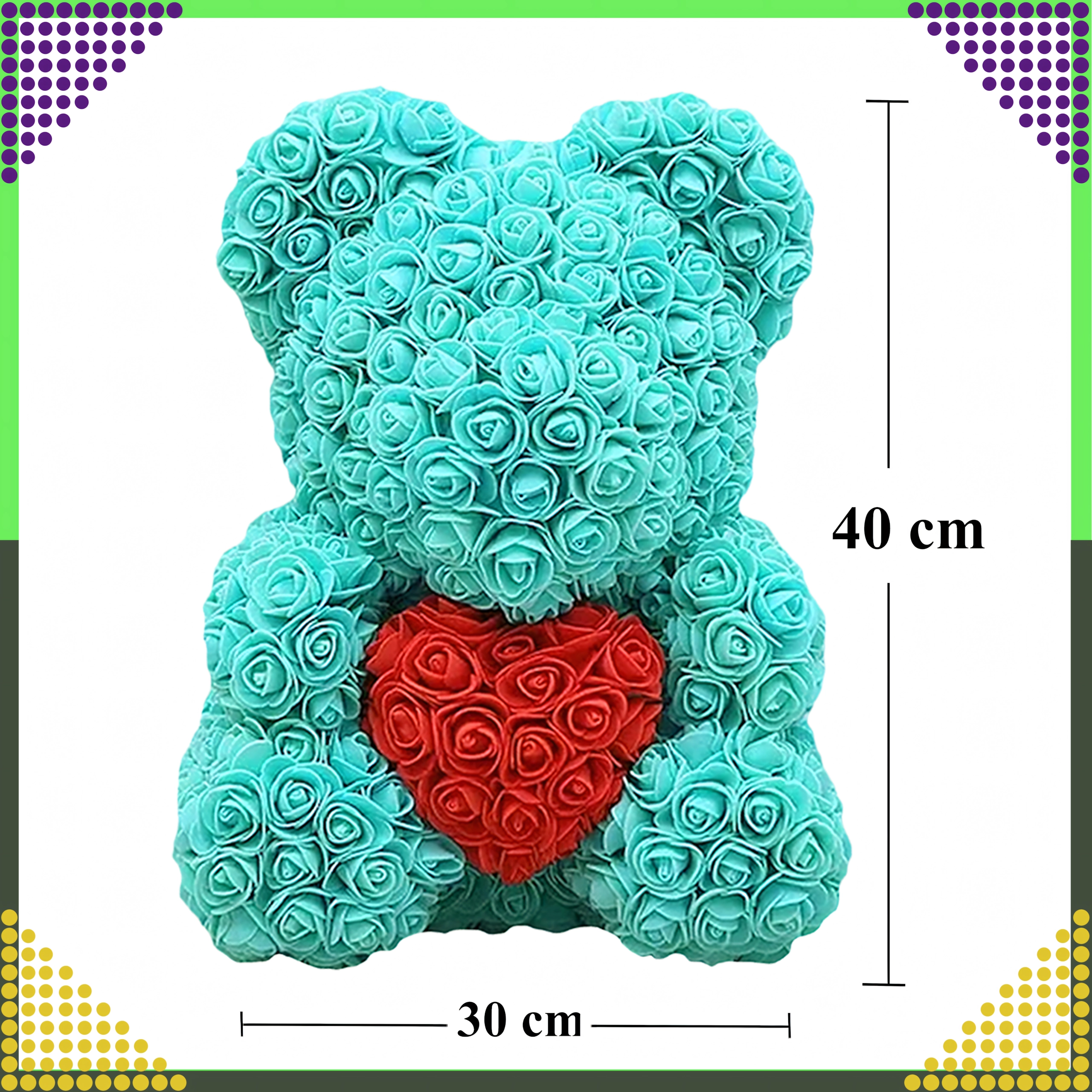 Elegantiškas 40 cm aukščio rožių meškiukas – tai nepamirštama romantiška dovana partnerei, mamai ar močiutei. Jis pagamintas iš švelnių putplasčio rožių, kurios niekada nevysta, todėl puikiai tinka kaip ilgalaikė dekoracija ir meilės simbolis Valentino dienai bei kitoms ypatingoms progoms.