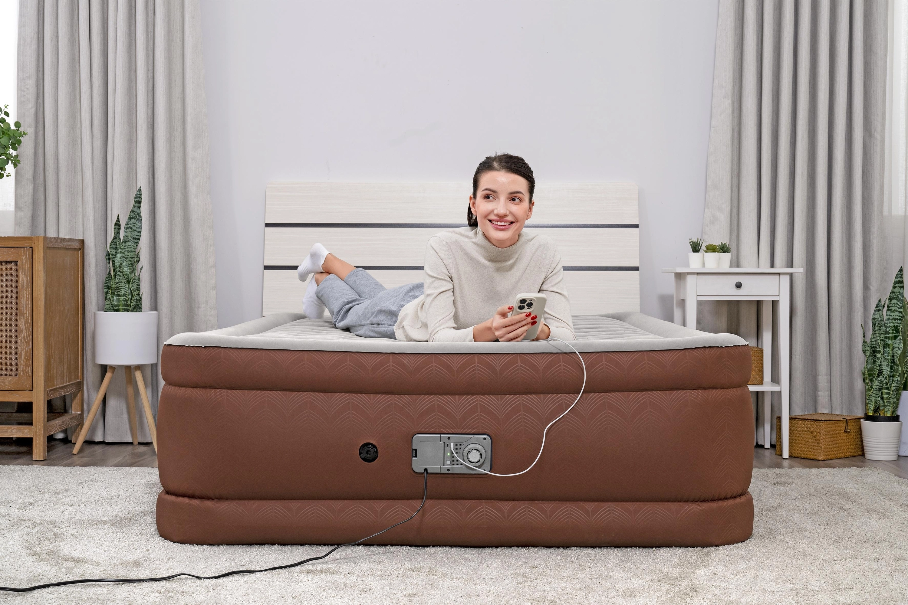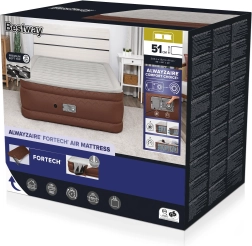 Pripučiama lova BESTWAY ALWAYZAIRE Fortech, dydis 203 × 152 × 51 cm, užtikrina maksimalų komfortą namuose ir kelionėse. Dėl technologijos AlwayzAire ji pati automatiškai palaiko idealų slėgį visą naktį, turi integruotą elektrinį siurblį, kuris pripučia maždaug per 3 minutes, malonų veliūrinį paviršių ir padidintą 51 cm aukštį patogiam atsikėlimui. Patvari Fortech (PVC + poliesteris) konstrukcija užtikrina ilgaamžiškumą ir stabilumą iki 350 kg.