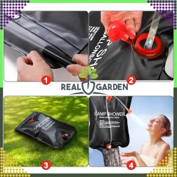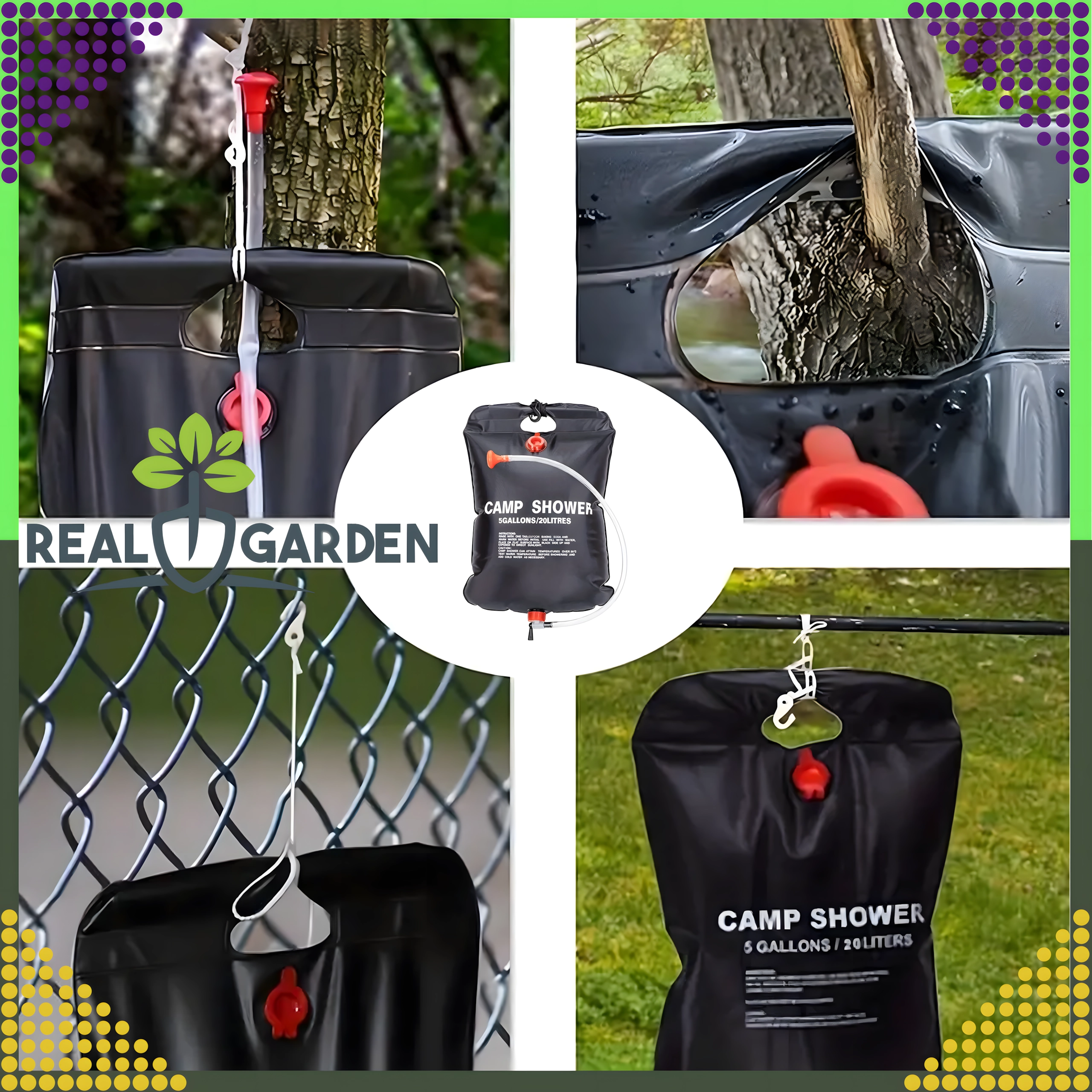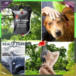 Dušas aprūpintas tvirtu pakabinimo laikikliu ir patogia dušo galvute, todėl patogiai naudosite jį kempinge, prie vandens ar sode.