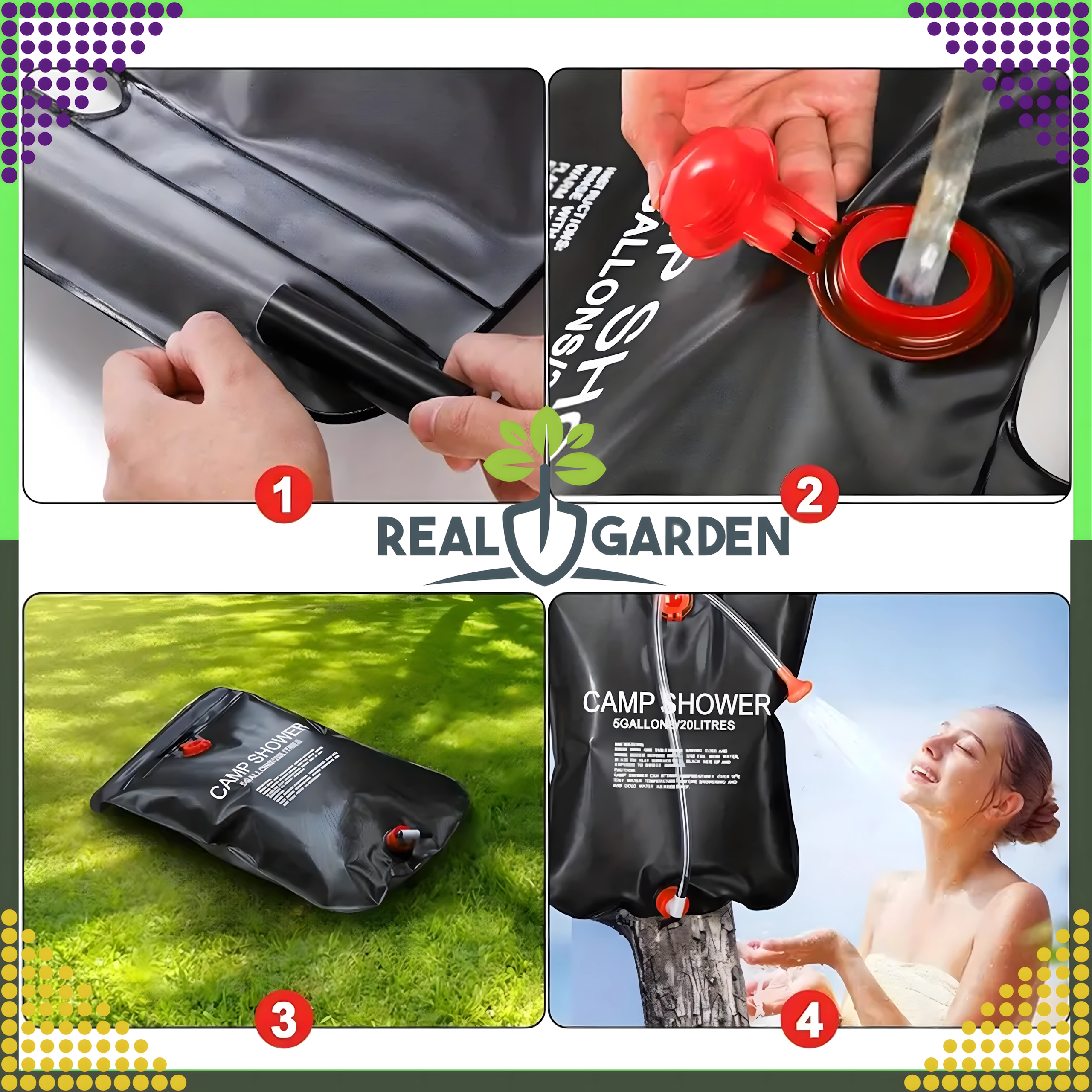 Mėgaukitės šiltu dušu net toli nuo civilizacijos. Saulės kempingo dušas 20 l naudoja saulės energiją vandeniui pašildyti iki 48 °C, todėl po visos dienos kelyje suteikia gaivinantį komfortą. Dėl kompaktiškos konstrukcijos jį lengvai susidėsite į kuprinę ar automobilį ir greitai paruošite naudojimui.