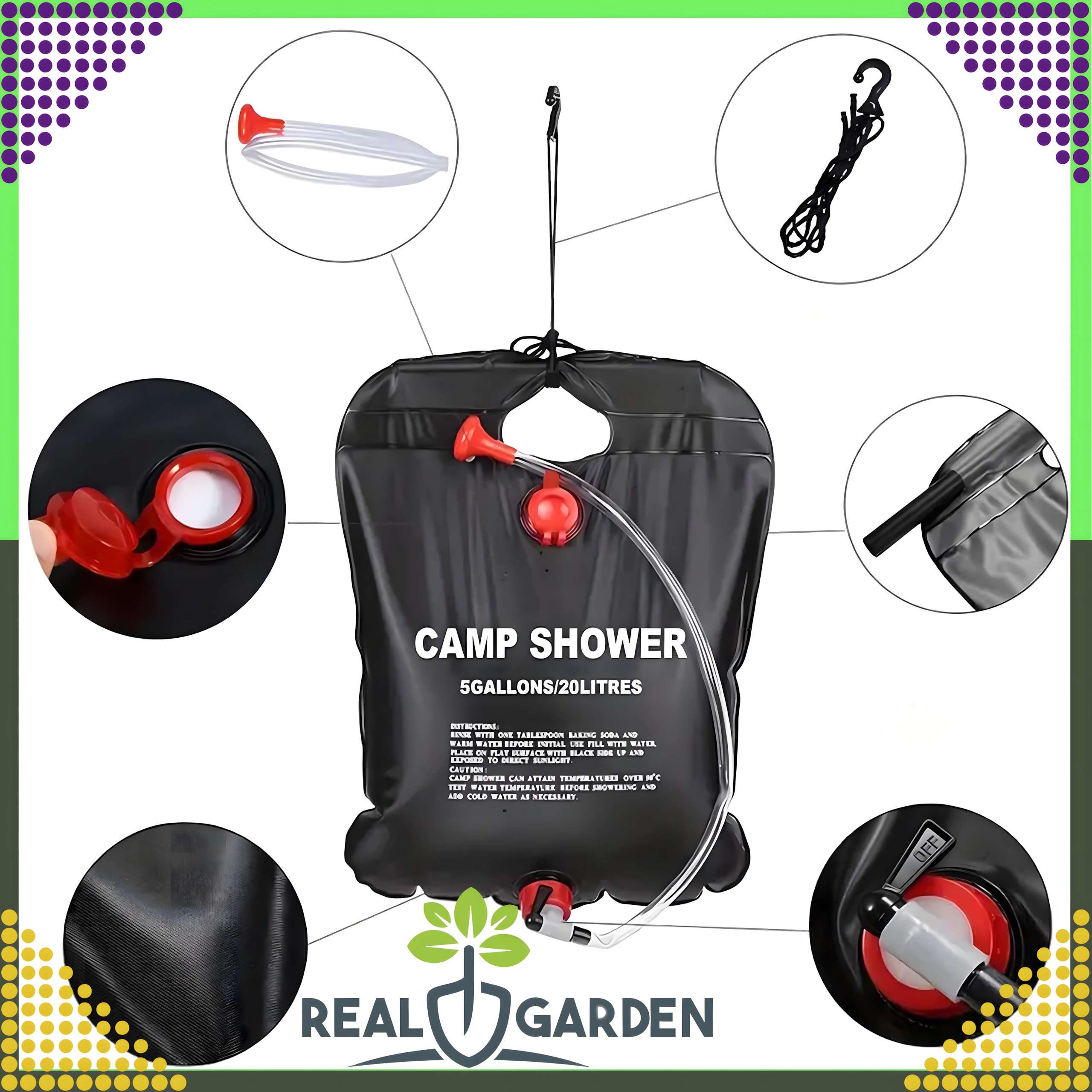 Praktiškas saulės dušas, kurio talpa 20 l, idealiai tinka kempingui, paplūdimiui ir aktyviam laisvalaikiui. Dėl šildymo saule iki 48 °C mėgausitės malonia vandens srove bet kur. Kompaktiškas sudėjus, su pakabinimo laikikliu ir dušo galvute komplekte – patogumui ir higienai kelyje.