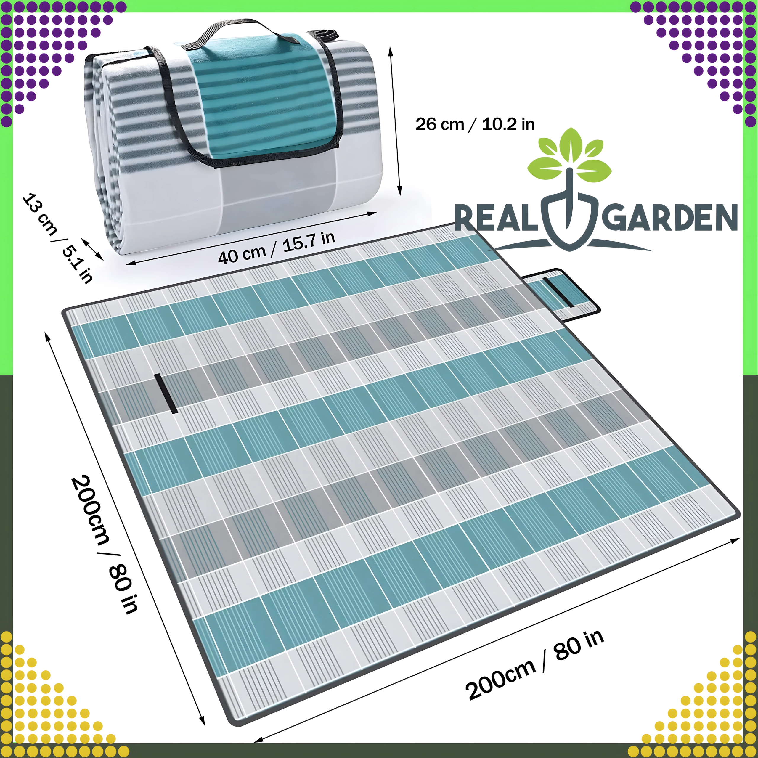Ieškote erdvaus ir patogaus pledo poilsiui lauke? Šis sulankstomas paplūdimio ir pikniko pledas 200 × 200 cm suteikia pakankamai vietos keliems žmonėms, turi minkštą paviršių maloniam sėdėjimui ir patikimai saugo nuo drėgmės nuo žemės. Dėl sumanios 3 sluoksnių konstrukcijos jis malonus liesti, slopina nelygumus ir nepraleidžia vandens.