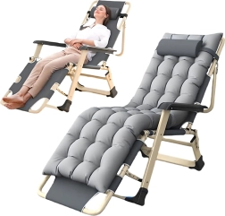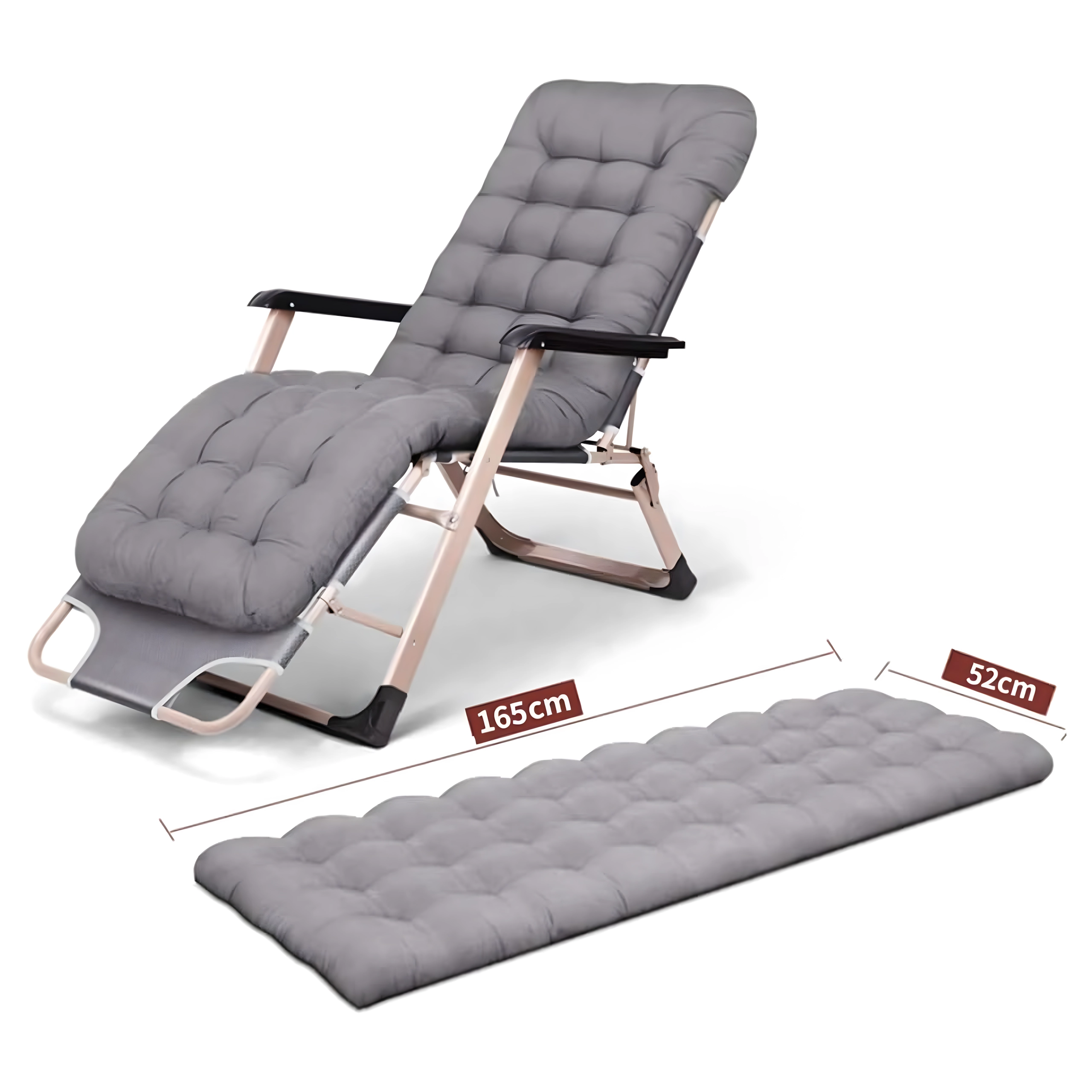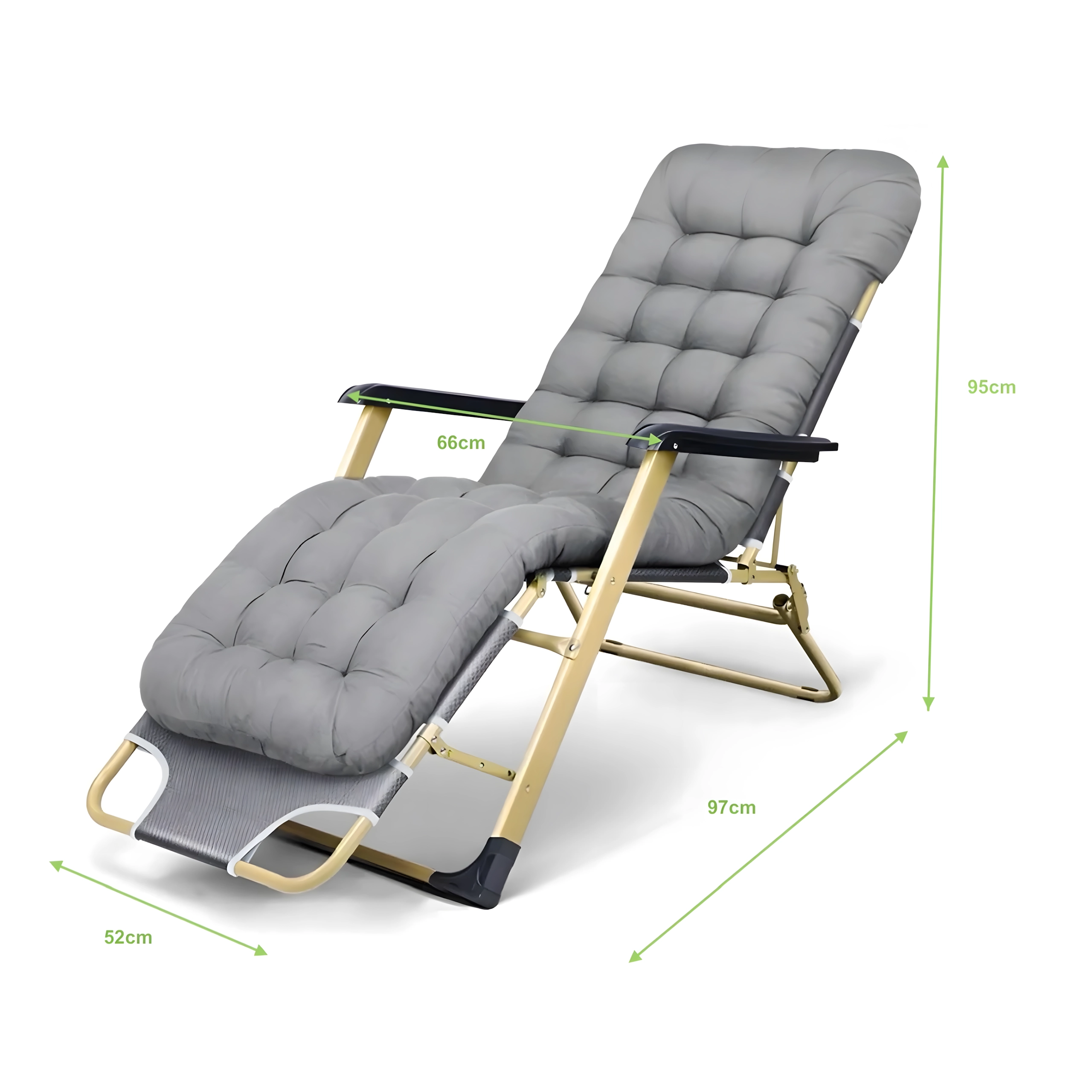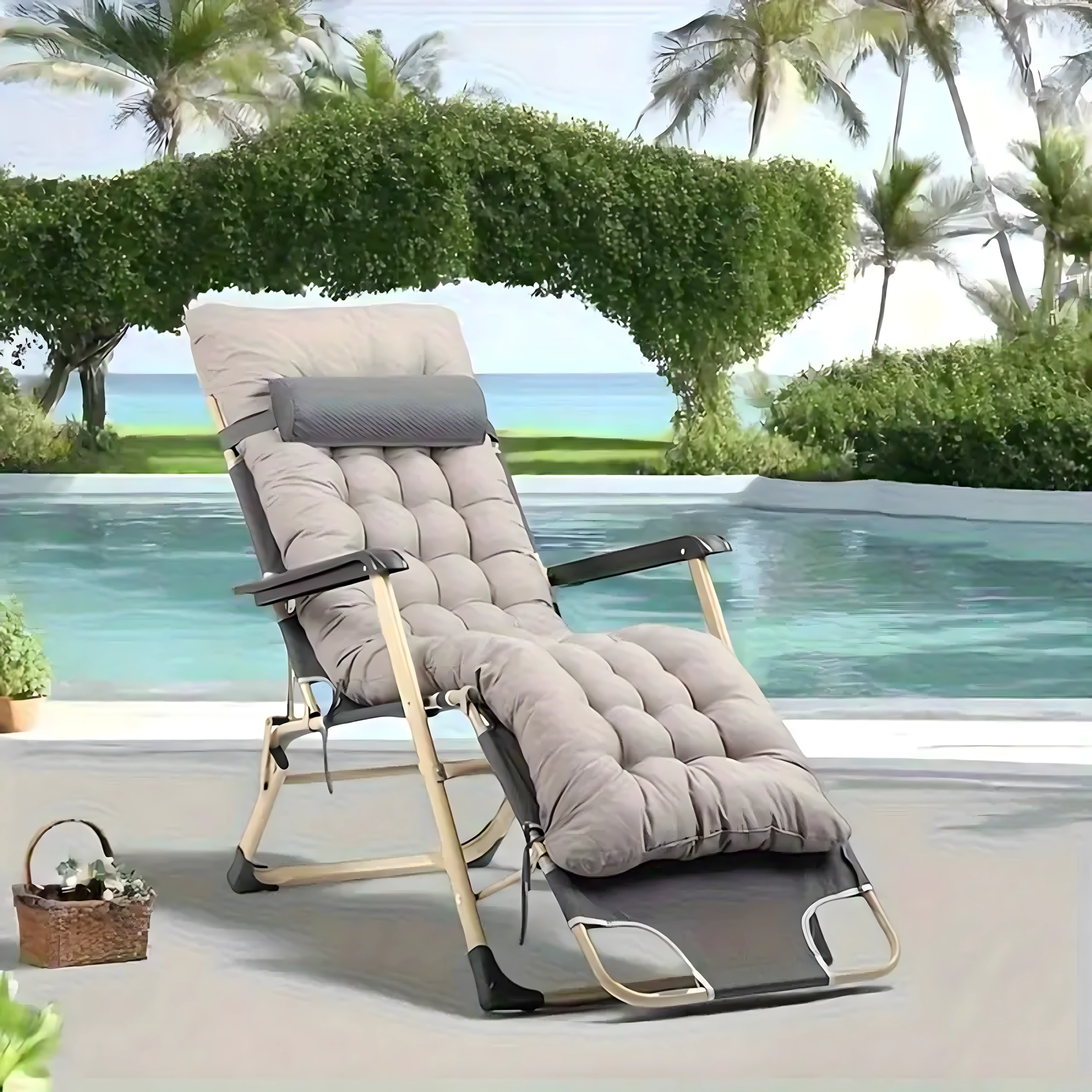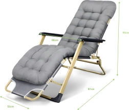 Minkšta, dygsniuota sėdimoji dalis su galvos pagalve ir tvirta metalinė konstrukcija su porankiais užtikrina komfortą ir stabilumą naudojant lauke.