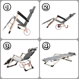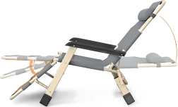 Dėl reguliuojamo nugaros ir kojų atlošo lengvai rasite idealią padėtį skaitymui, deginimuisi ar trumpam miegui. Porankiai ir pailginta kojų atrama didina komfortą, o nešiojama sulankstoma konstrukcija palengvina laikymą ir transportą.