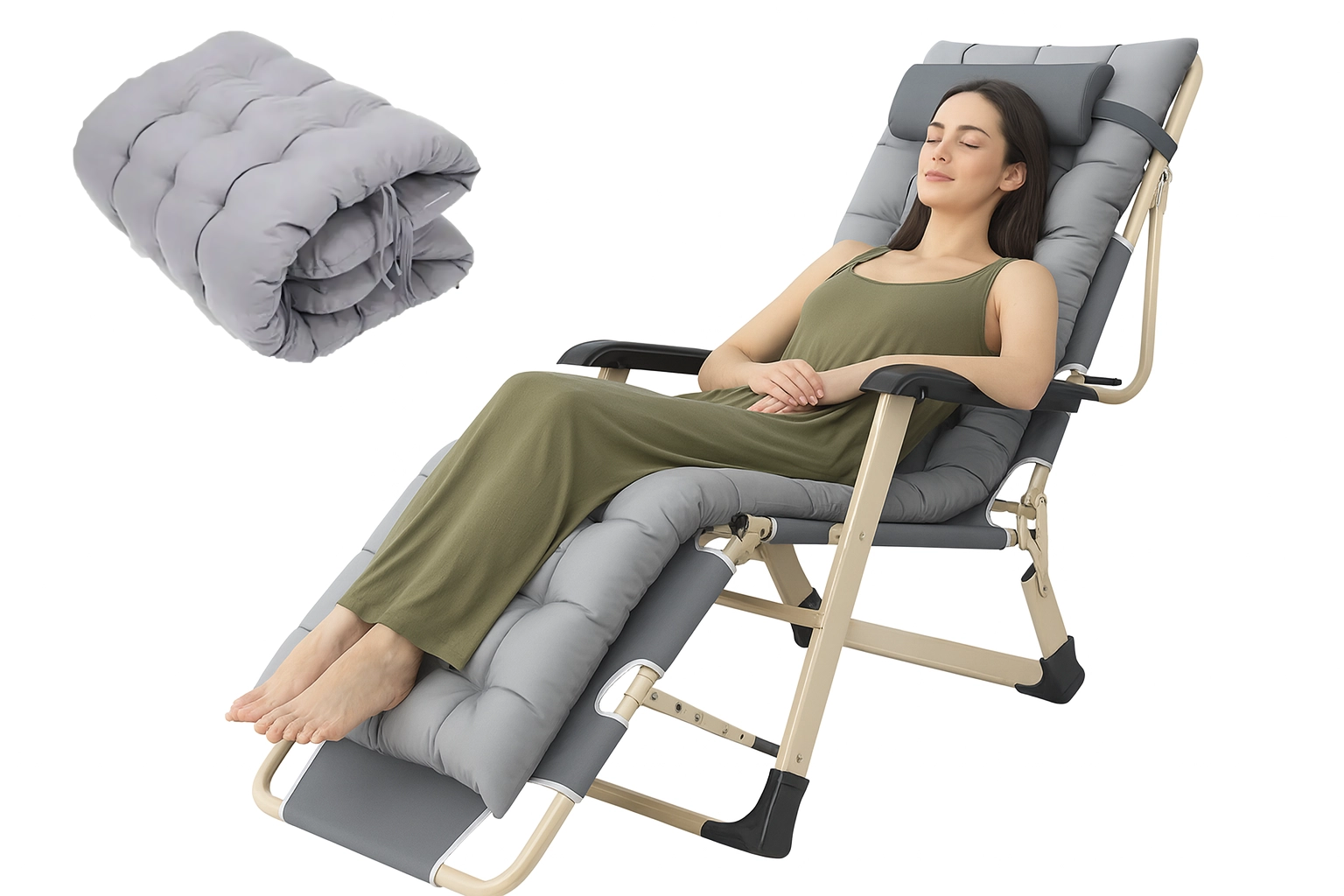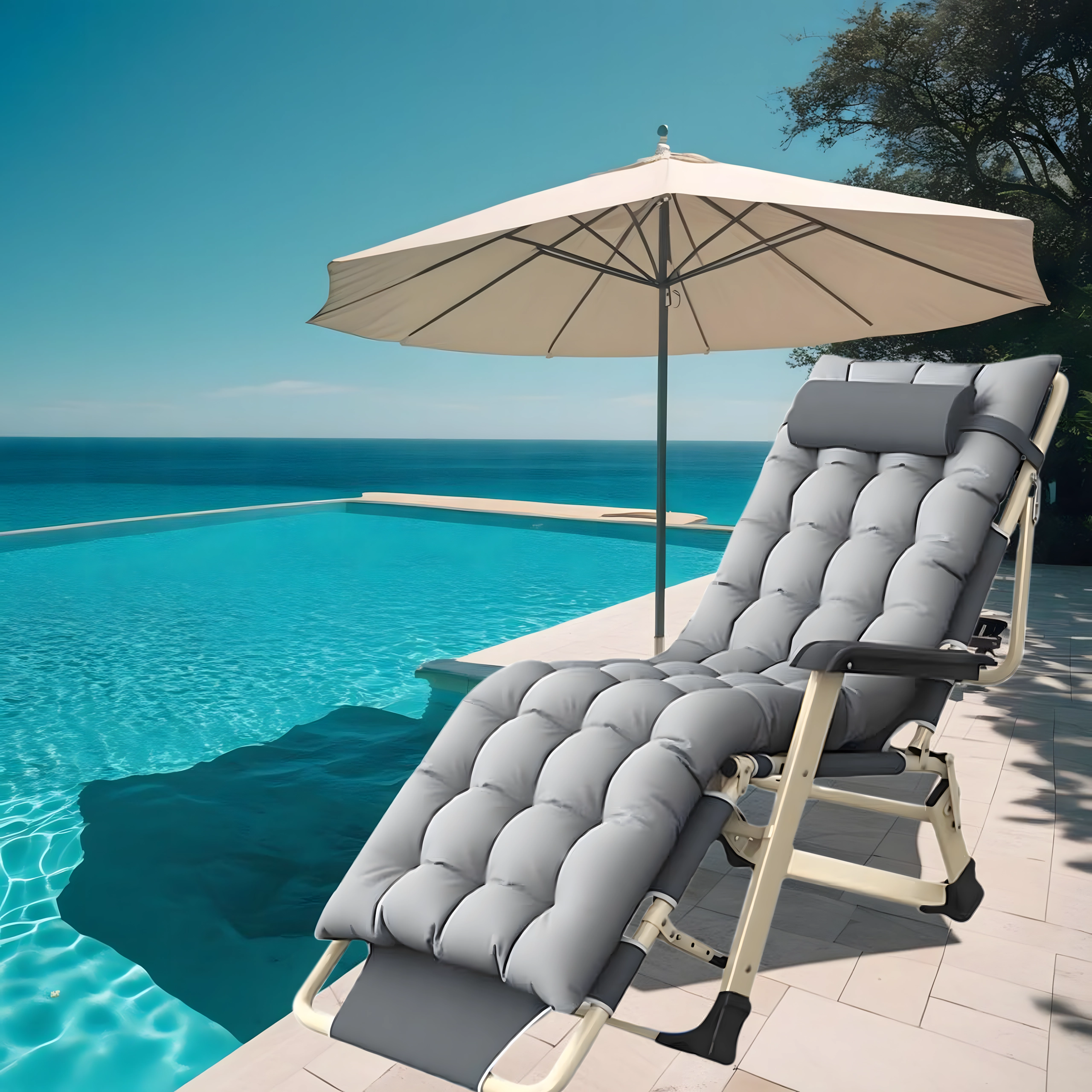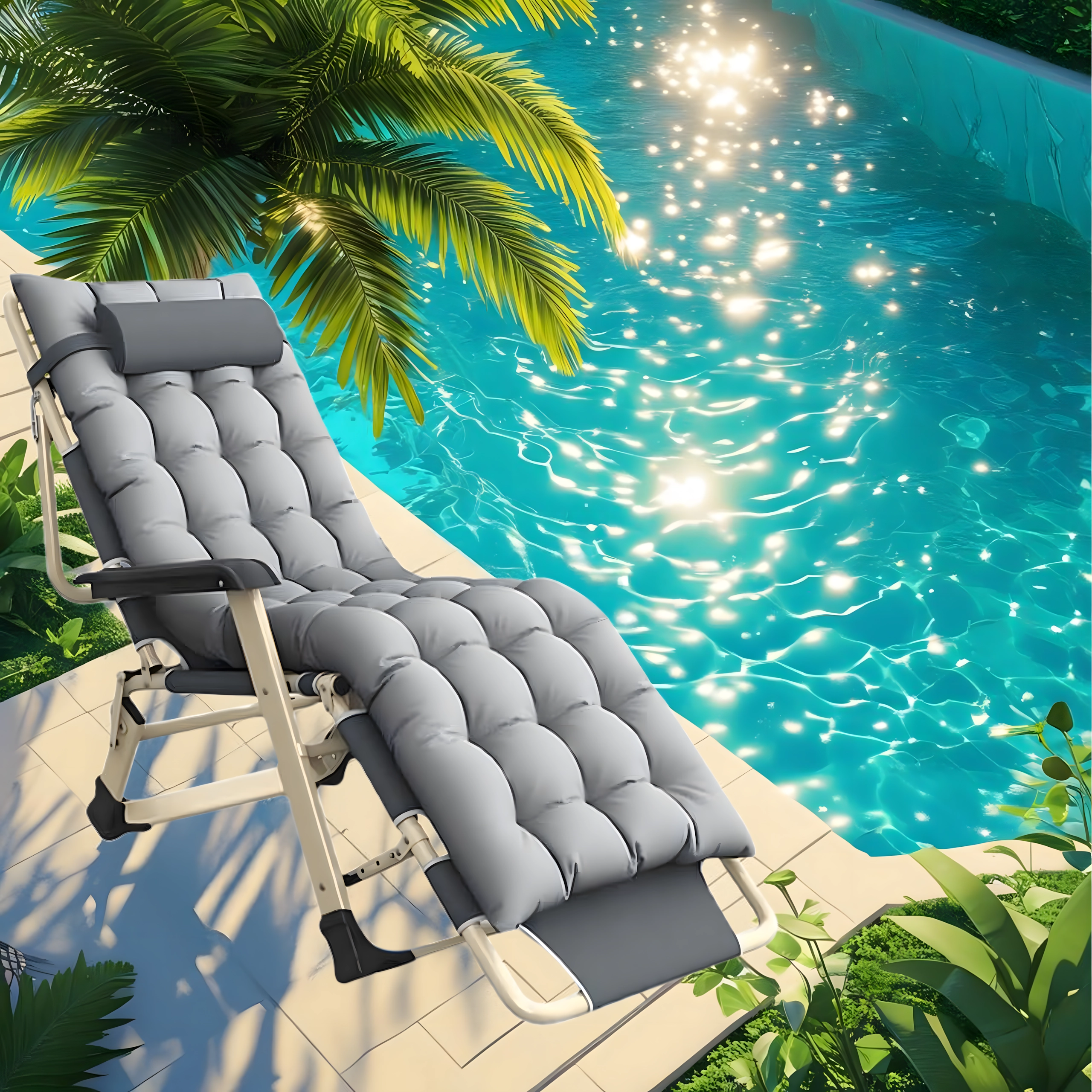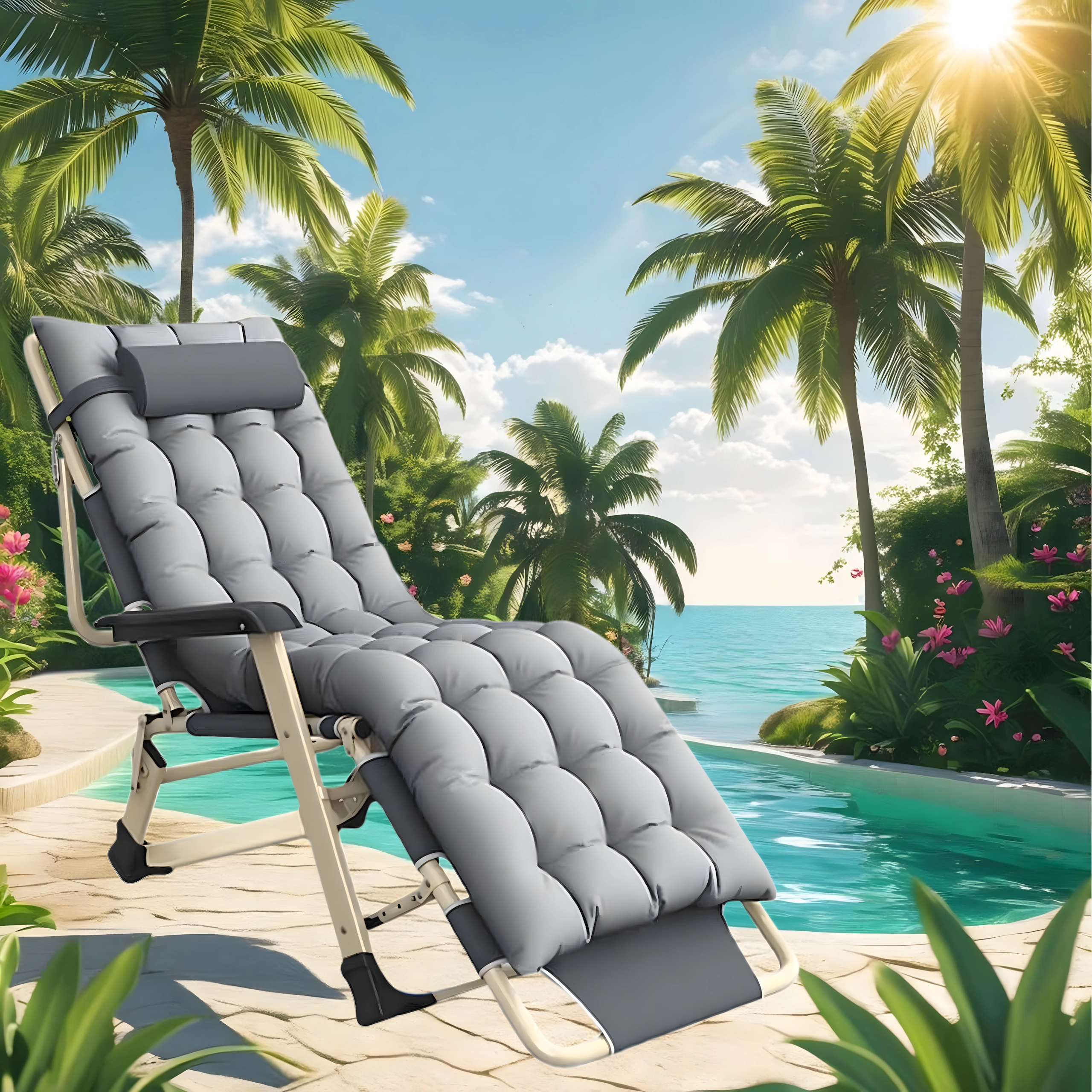 Praktiškas ir stilingas gultas jūsų poilsiui. Storas paminkštinimas su nuimama pagalvėle suteikia malonią galvos ir nugaros atramą, o stabili sulankstoma konstrukcija užtikrina saugų ir patogų gulėjimą namuose ir lauke. Medžiagos yra lengvai prižiūrimos ir atsparios įprastoms oro sąlygoms.