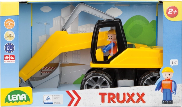 Plastikinis ekskavatorius LENA TRUXX suteikia vaikams tikrovišką statybų pramogą. Dėl tvirtos konstrukcijos ir atsparaus plastiko lengvai tinka žaidimams namuose ir lauke. Valdymas pritaikytas mažoms vaikų rankoms – vaikai intuityviai kelia ir leidžia judinamą strėlę ir kaušą, suka antstatą ir tyrinėja žaidimo galimybes.