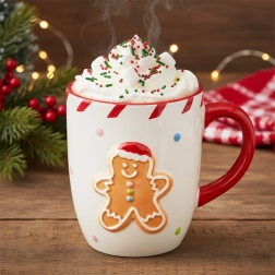 Žavus kalėdinis puodelis su meduolinio žmogeliuko motyvu ir kontrastine raudona ąsele – puikus pasirinkimas kasdieniam arbatos, kavos ar kakavos gėrimui. Talpa 330 ml, patogiai suformuota ąselė ir kokybiška keramika, kuri gerai išlaiko šilumą. Dėl šventinio dizaino tai puiki dovana žiemos sezonui ir stilingas aksesuaras karštiems gėrimams vėsiems vakarams.
