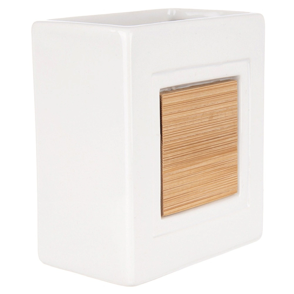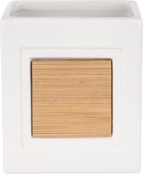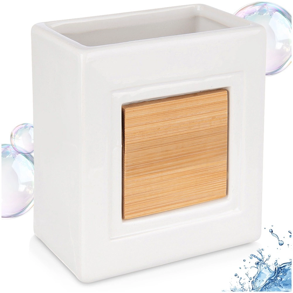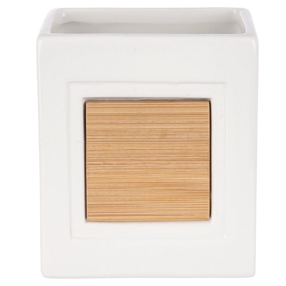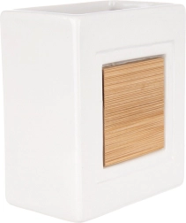 Šis stilingas puodelis idealiai tinka bet kuriai voniai. Jis derina patvarią dolomito keramiką su natūraliu bambuku, todėl atrodo švariai ir kartu jaukiai. Atvira viršutinė dalis leidžia patogiai laikyti šepetėlius, pastą ir kosmetinius teptukus.