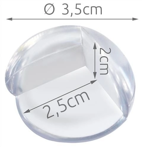Apsaugokite savo šeimą nuo netikėtų smūgių į aštrius kampus. Permatomi silikoniniai kampų gaubteliai lengvai priklijuojami naudojant stiprius dvipusius lipnius lipdukus ir tvirtai laikosi ant daugumos įprastų baldų tipų. Dėl skaidraus dizaino jie susilieja su paviršiumi ir netrikdo interjero išvaizdos.