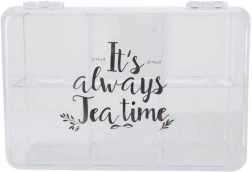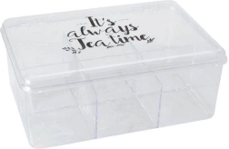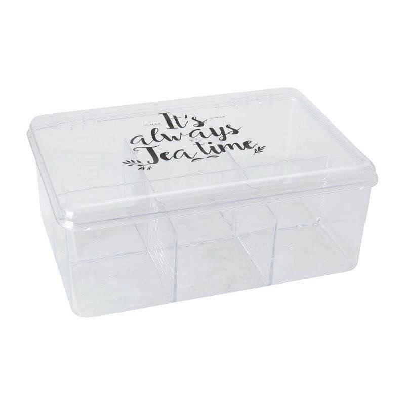 Skaidrus korpusas suteikia akimirksnį matomumą, tad visada žinosite, ką reikia papildyti. Dėžutę lengva valyti, ji tinka namams, biurui ir kelionėms – pasiimkite mėgstamas arbatas į atostogas, stovyklavietę ar pikniką.
