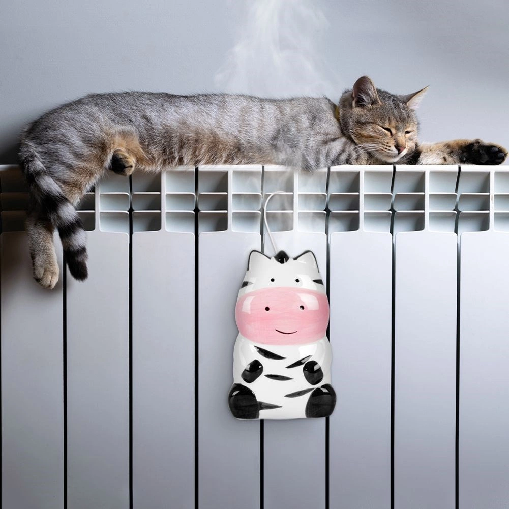 Keraminis oro drėkintuvas radiatoriui, zebro formos, yra praktiškas namų aksesuaras, kuris natūraliai padidina oro drėgmę šildymo sezono metu. Vanduo garuoja nuo radiatoriaus skleidžiamos šilumos, todėl nereikia elektros ar sudėtingų nustatymų.