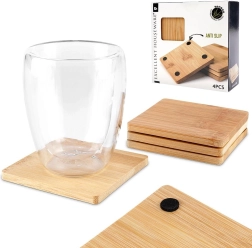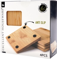 Stilingas keturių kvadratinių bambukinio medžio padėkliukų rinkinys saugo jūsų stalą nuo karščio, drėgmės ir įbrėžimų. Padėkliukų matmenys 9,7 × 10 × 0,7 cm, jie patvarūs, ekologiški ir dėl neslystančių pamušalų stabiliai laikosi vietoje. Puikiai tinka karštiems ir šaltiems gėrimams bei kaip elegantiška stalo dekoracija.