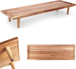 Elegantiška akacijos medienos lenta ant stabilių kojelių stilingam serviravimui ir pjaustymui. Siūlo pakeltą konstrukciją patogiam paėmimui, apsauginį paaukštintą kraštą nuo maisto slydimo ir natūralią, patvarią medžiagą, kuri neįgeria kvapų ir greitai džiūsta.