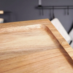 Ši universali serviravimo lenta su kojelėmis išsiskiria švariu dizainu ir funkcionalumu. Dėl tvirtos akacijos medienos ji atspari drėgmei ir deformacijoms, puikiai tinka kasdieniam naudojimui virtuvėje ir vaišėms. Paaukštinti kraštai laiko maistą vietoje ir palengvina pernešimą.