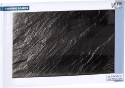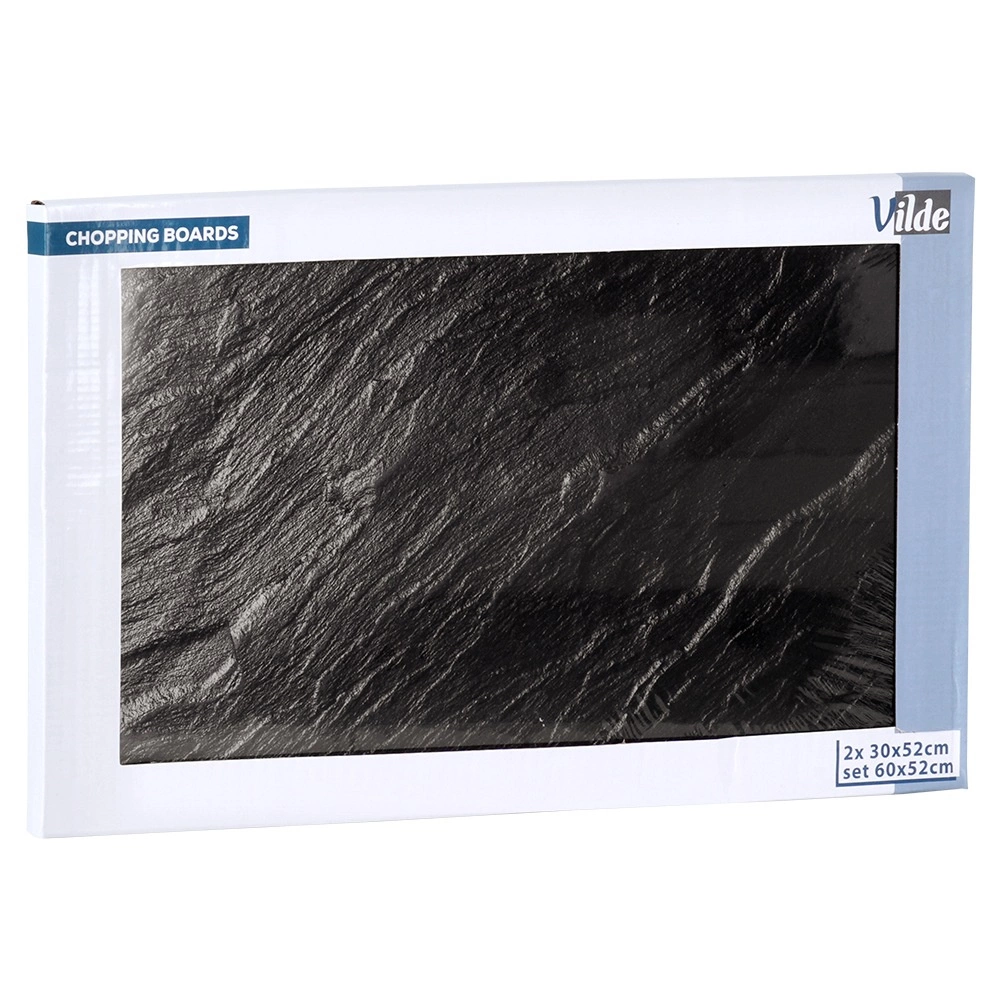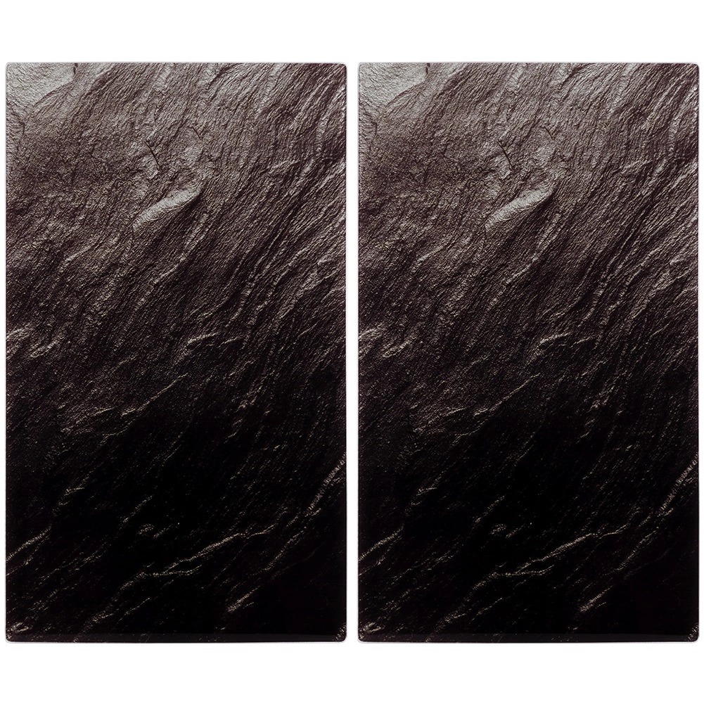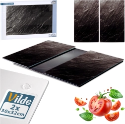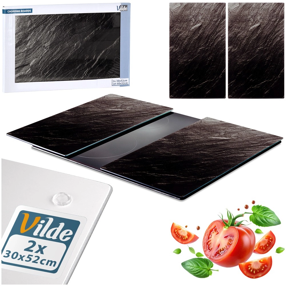 Šis dviejų dalių stiklinių lentų rinkinys derina stilių ir funkcionalumą. Kiekviena lenta yra 52 × 30 × 0,4 cm, o kartu sudaro erdvų 60 × 52 cm paviršių, kuris tinka pjaustymui, serviravimui ir kaip kaitlentės dangtis. Grūdintas stiklas su juoda akmens išvaizda suteikia virtuvei modernų akcentą ir kartu saugo paviršius nuo pažeidimų.