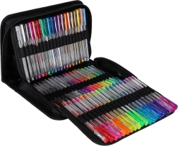 Atraskite universalų rinkinį mokyklai, biurui ir laisvalaikiui: 100 gelinių rašiklių plačioje spalvų ir efektų paletėje, be to, su 100 atsarginių šerdelių. Tvarkingas išskleidžiamas dėklas su užtrauktuku laiko kiekvieną rašiklį savo vietoje, tad visos spalvos visada po ranka ir saugiai sudėtos.
